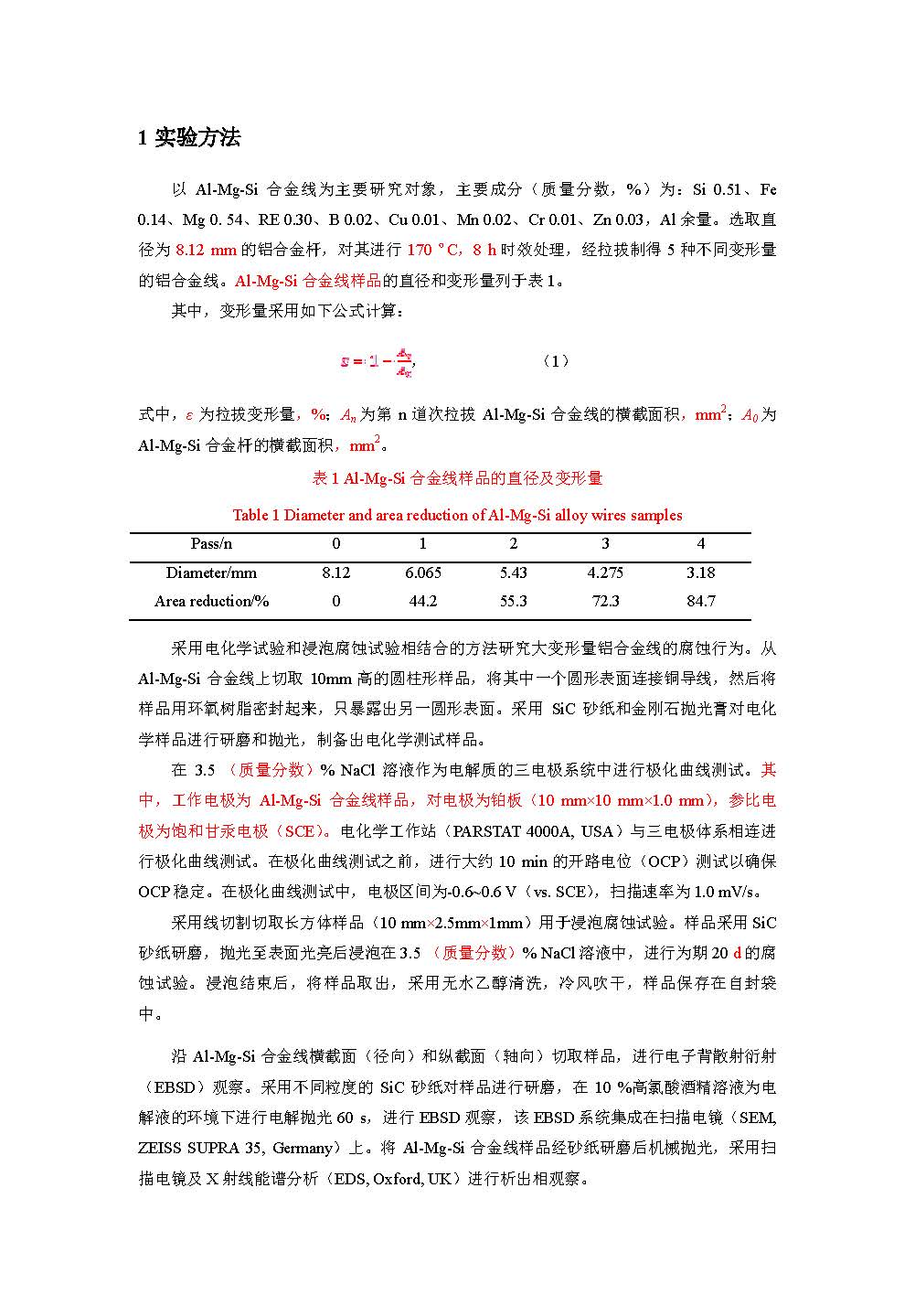 大变形量高强高导 Al-Mg-Si 合金线的腐蚀机制研究