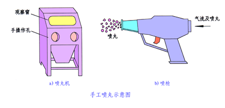喷砂与喷丸处理,工艺相似,主要差别在沙粒直径上。该工艺主要应用于提高零件机械强度以及耐磨性、抗疲劳和耐蚀性等,还可用于表面消光、去氧化皮和消除铸、锻、焊件的残余应力等。