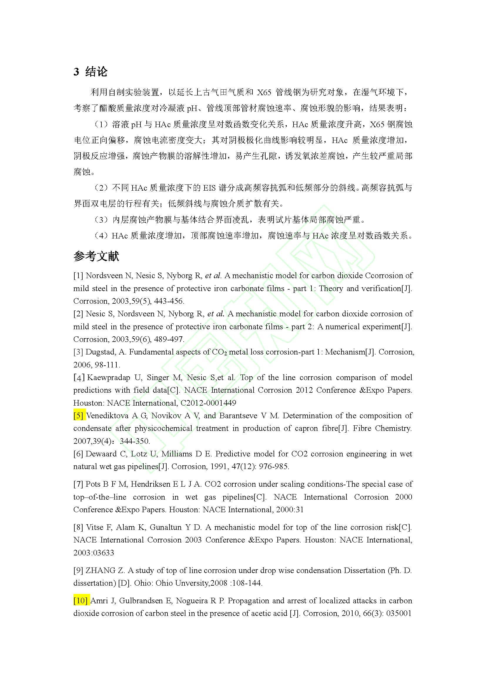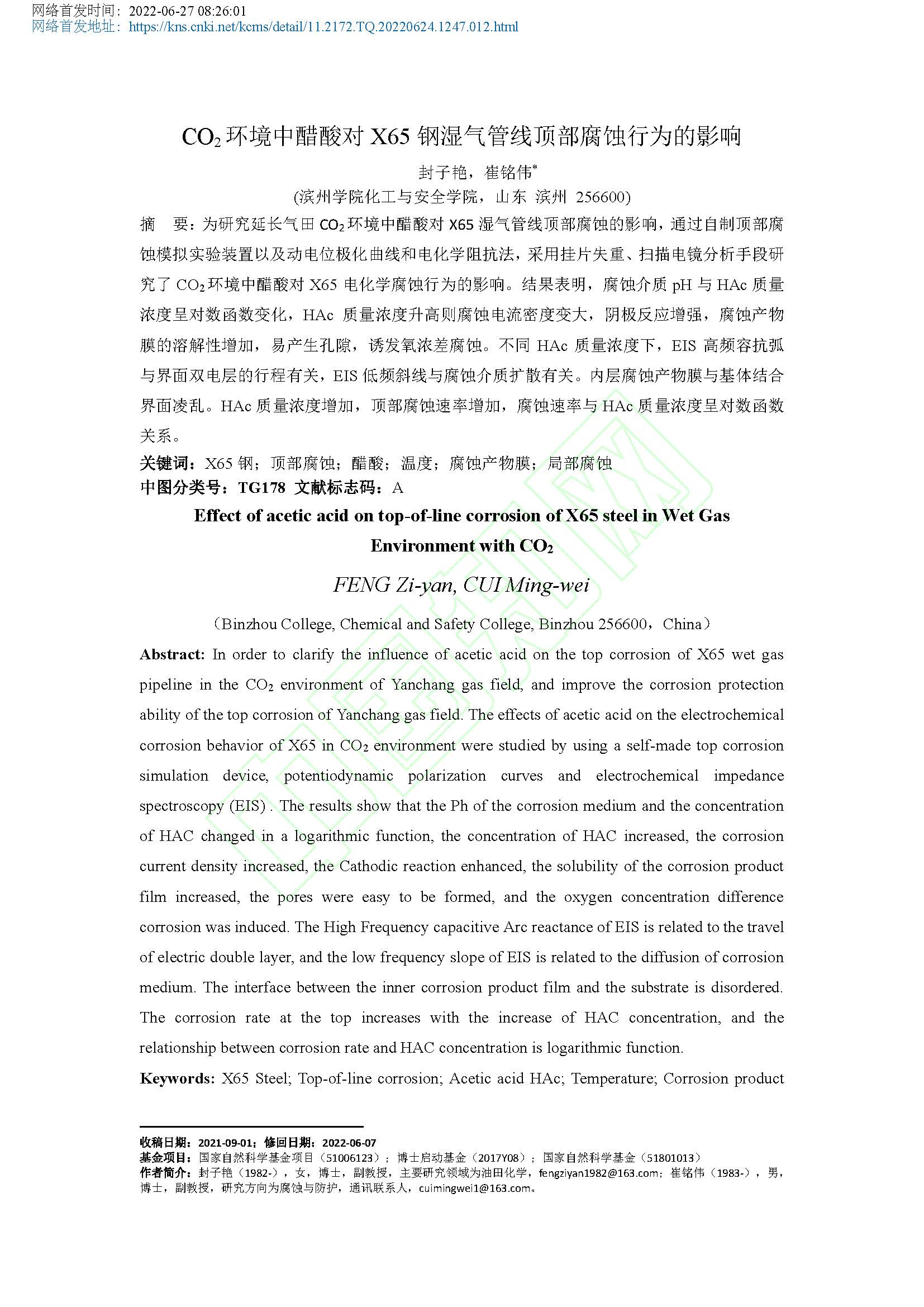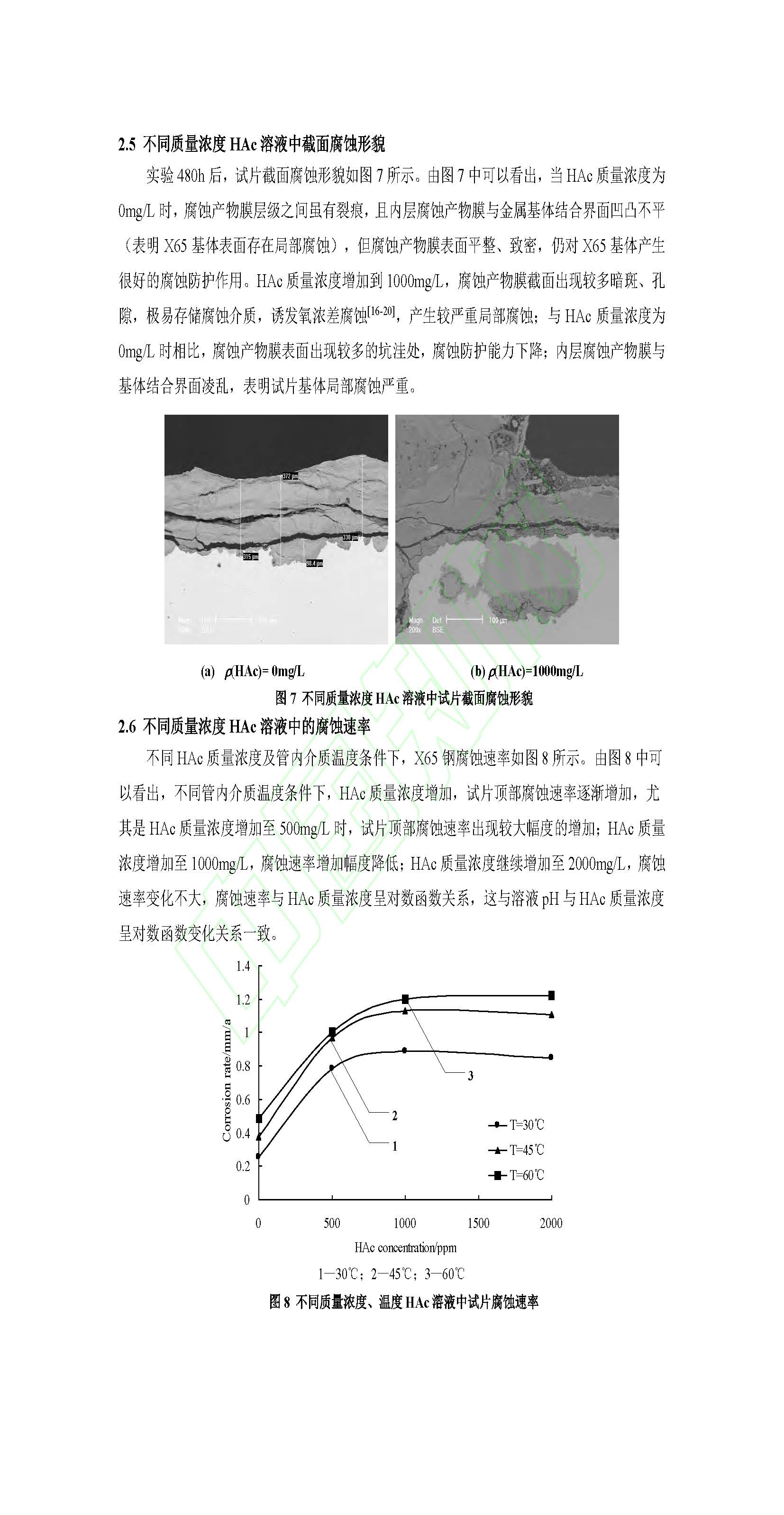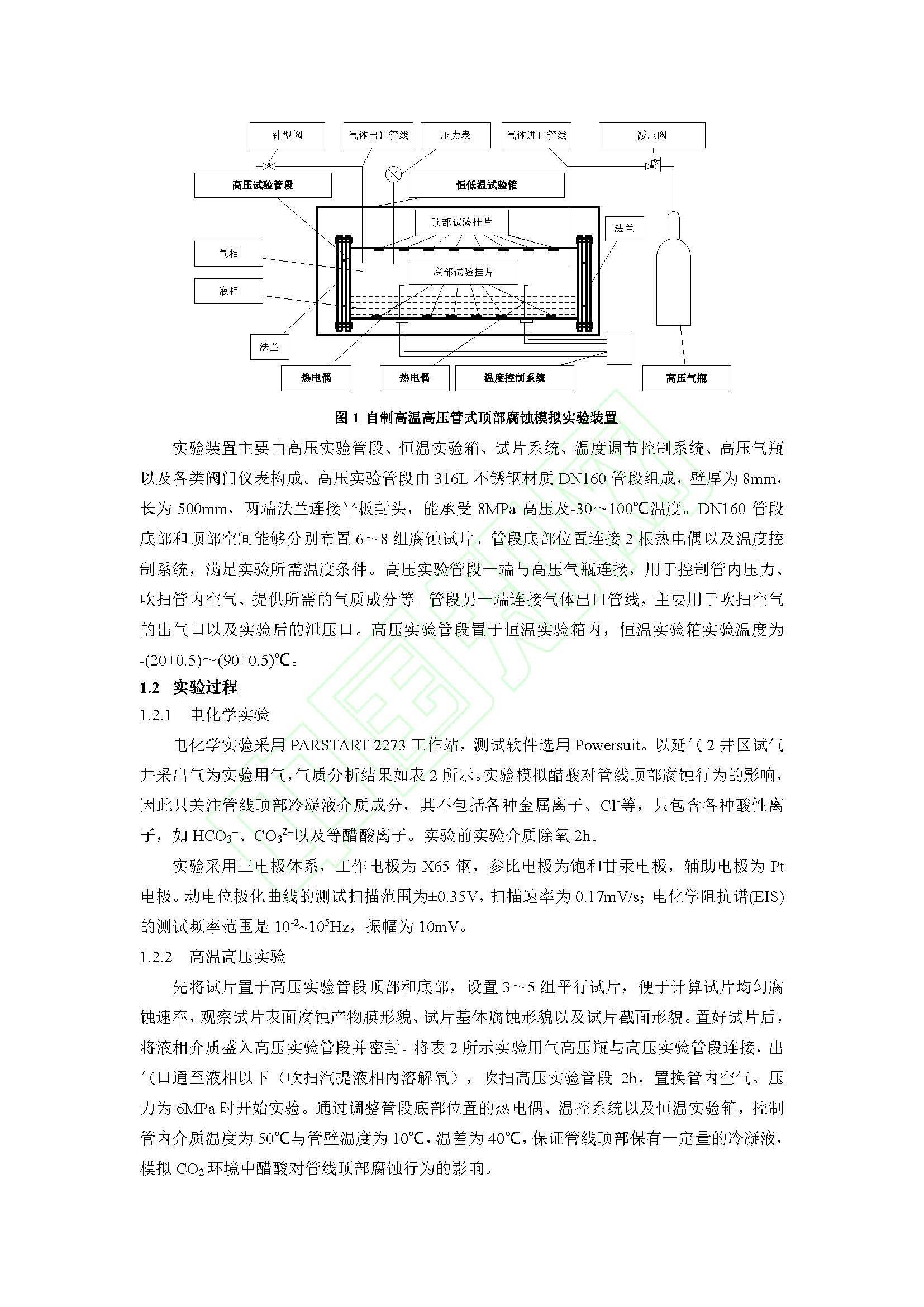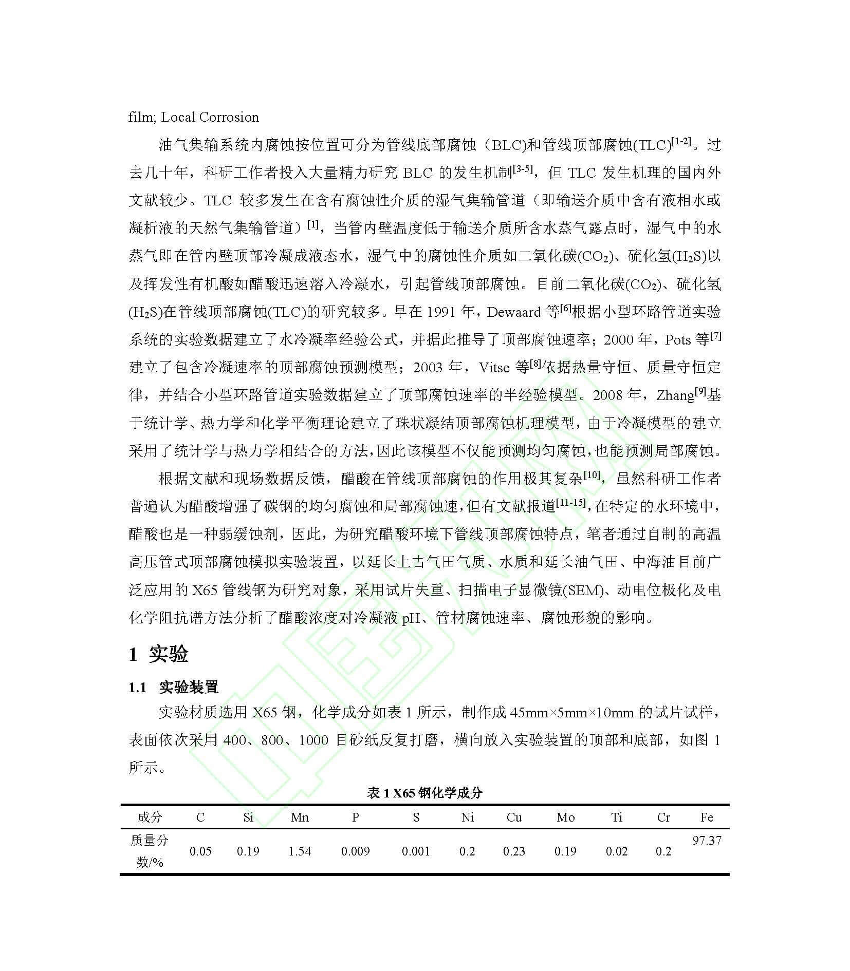 CO2环境中醋酸对X65钢湿气管线顶部腐蚀行为的影响