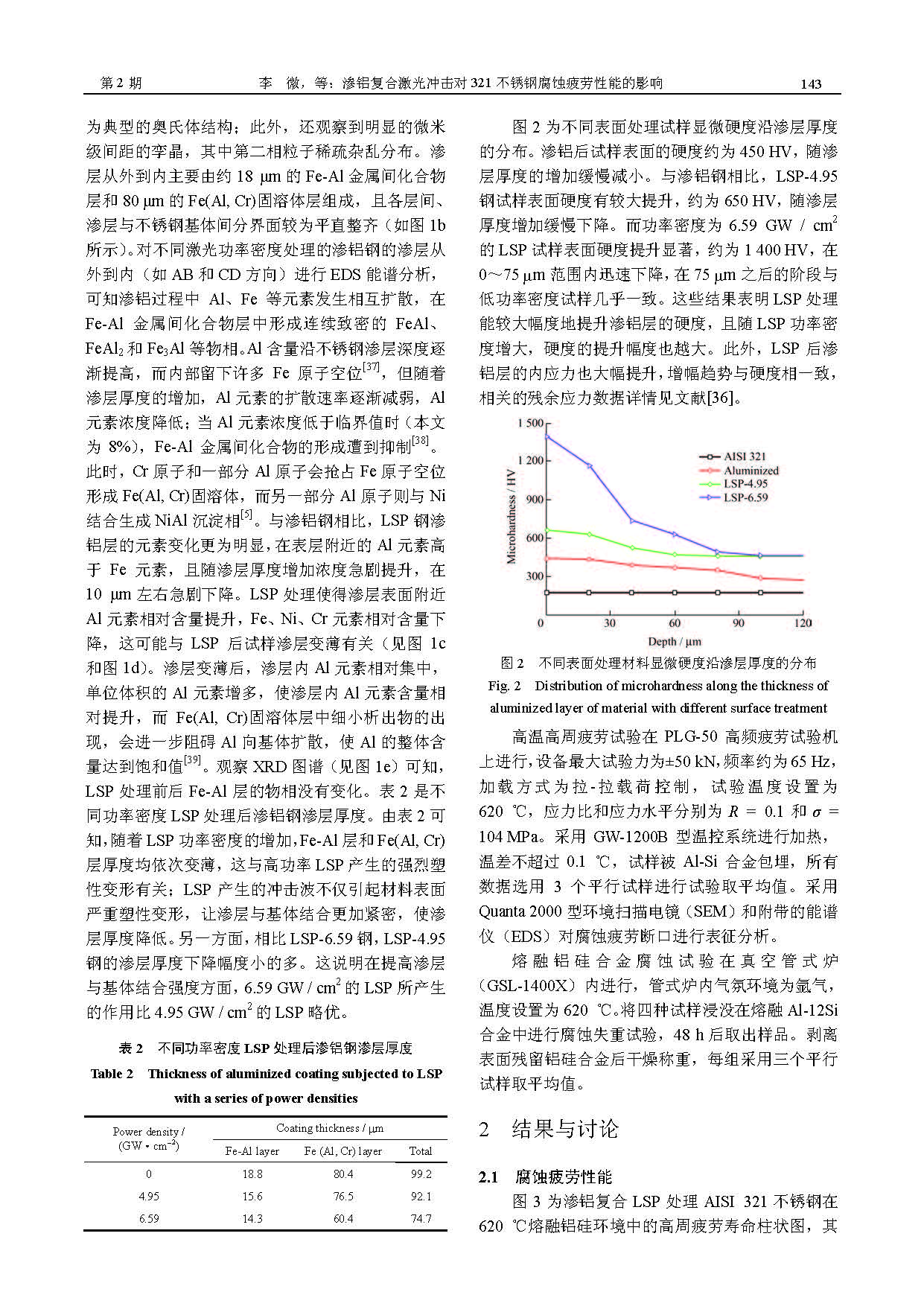 标签: AISI 321 不锈钢, 渗铝, 激光冲击, 腐蚀疲劳
