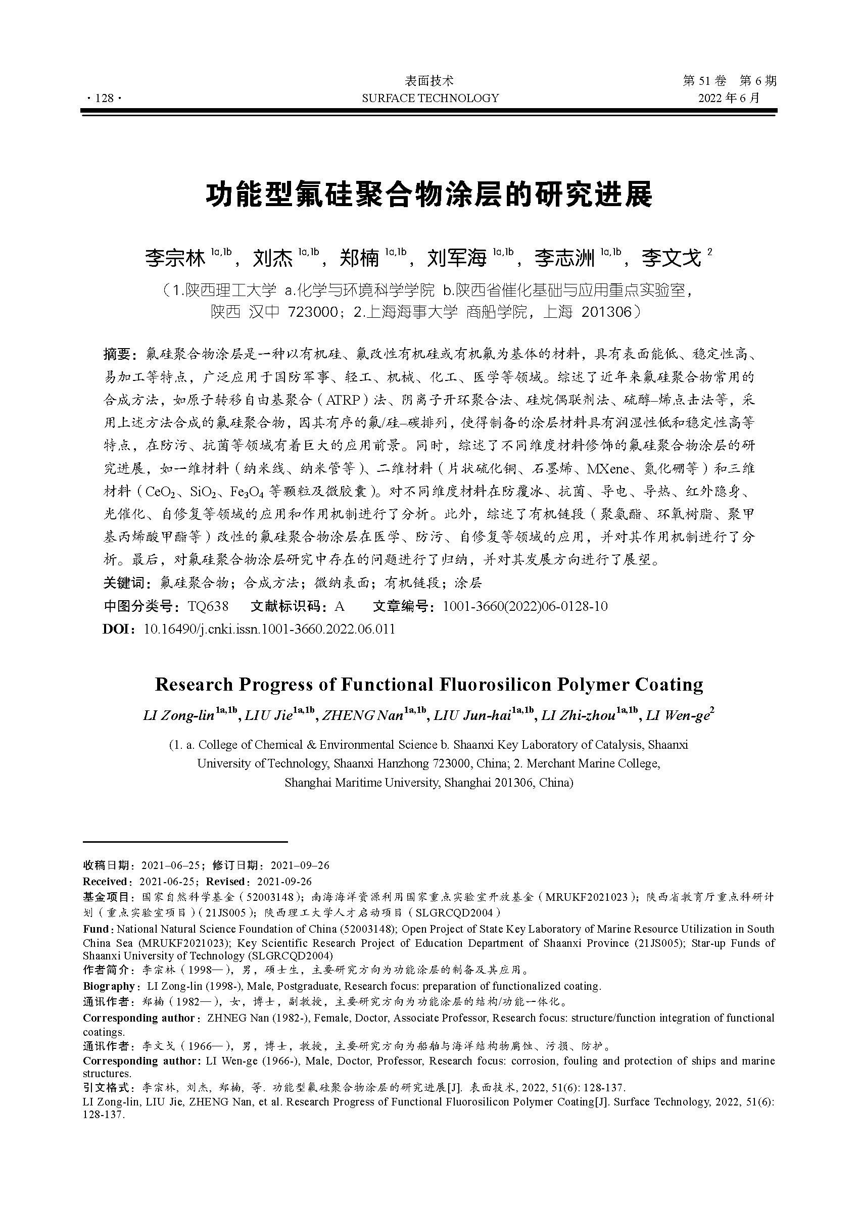 功能型氟硅聚合物涂层的研究进展