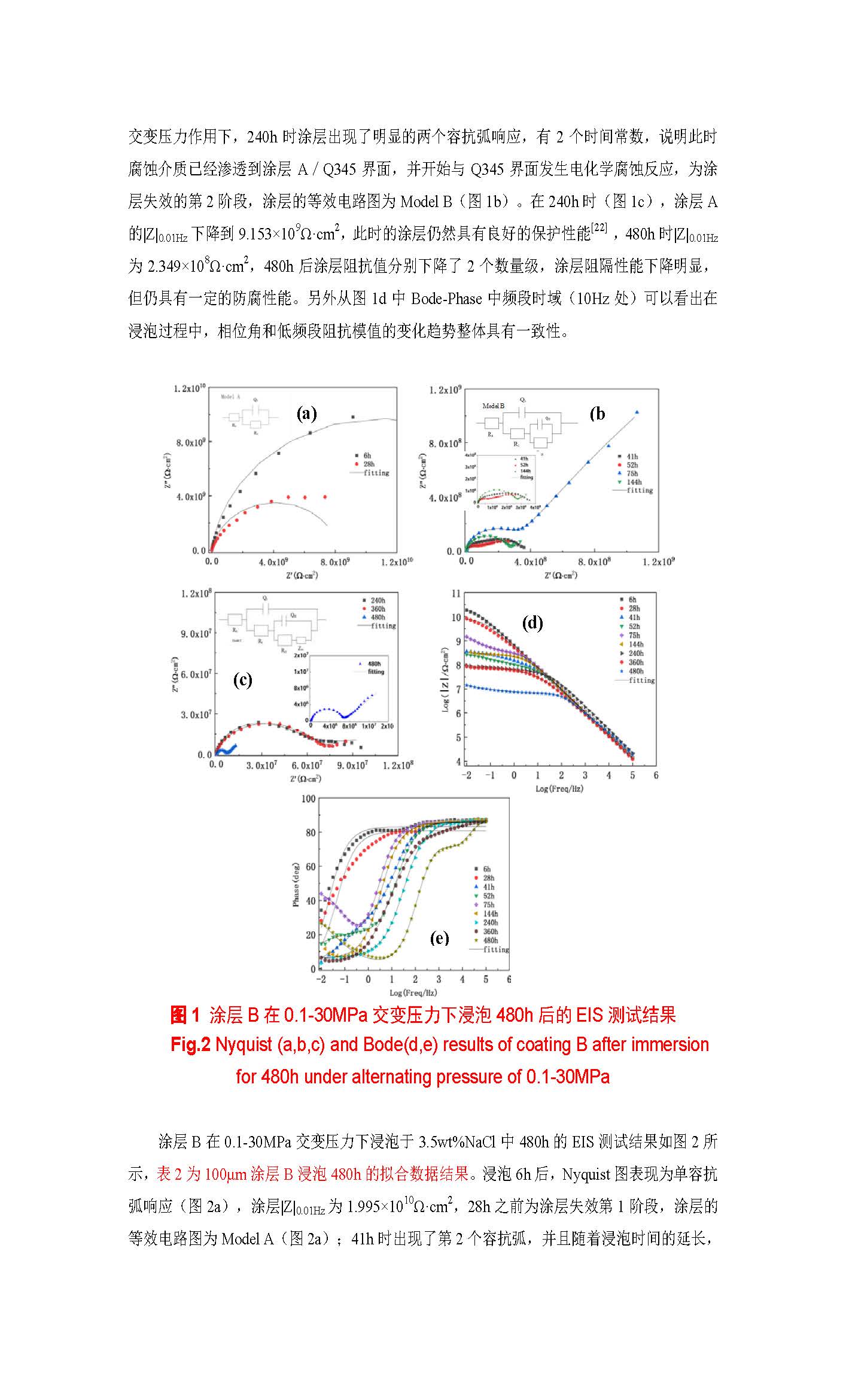 交变压力对无溶剂环氧涂层在模拟超深海环境下的电化学行为