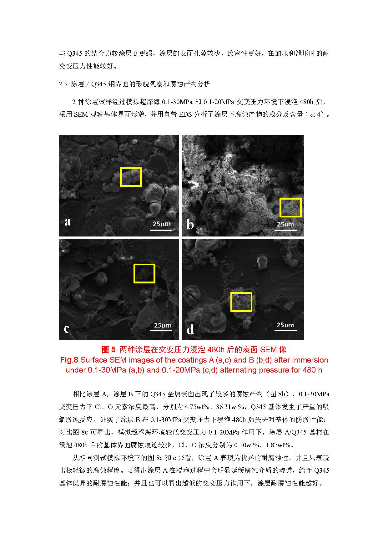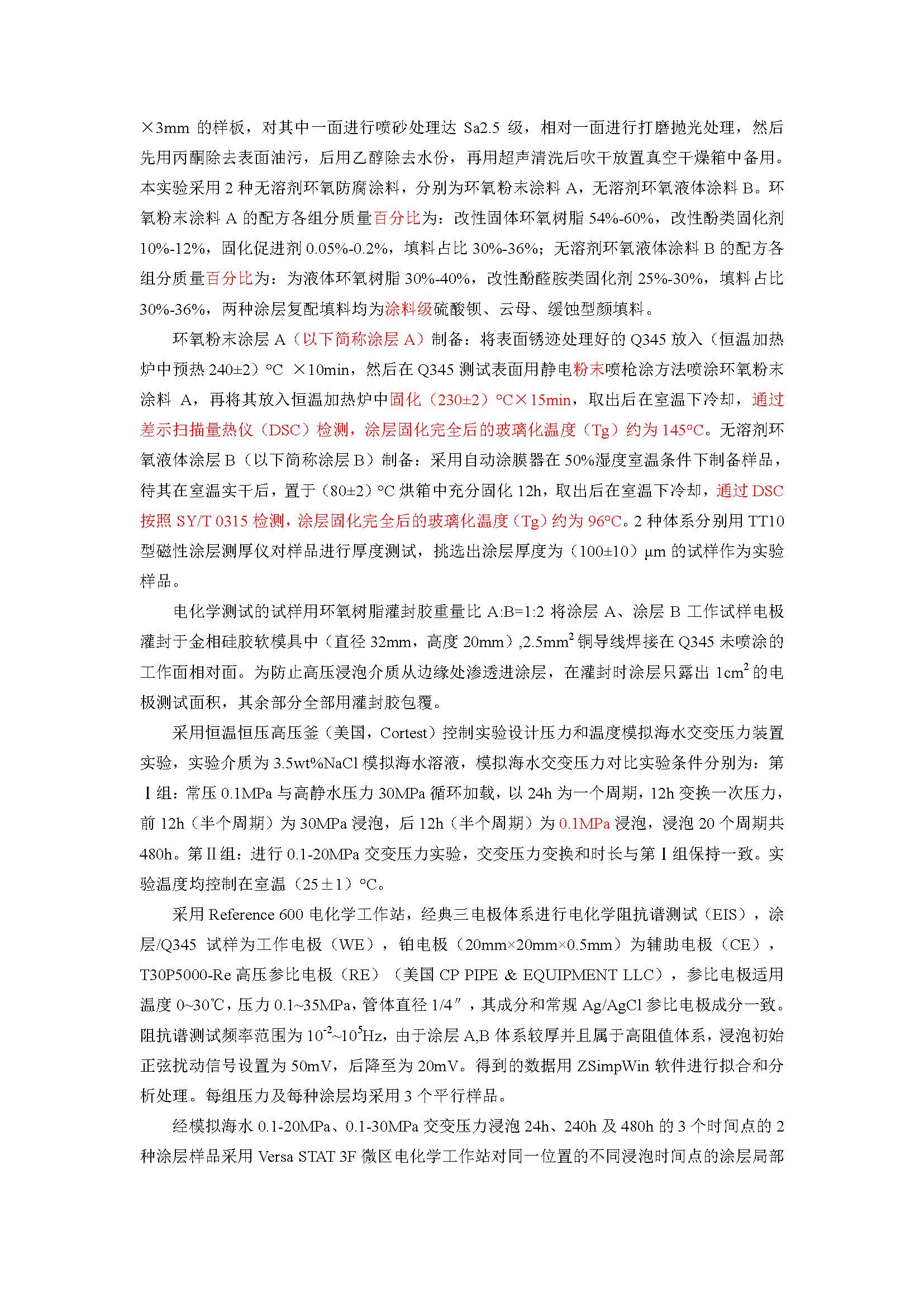 交变压力对无溶剂环氧涂层在模拟超深海环境下的电化学