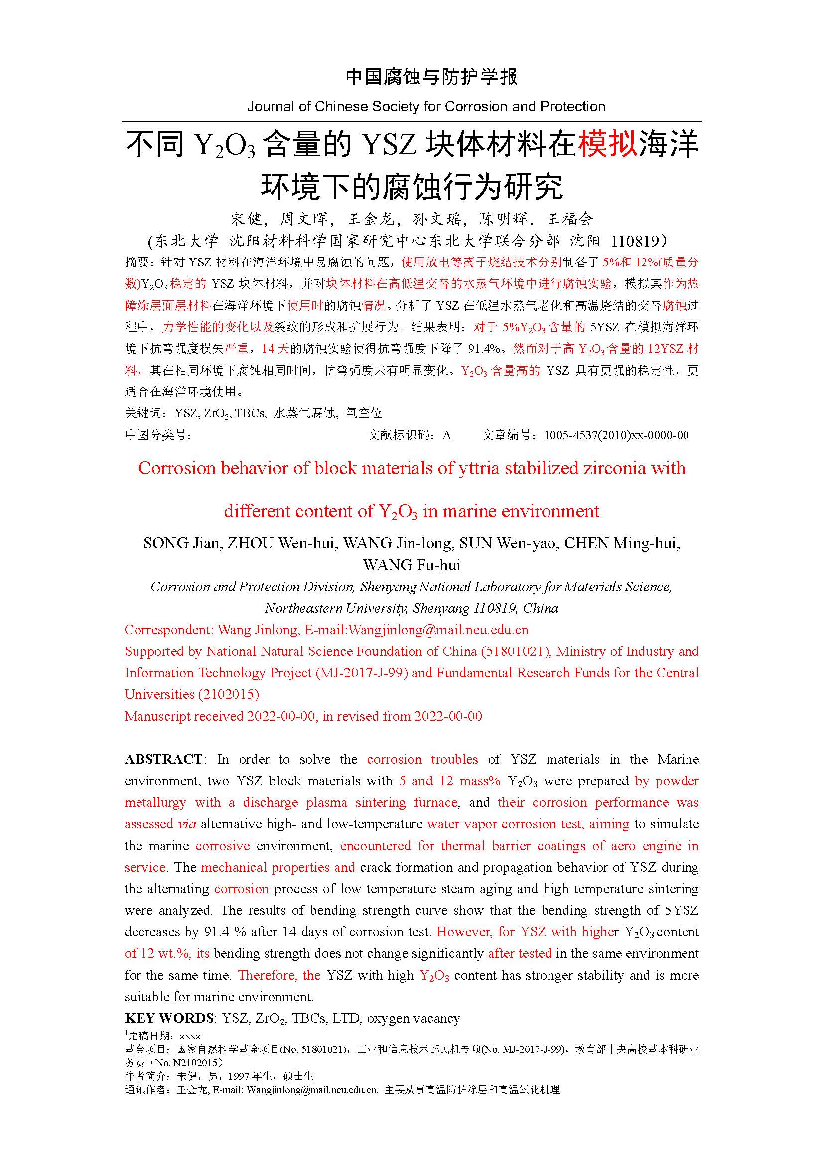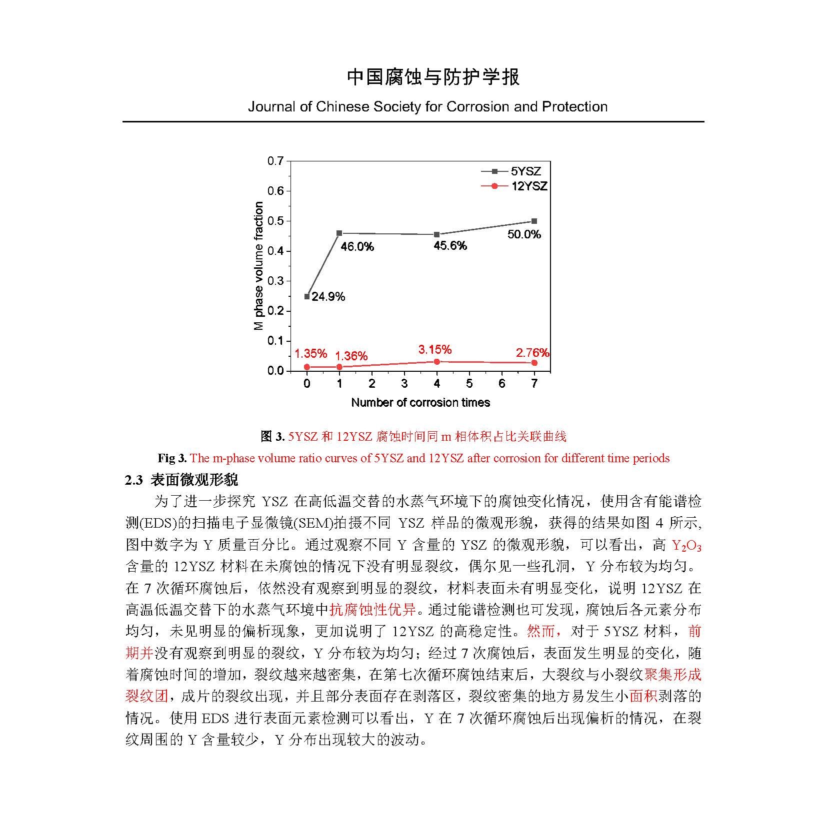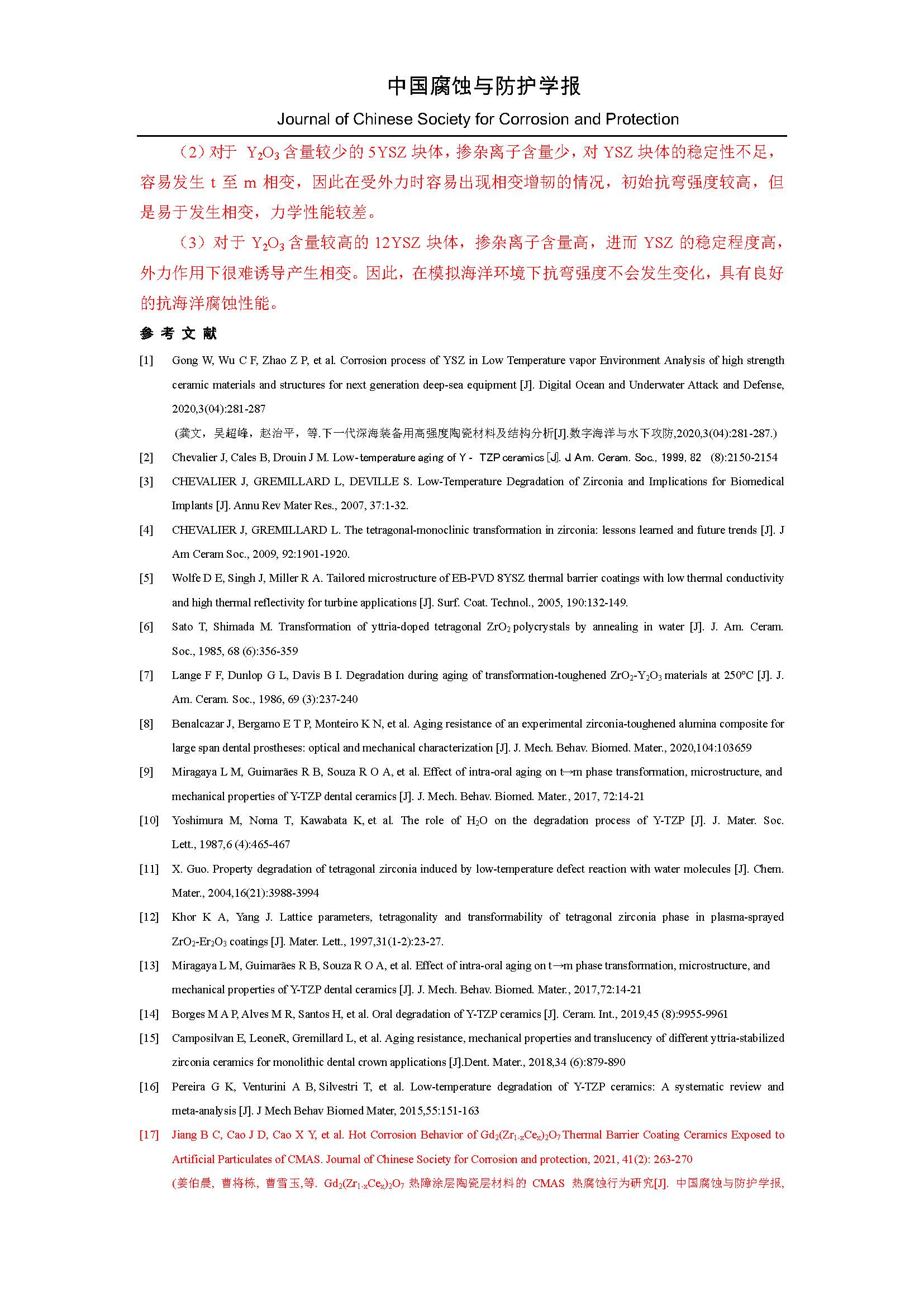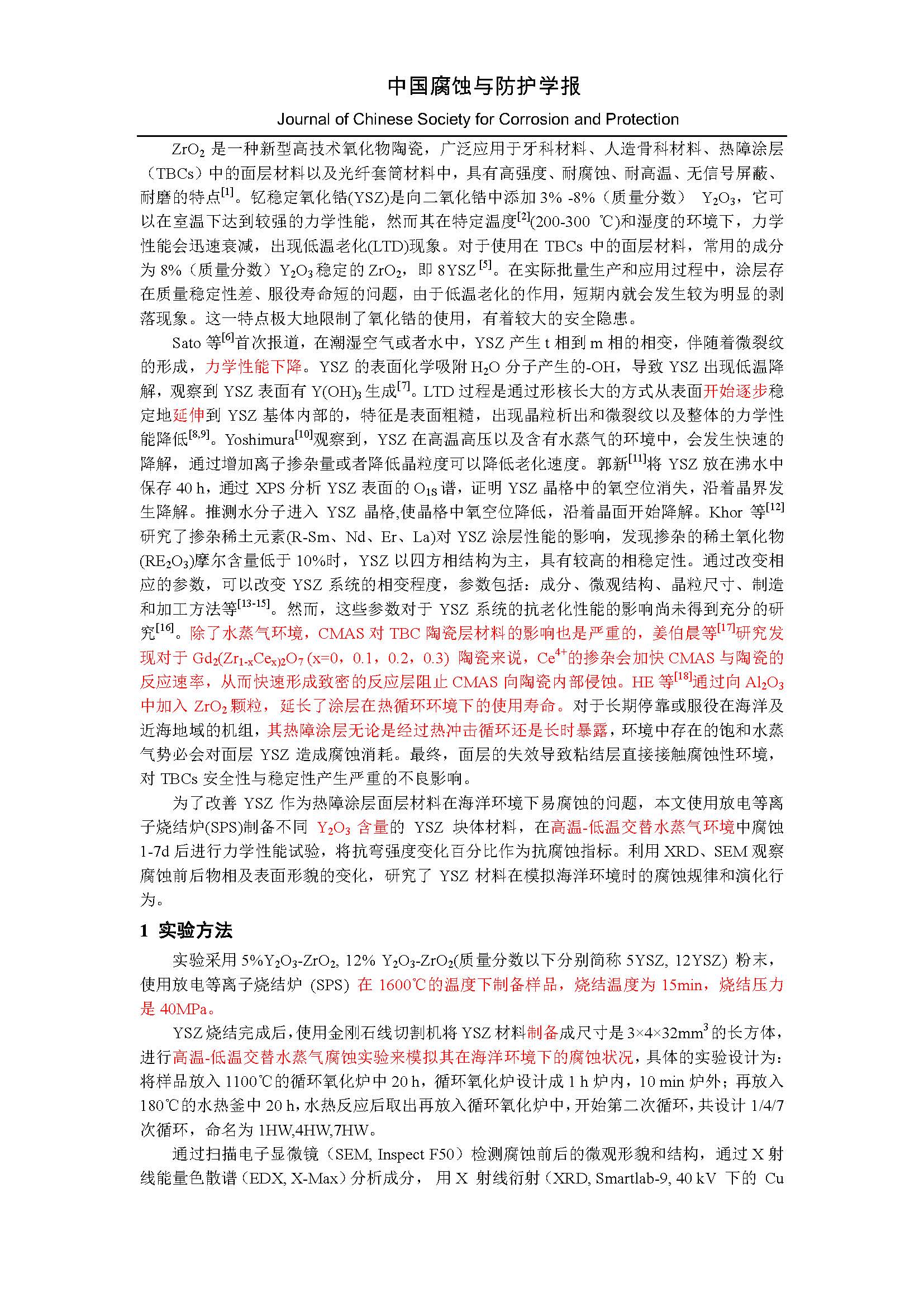 不同Y元素含量的YSZ块体材料在模拟海洋环境下的腐蚀行为研究