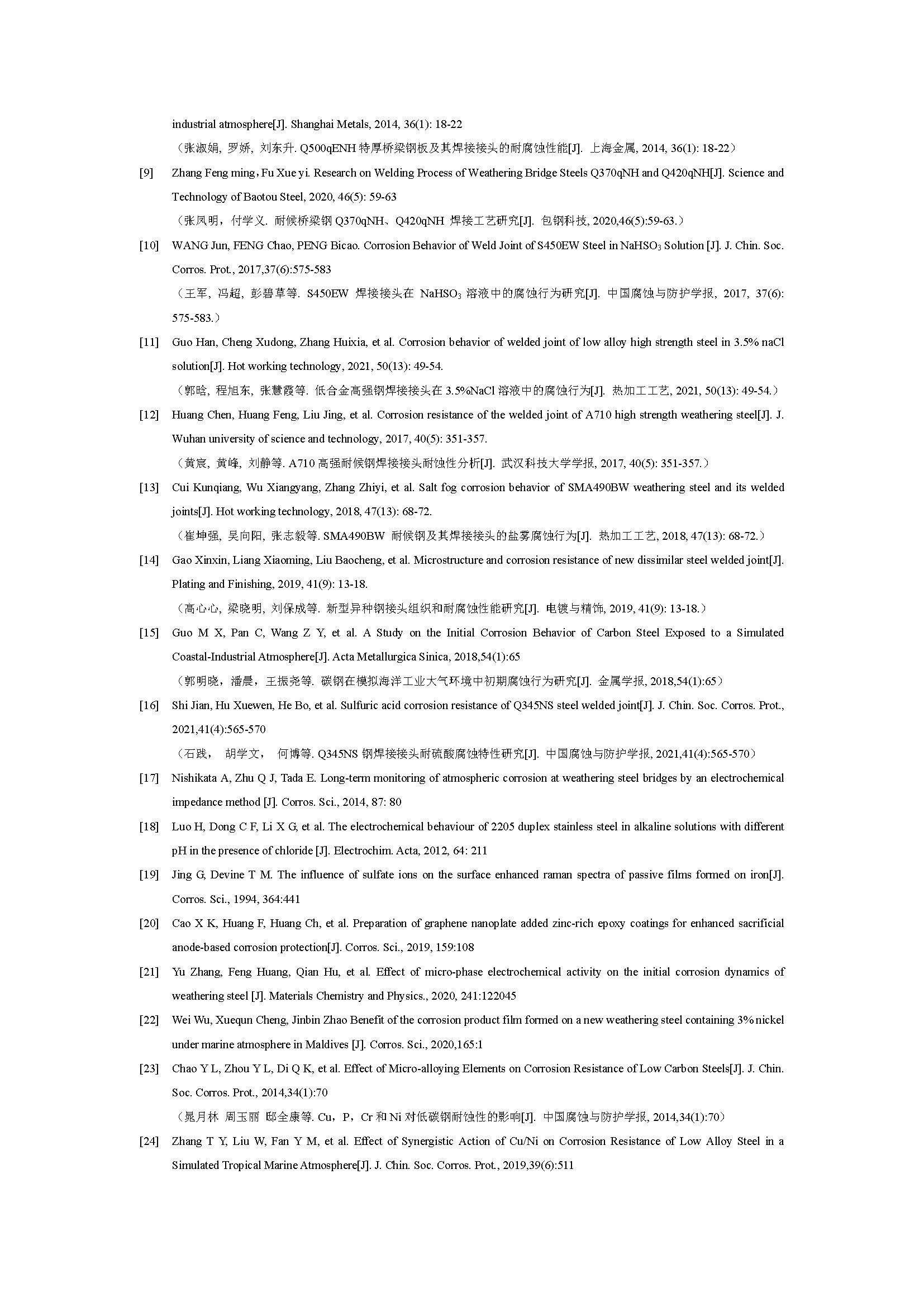 耐候桥梁钢及其焊缝耐腐蚀性评价研究