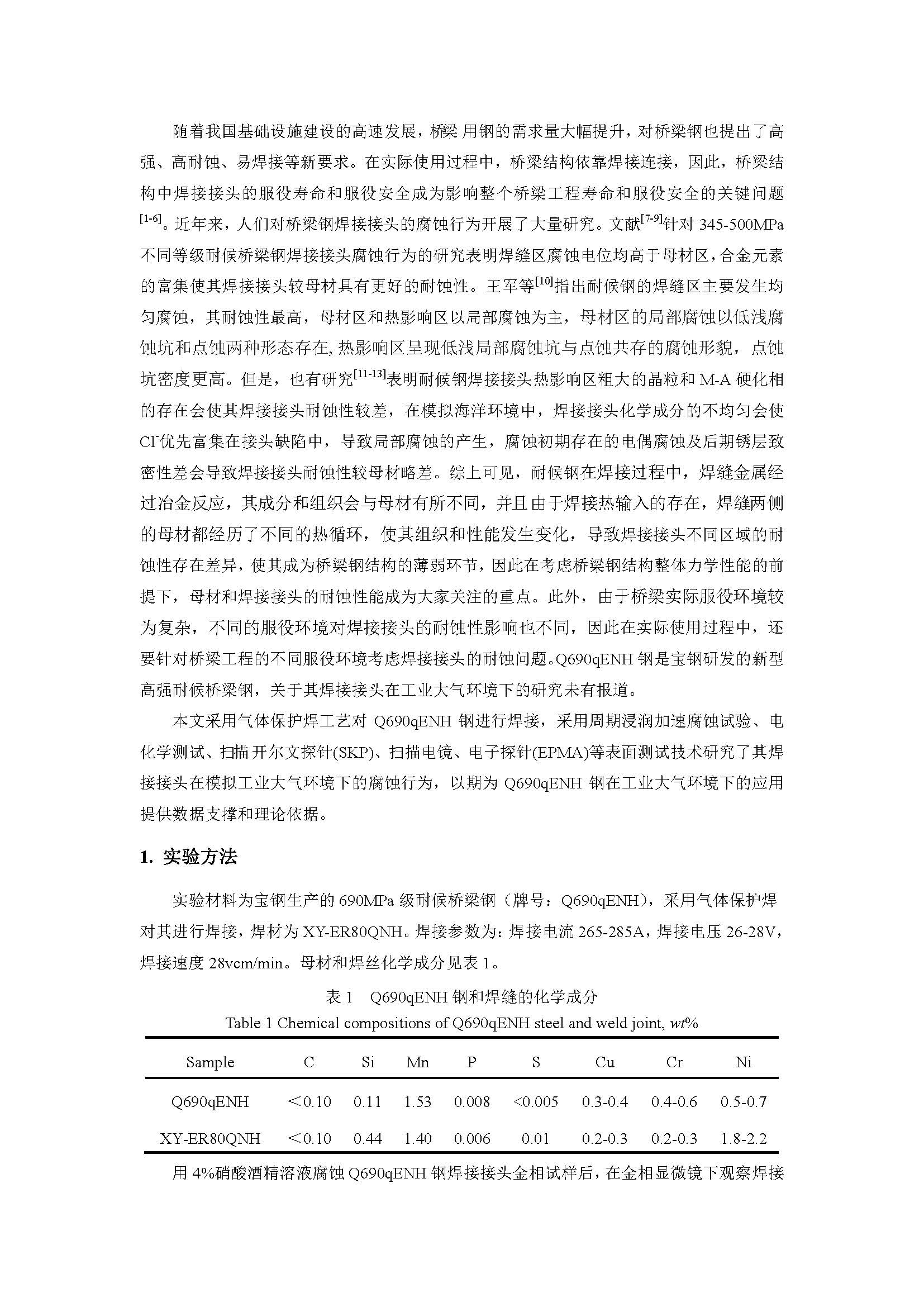 690MPa级耐候桥梁钢焊接接头在模拟工业大气环境下的耐蚀性研究