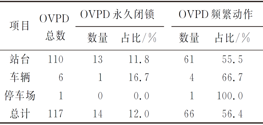 表1 广州地铁线路OVPD运行状况统计