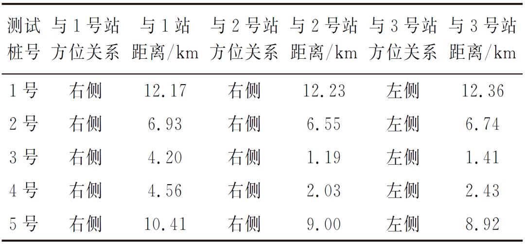 表3 管道各监测点与地铁牵引站的方位关系和距离统计