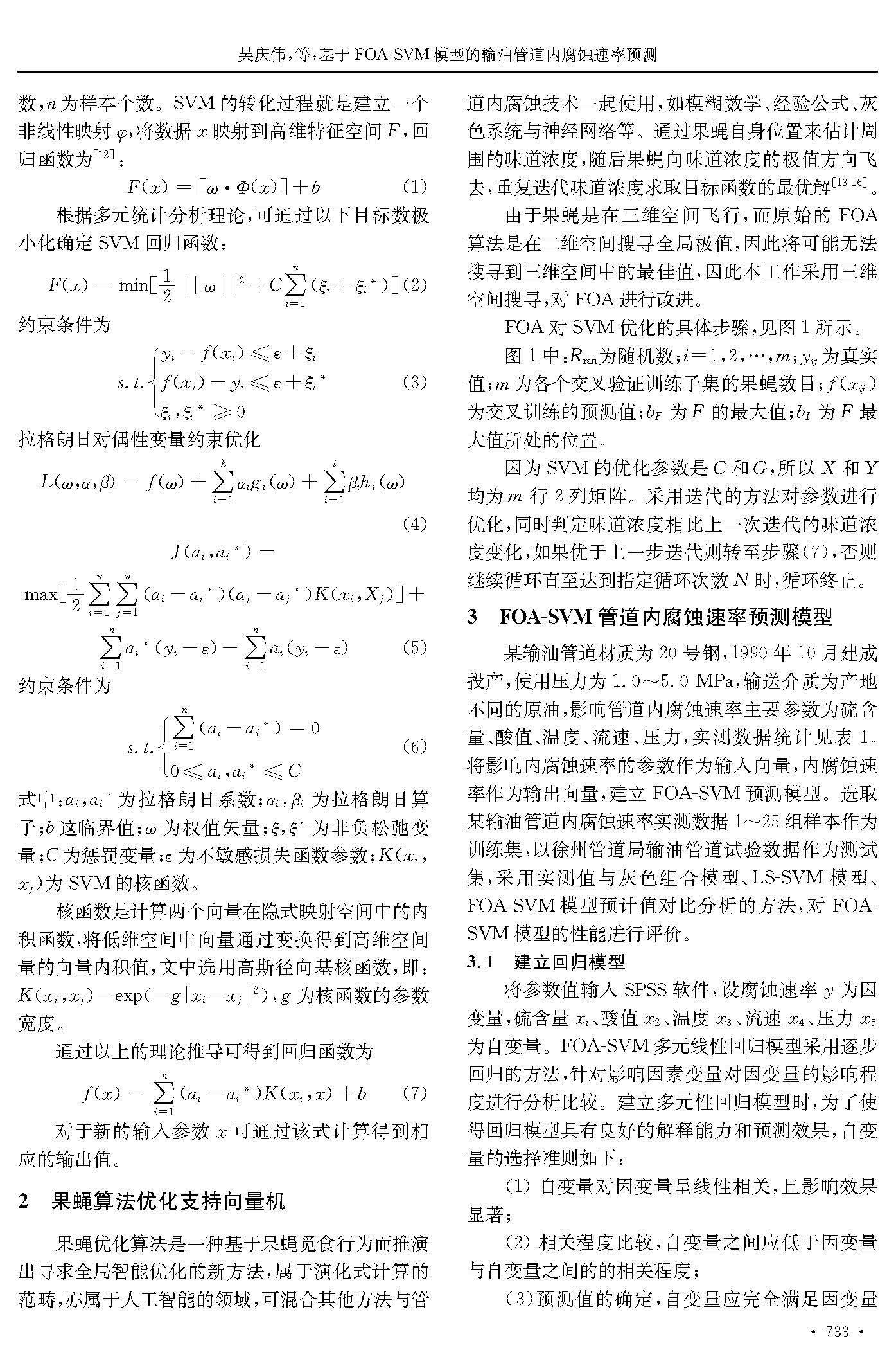 基于FOA-SVM 模型的输油管道内腐蚀速率预测