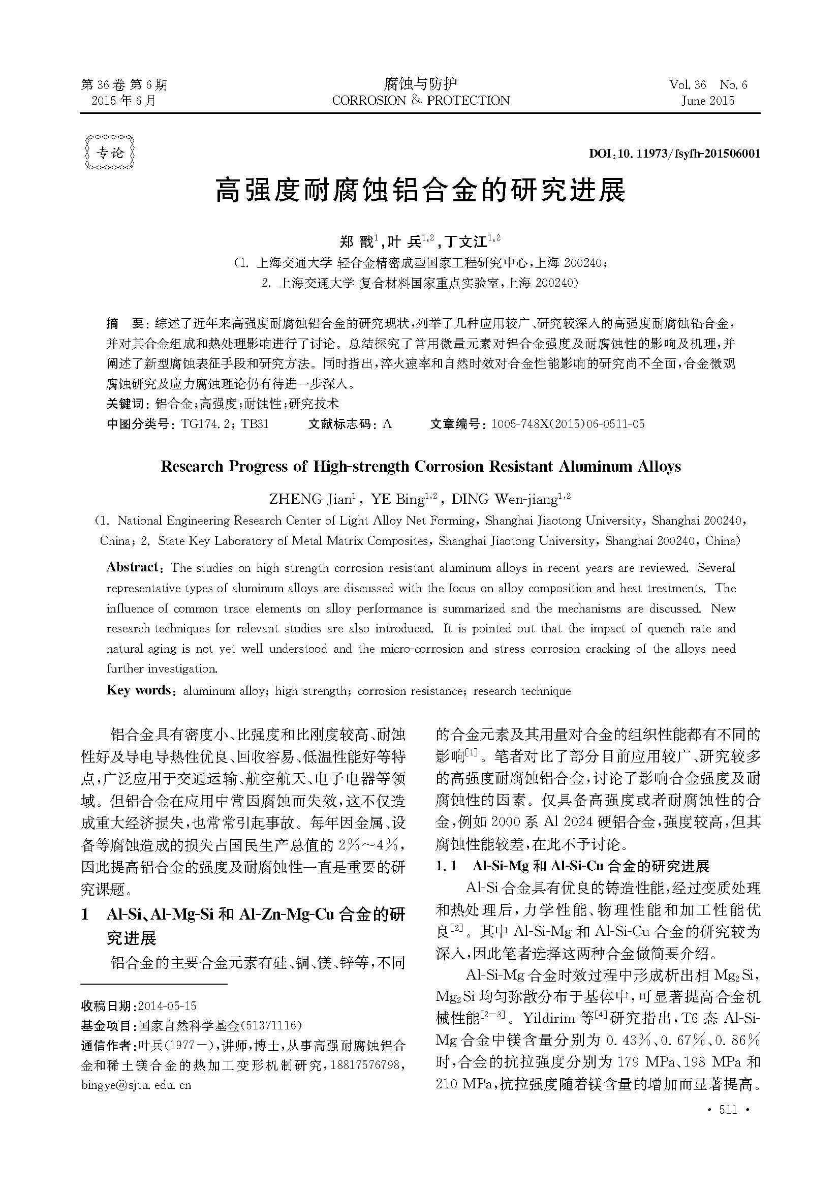 高强度耐腐蚀铝合金的研究进展
