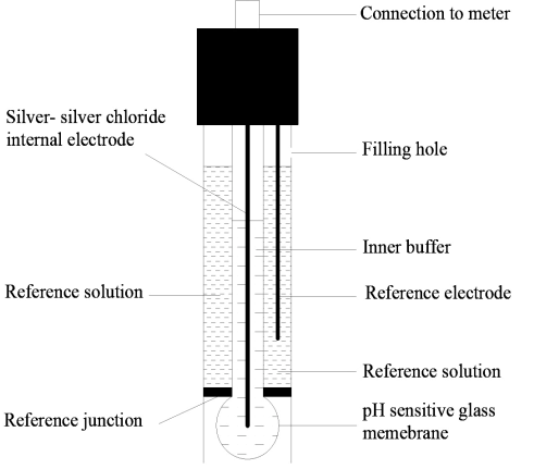 通常情况下,酸碱值与溶液的腐蚀性息息相关,因此对于石油石化行业中pH分析显得尤为重要。pH电极就是一种能将溶液中氢离子活度转换为电位信号的传感器。传统玻璃电极结构如图3所示,主要由以下几个部分组成:(1)敏感玻璃薄膜,能将待测溶液中的离子浓度转变为电位信号;(2)内参比体系,可以传导电位信号,由内部测量电极和内部缓冲溶液构成;(3)导线,将内导体系传导的电位信号馈送到仪器;(4)外参比体系,测量电极电位;(5)壳体,一般采用高绝缘、化学稳定性好的材料制成。当pH电极浸入待测溶液中时,在pH敏感玻璃薄膜的两侧因H+浓度不同将形成电位差,由测量电极导出。经过计算和温度补偿即可得到待测溶液的pH。为了应对更为复杂的工业环境,针对不同工艺条件固态玻璃电极、非玻璃型pH电极被开发出来,极大地丰富了探针应用范围。