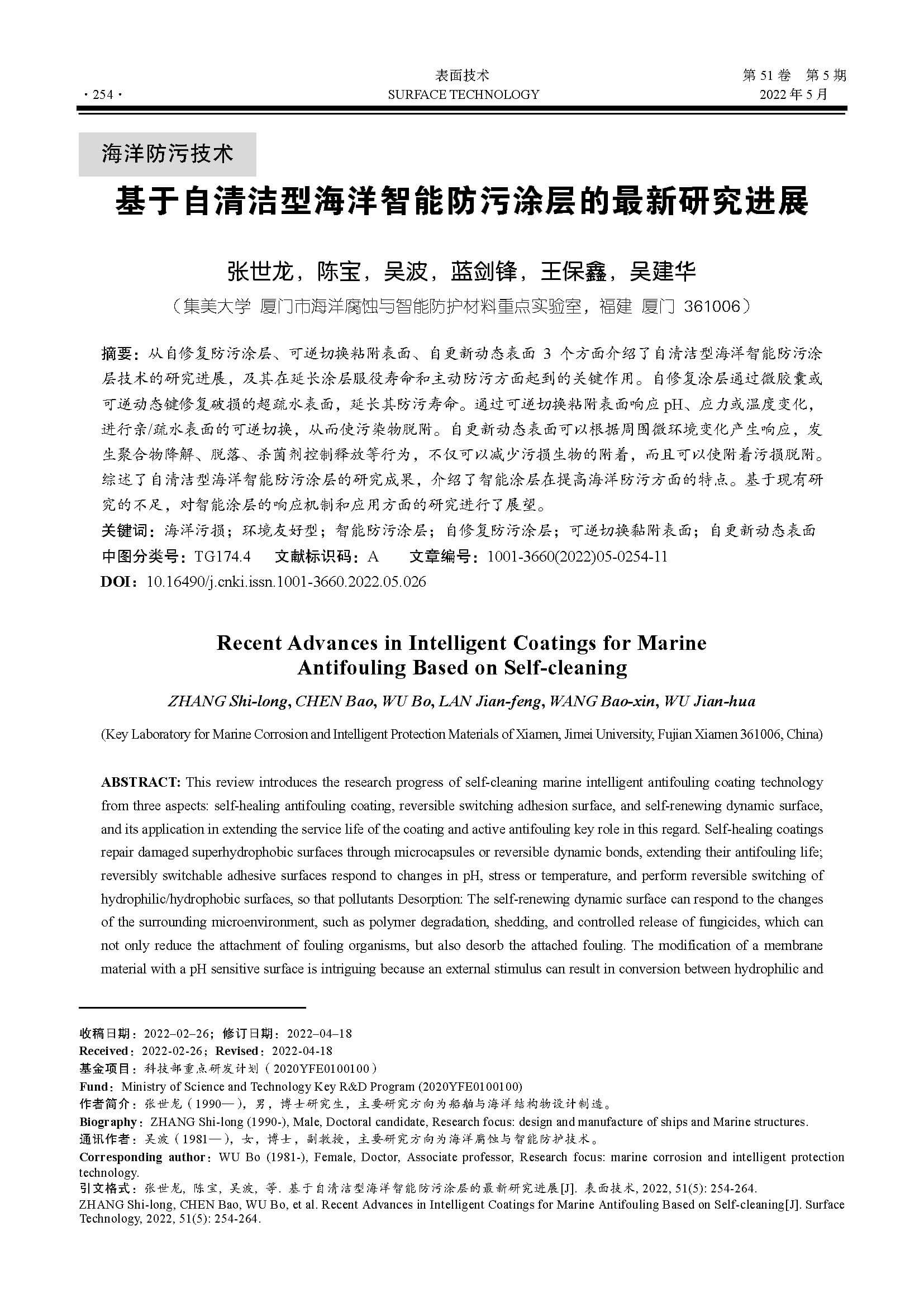 基于自清洁型海洋智能防污涂层的最新研究进展