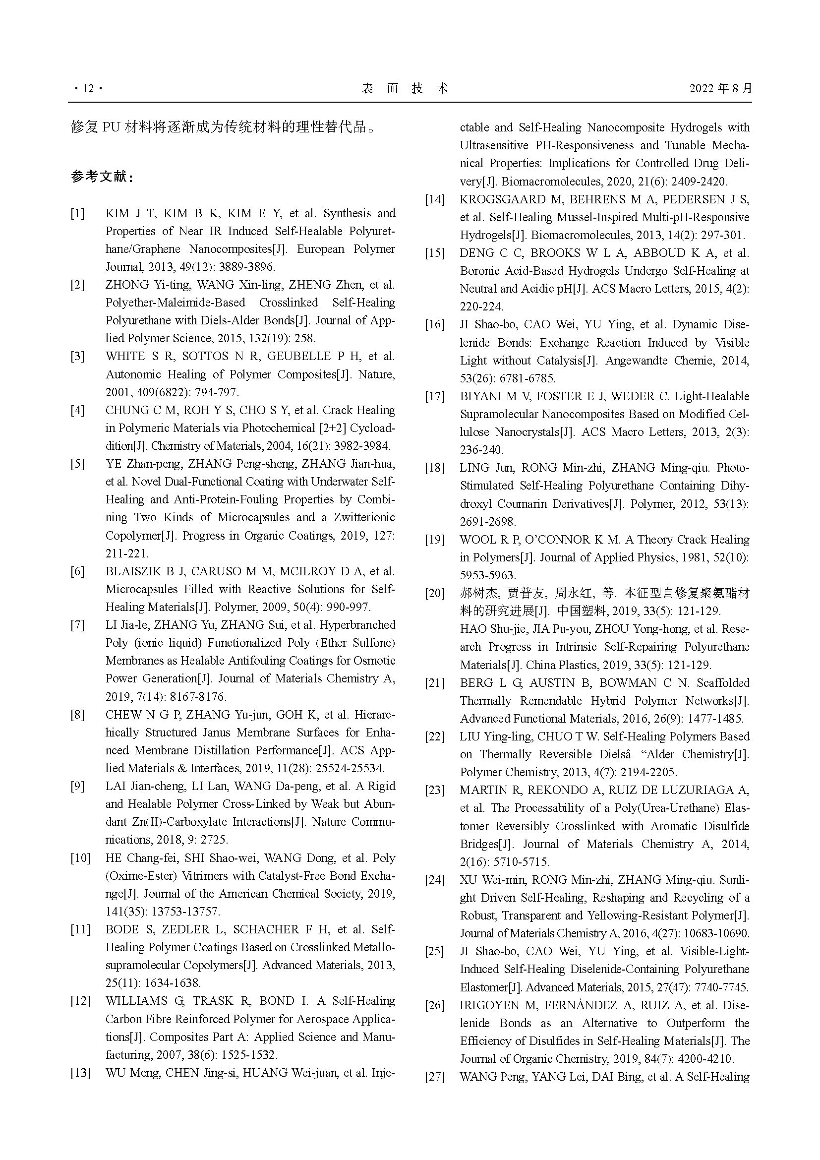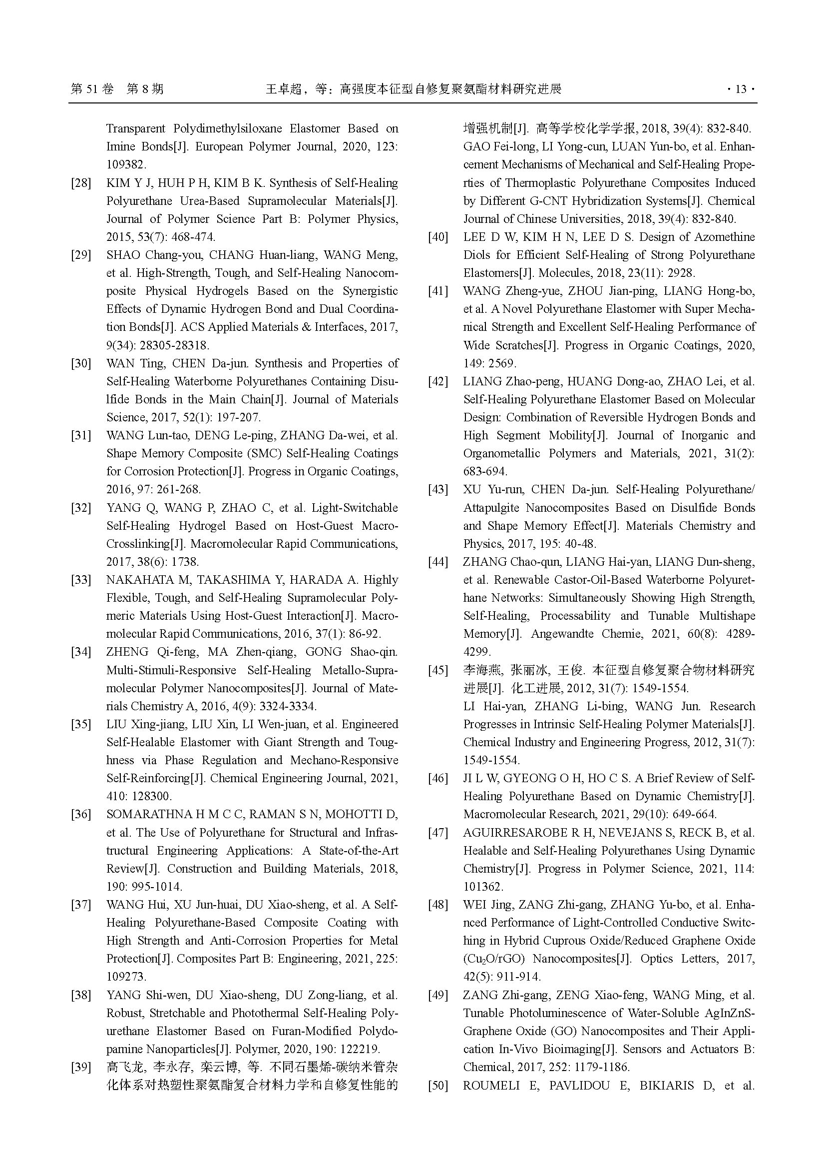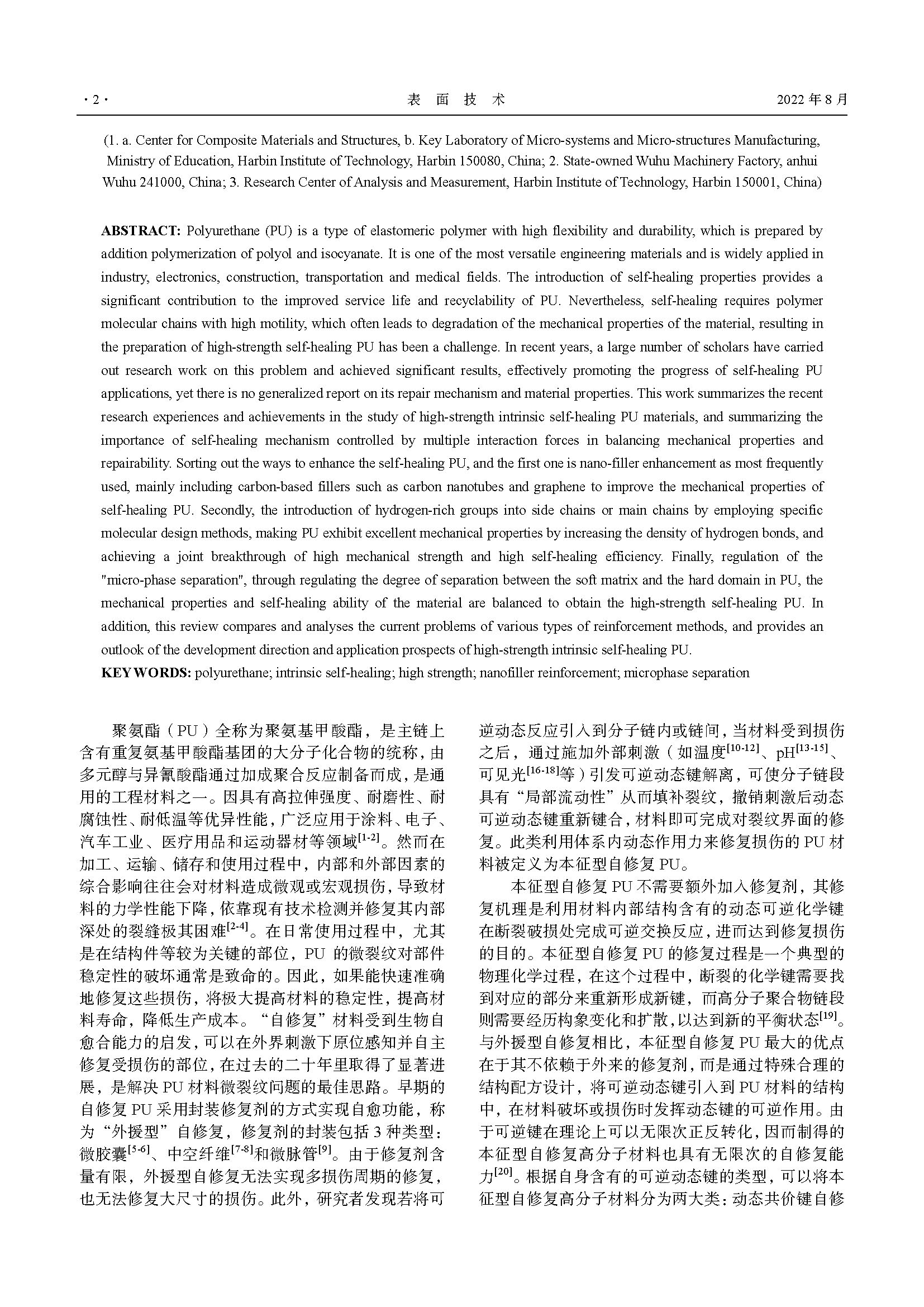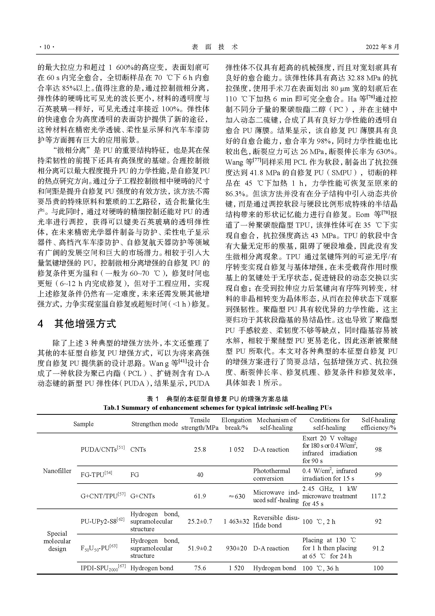 高强度本征型自修复聚氨酯材料研究进展