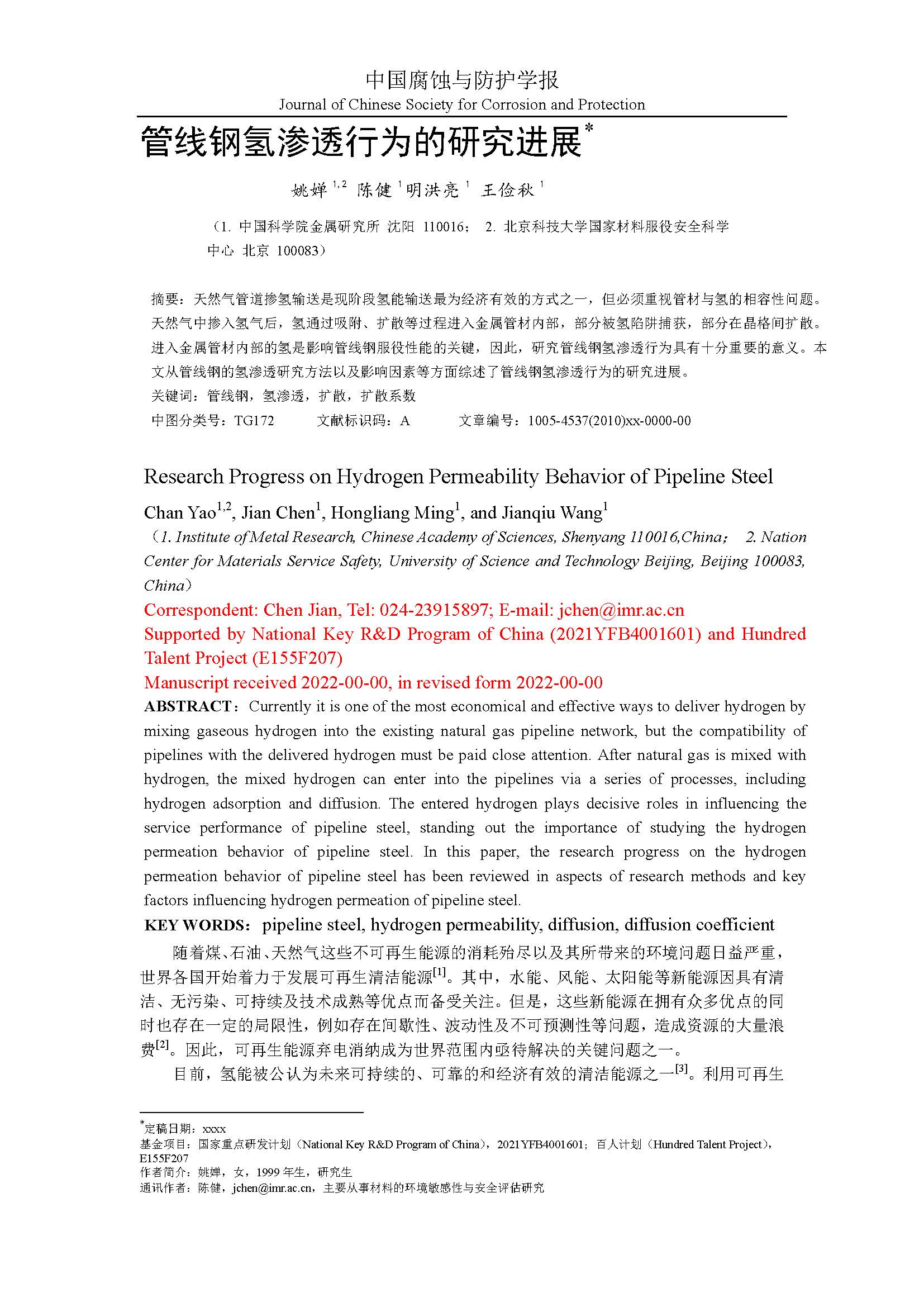 来源:中国腐蚀与防护学报