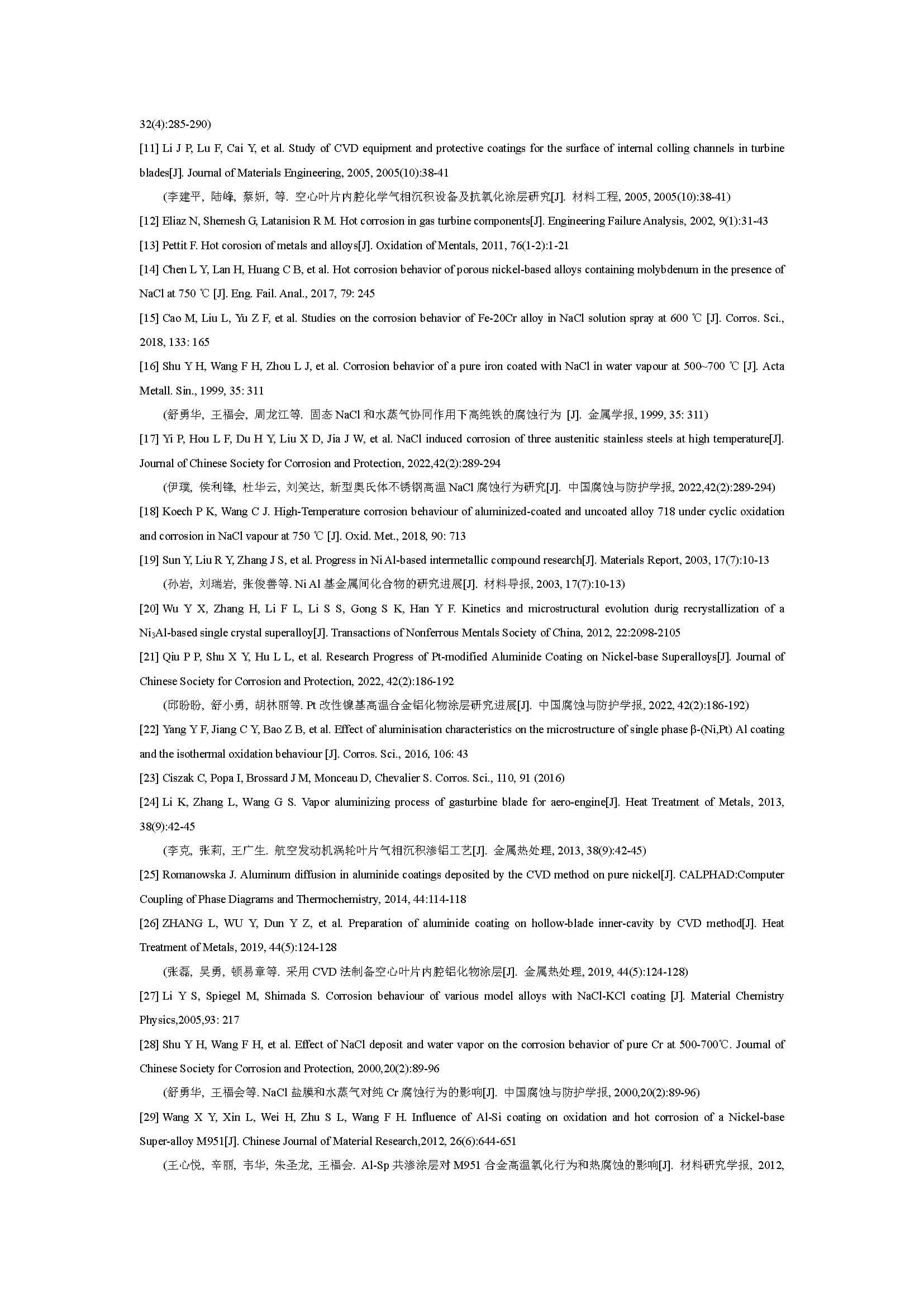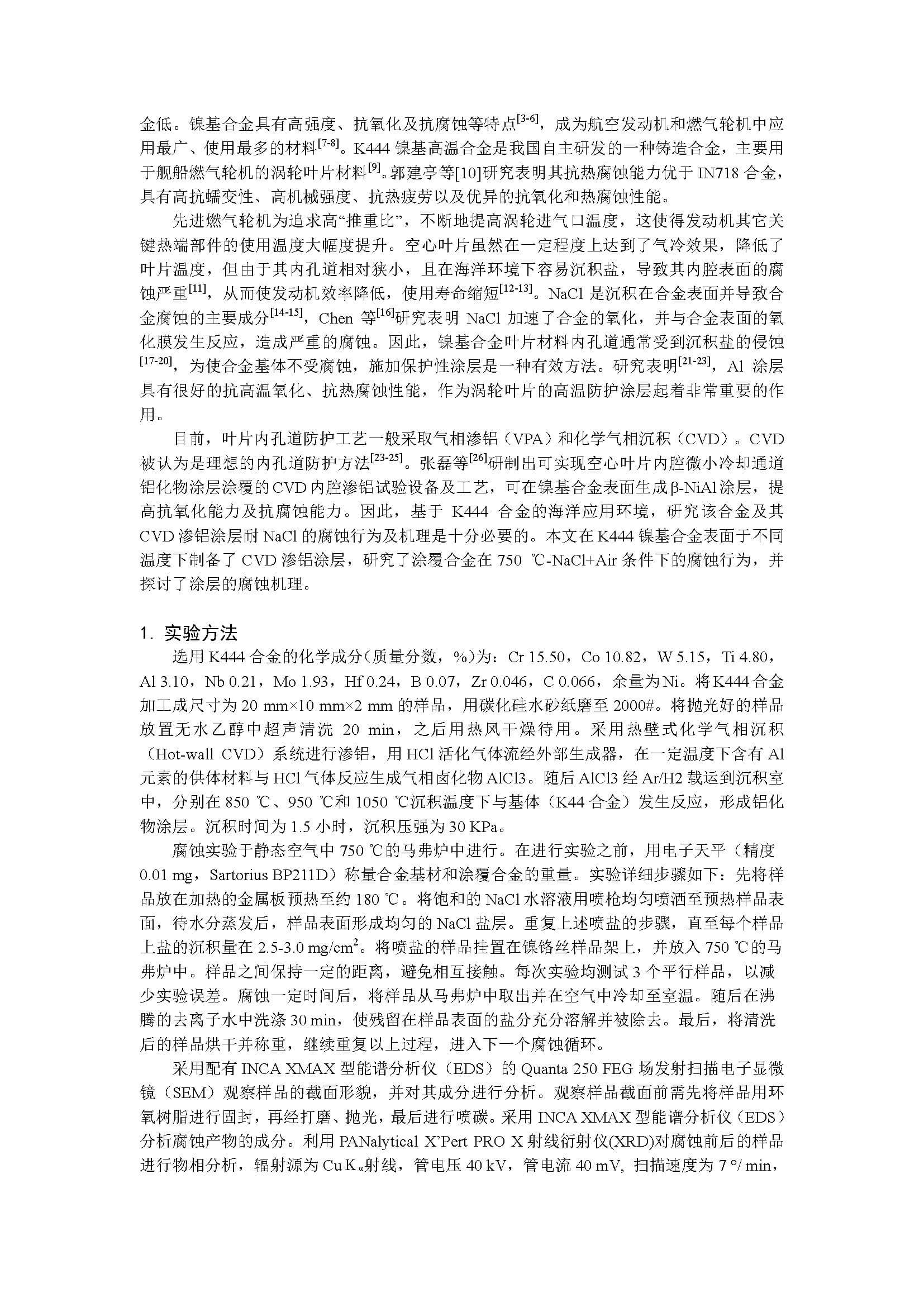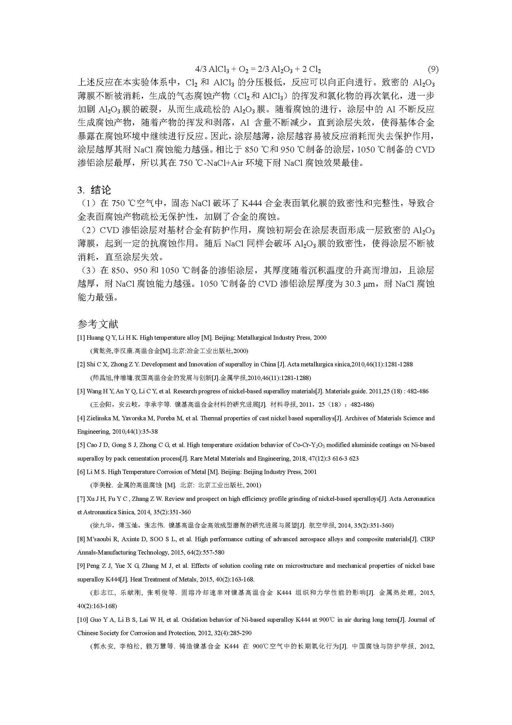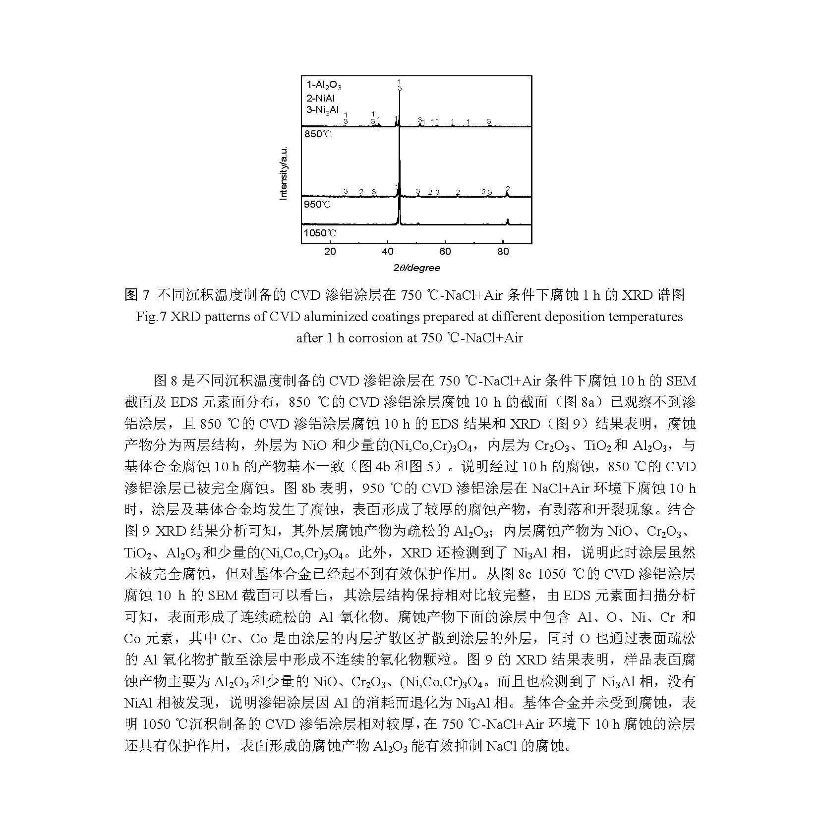 K444合金表面CVD渗铝涂层在750℃空气中耐NaCl腐蚀行为