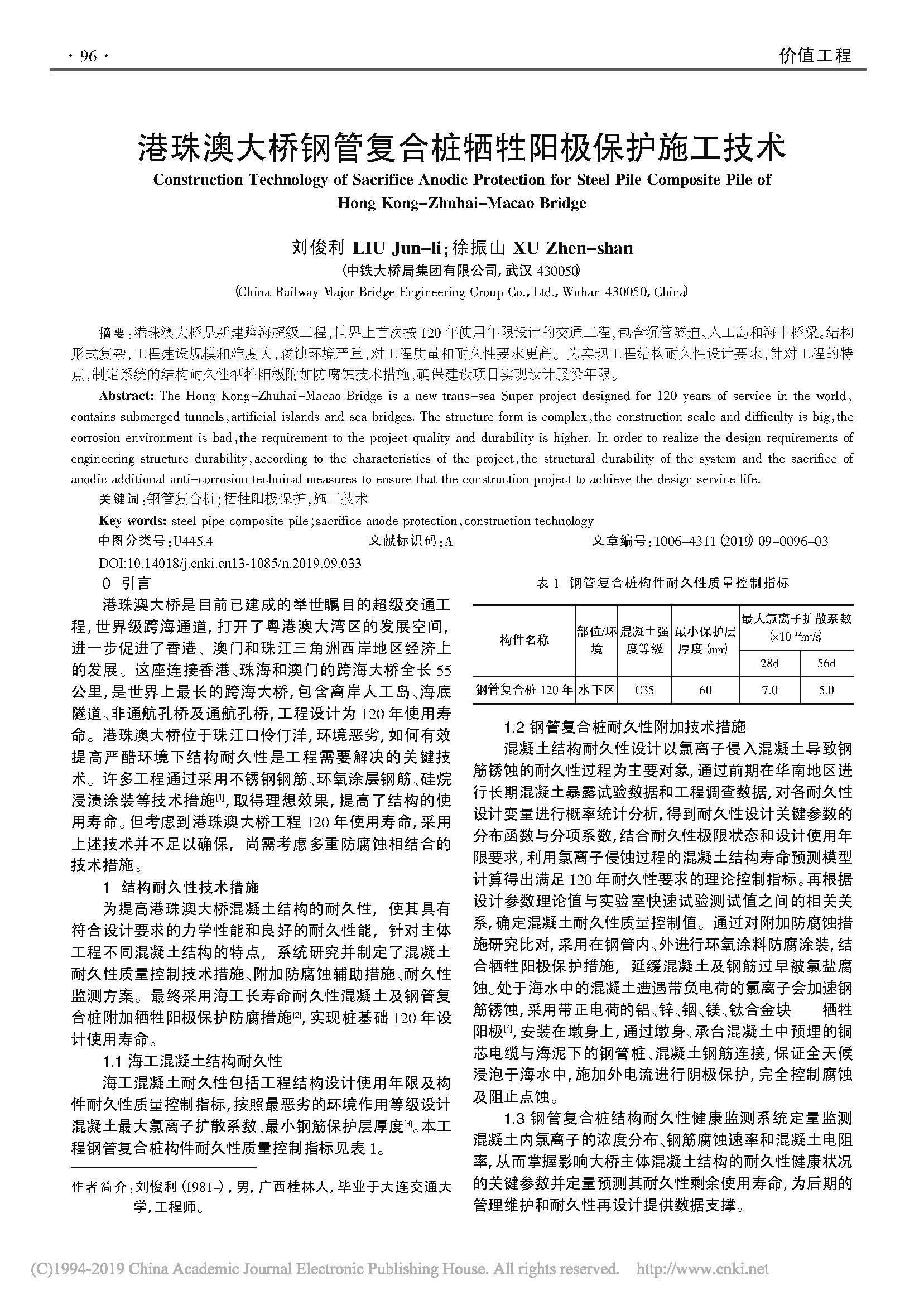 港珠澳大桥钢管复合桩牺牲阳极保护施工技术