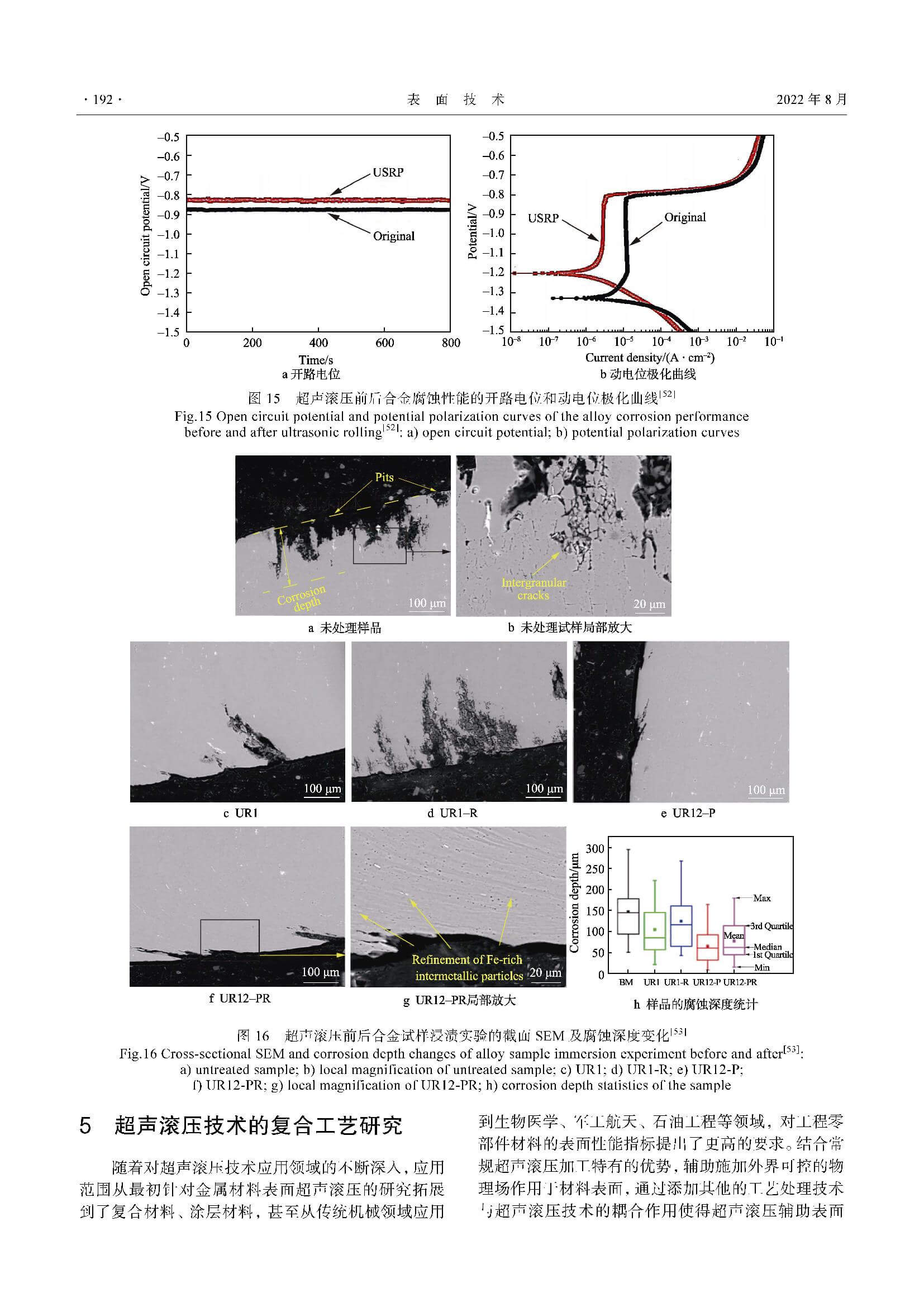 超声滚压对 7075 铝合金耐腐蚀性能的影响