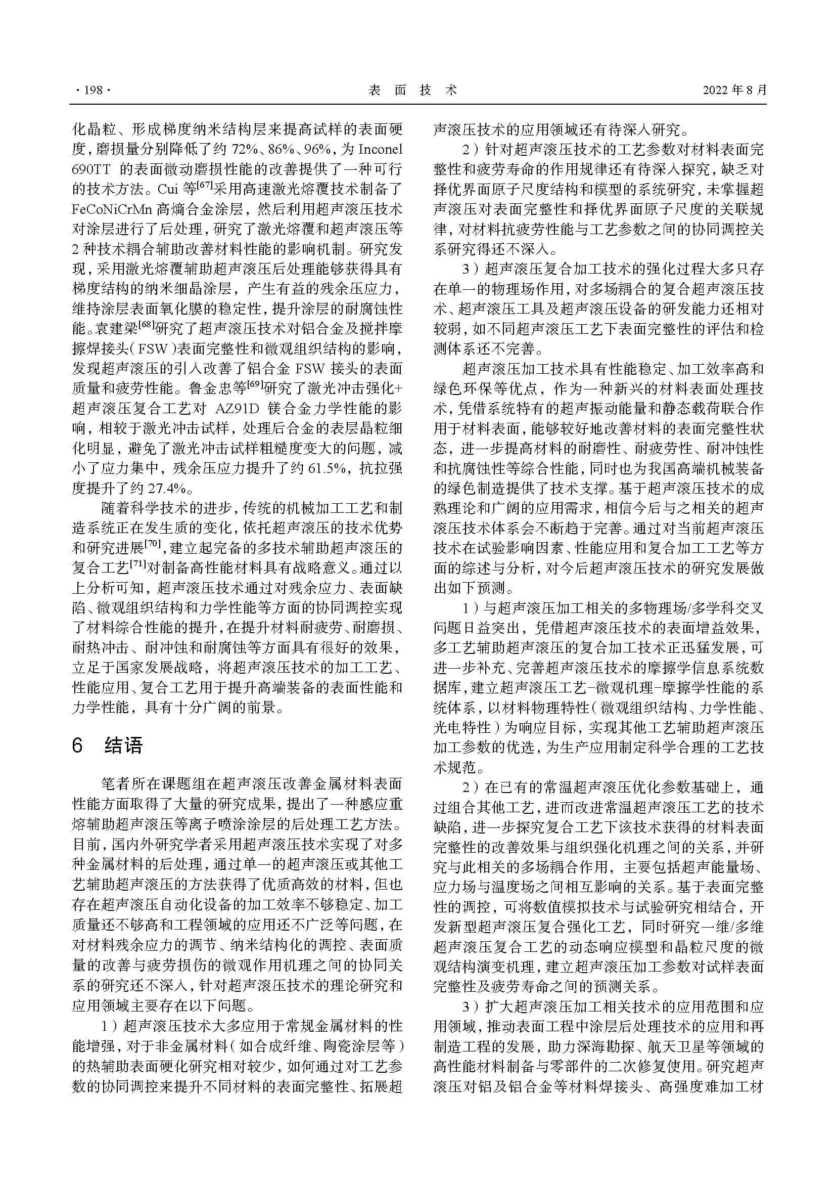 超声滚压表面强化技术的研究现状与应用