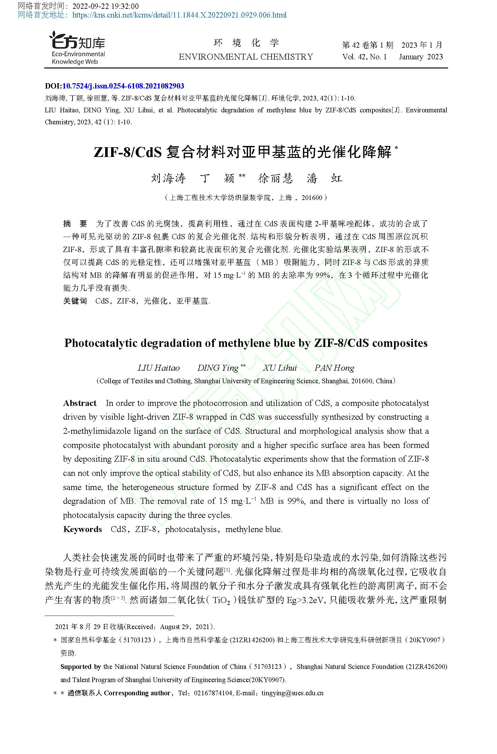 ZIF-8_CdS复合材料对亚甲基蓝的光催化降解