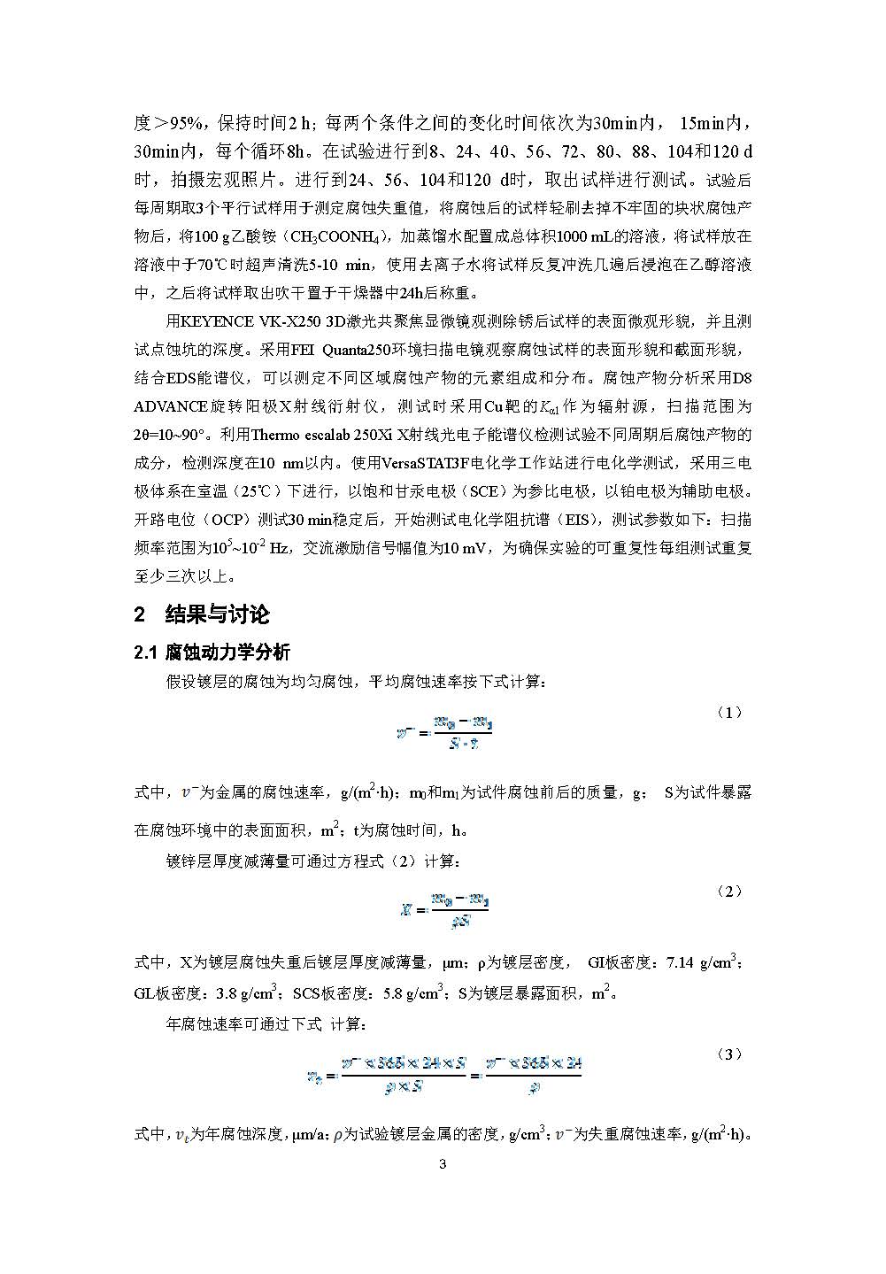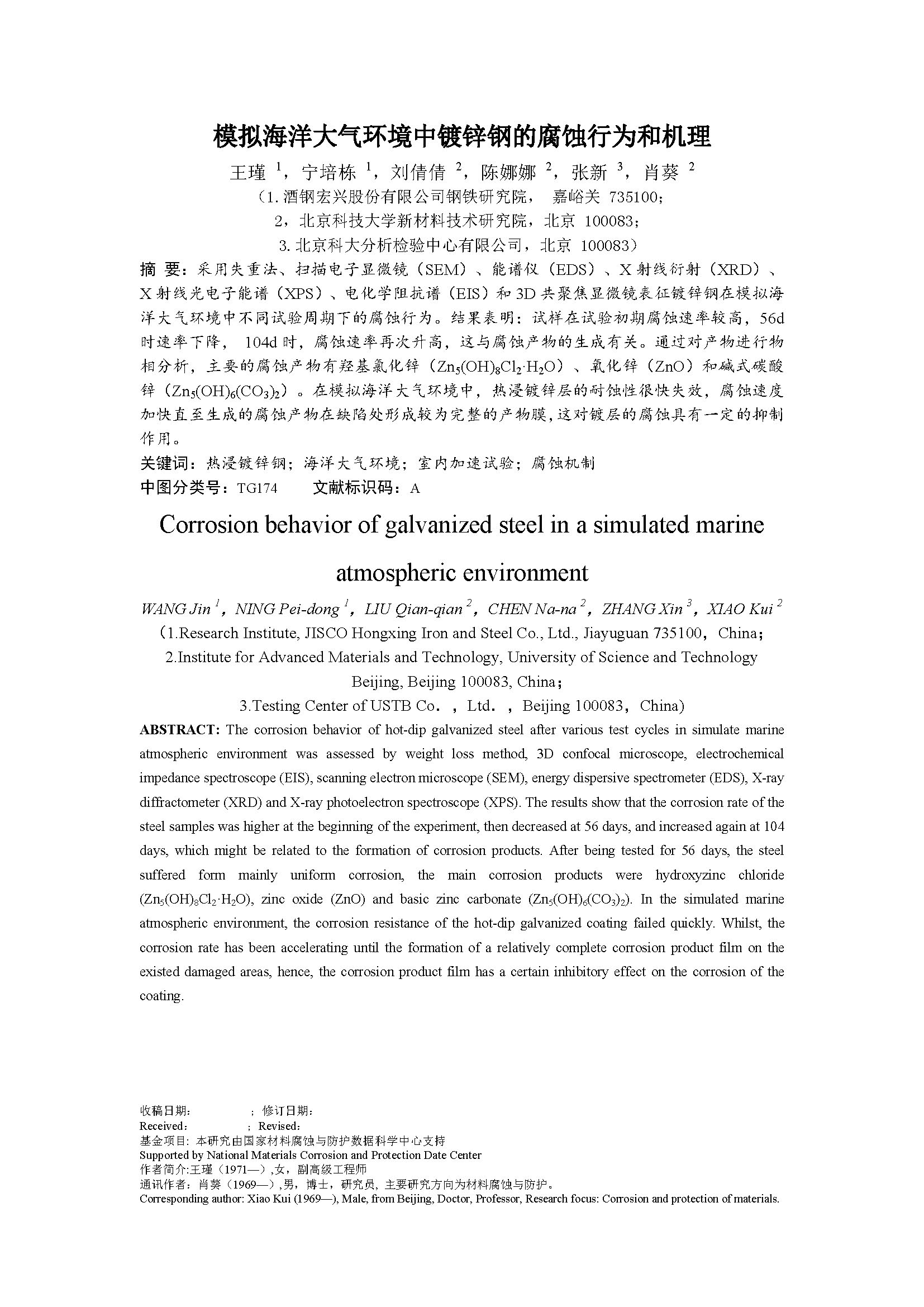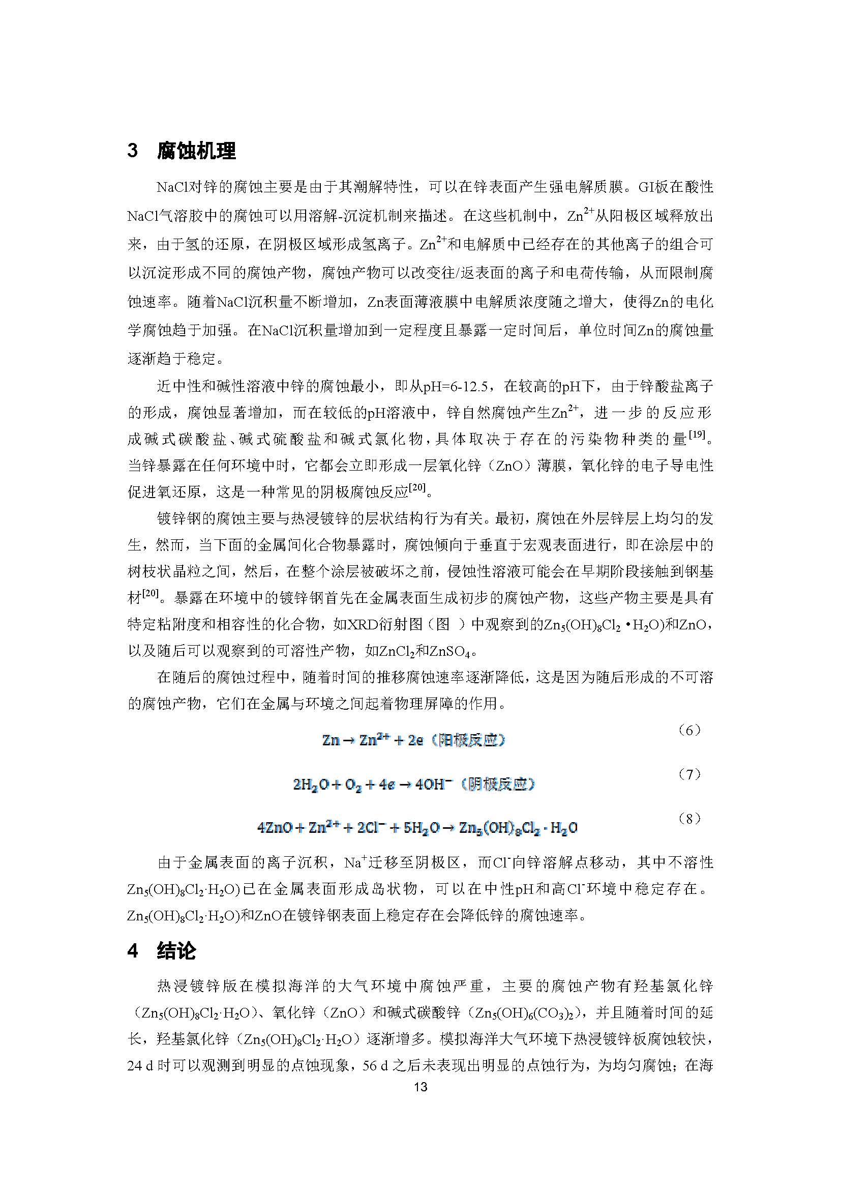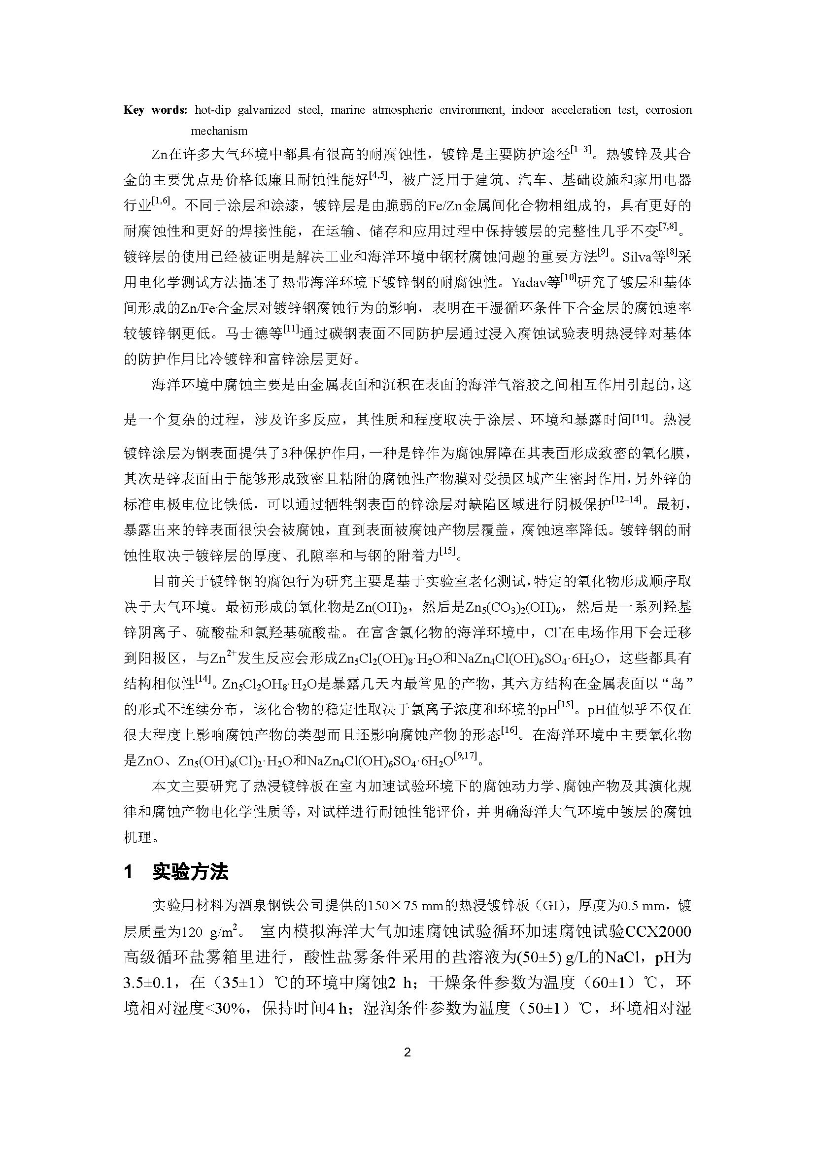 模拟海洋大气环境中镀锌钢的腐蚀行为和机理