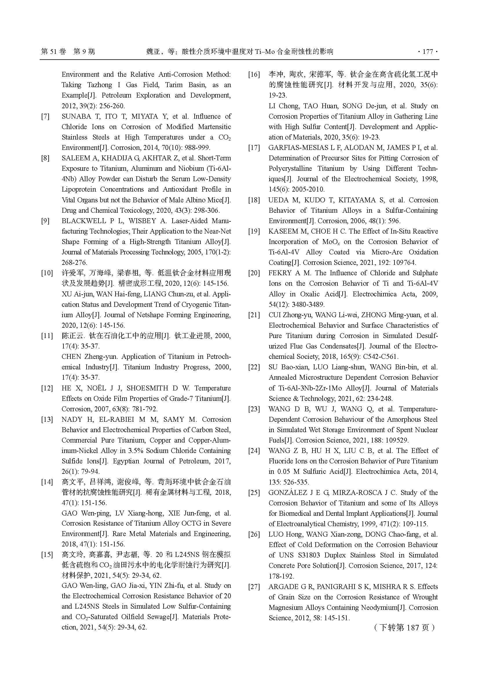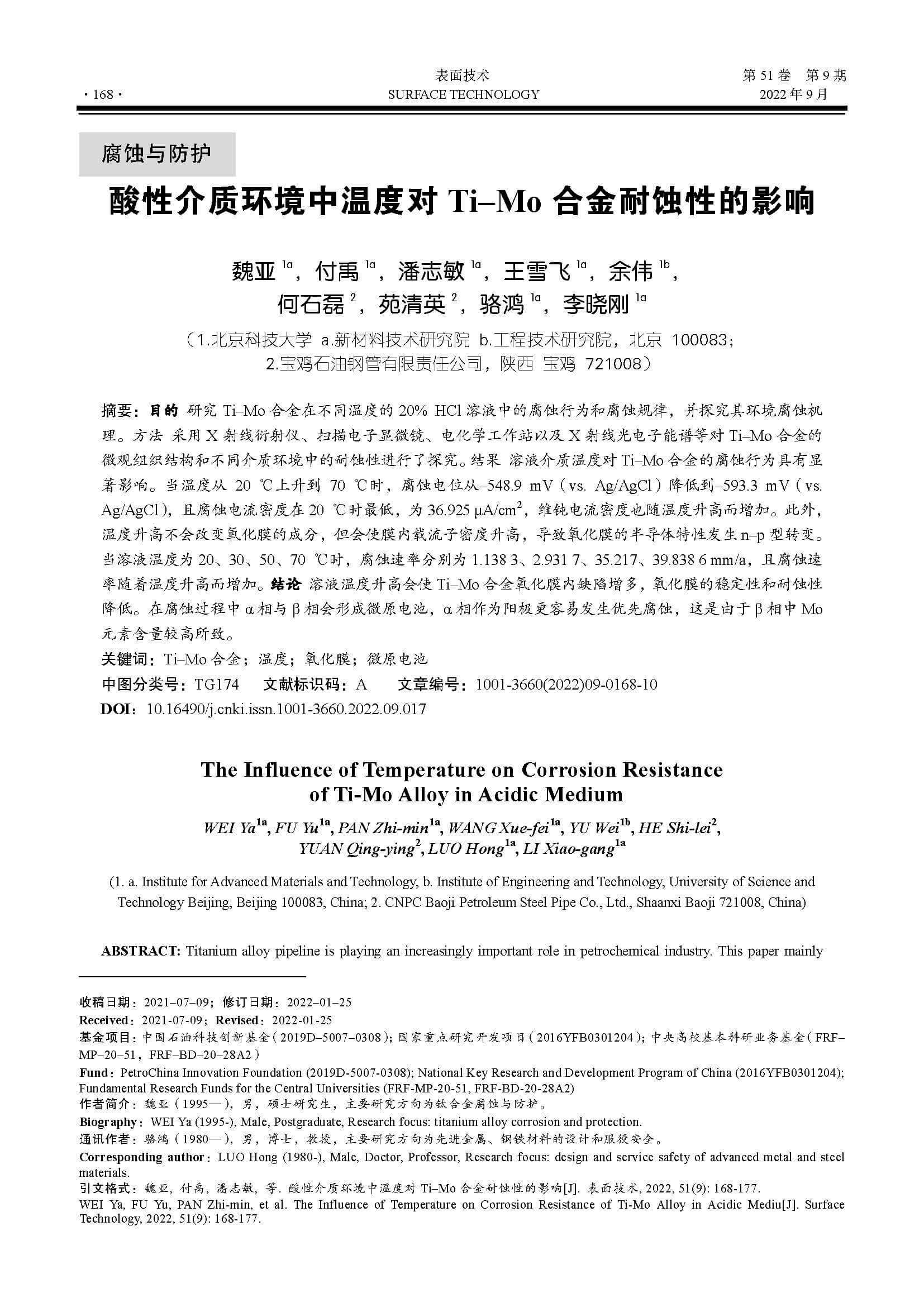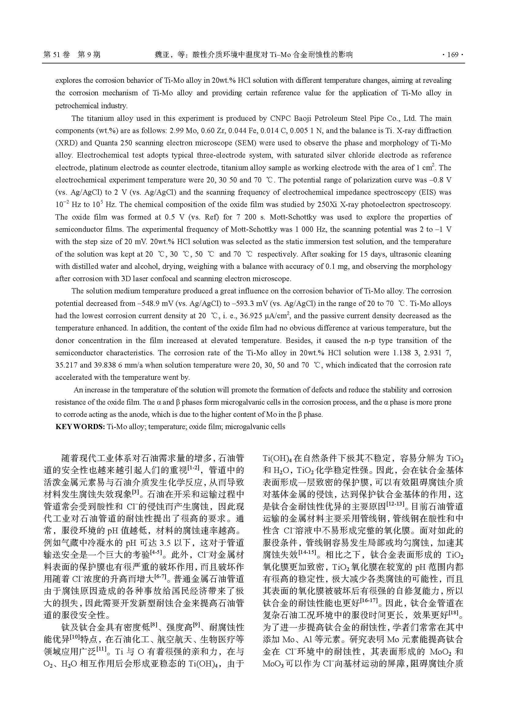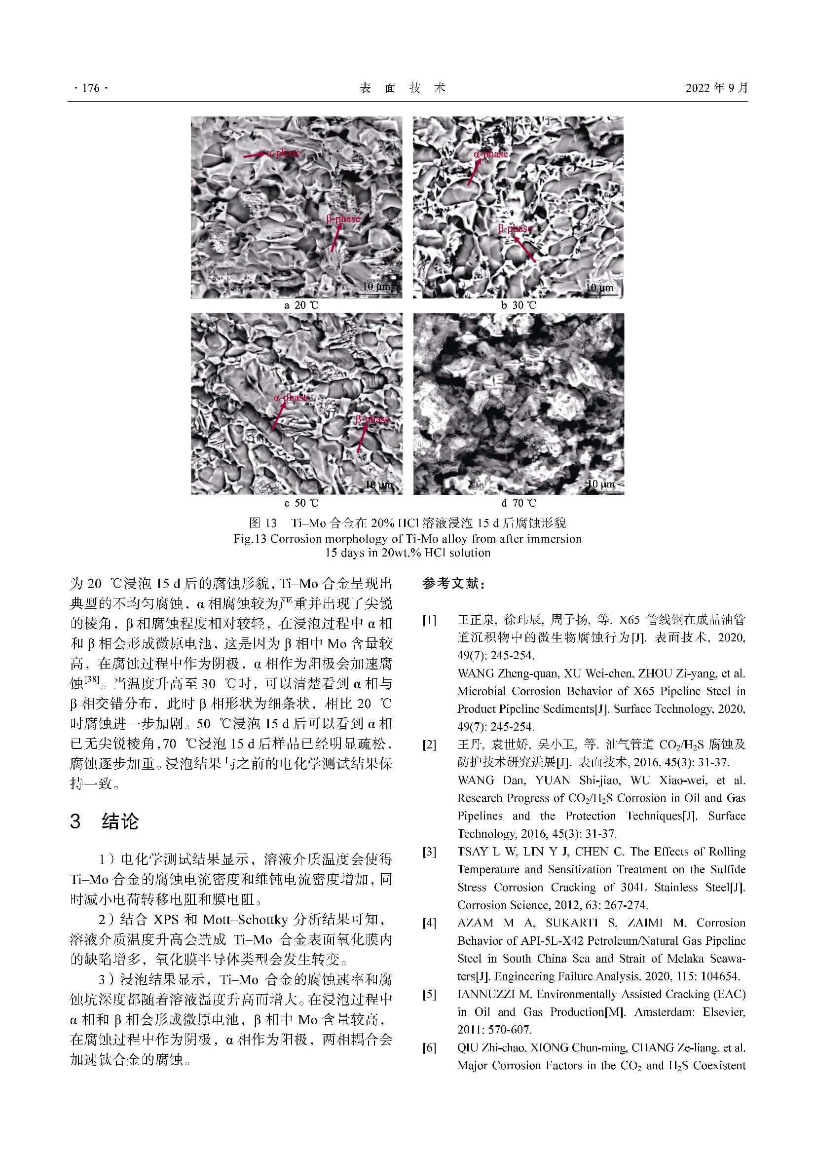 酸性介质环境中温度对Ti–Mo合金耐蚀性的影响