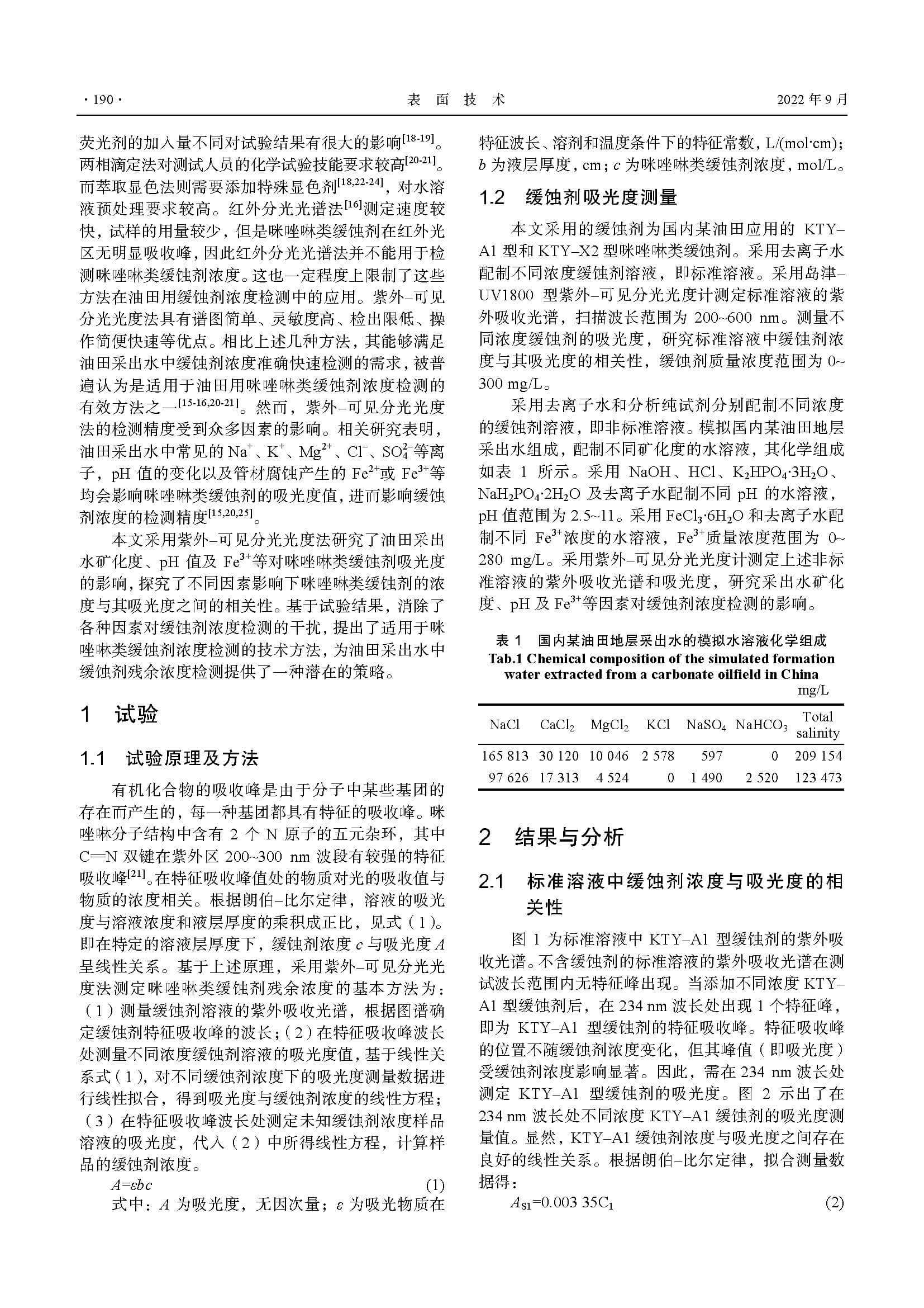 油田采出水模拟溶液中咪唑啉类缓蚀剂残余浓度检测技术