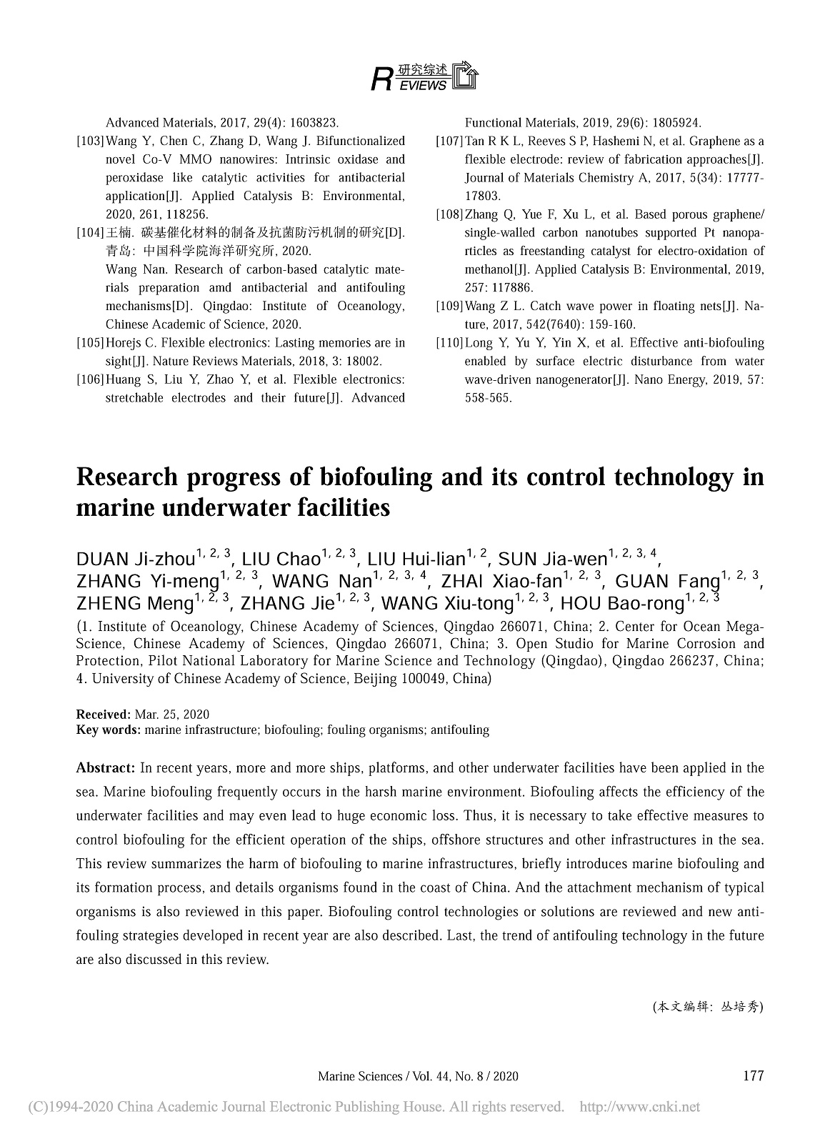海洋水下设施生物污损及其控制技术研究进展