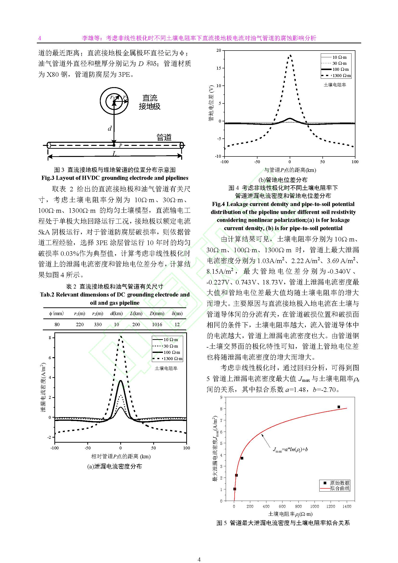 考虑非线性极化时不同土壤电阻率下直流接地极电流对油气管道的腐蚀影响分析