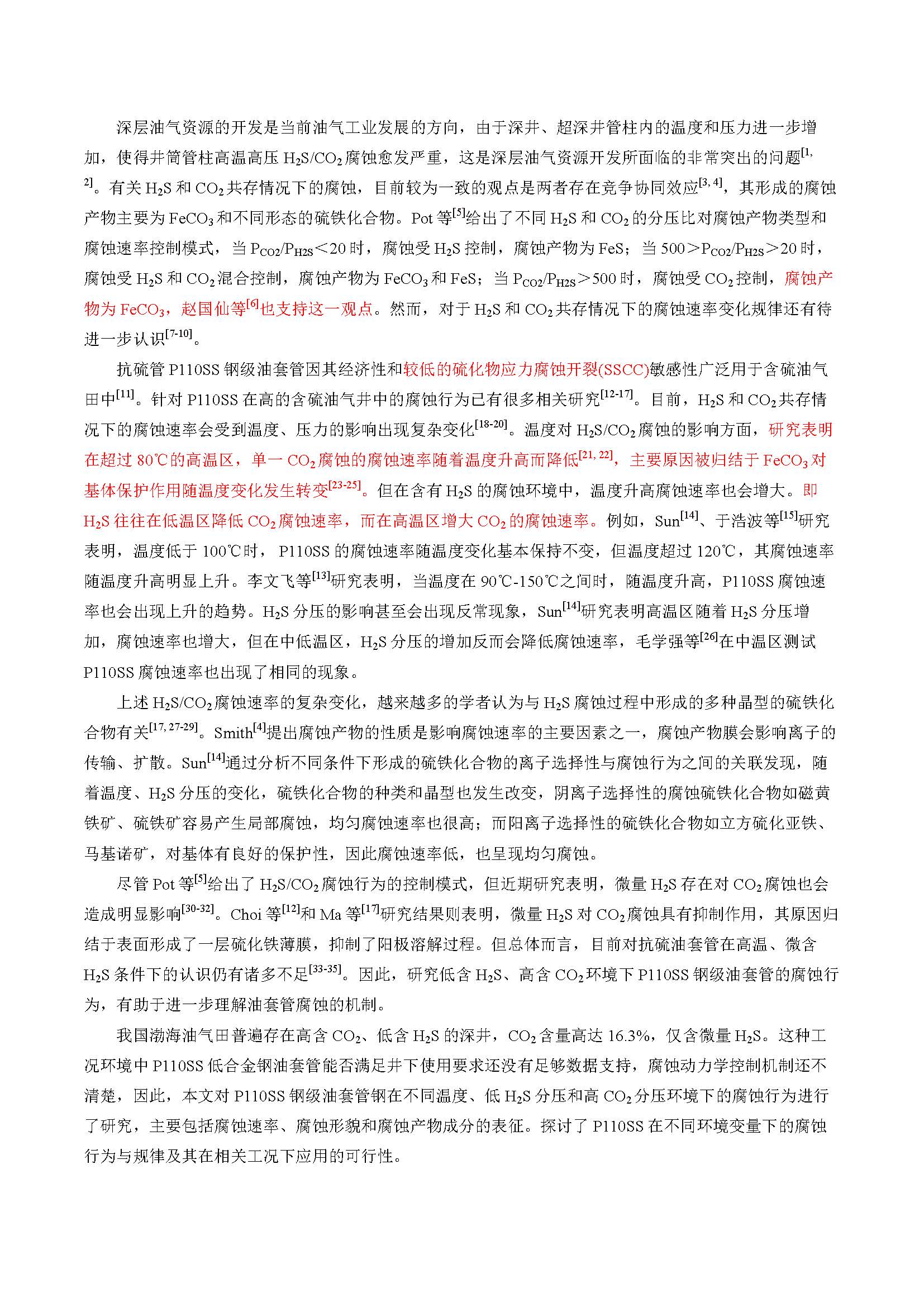 低 H2S 和高 CO2分压下超深井用 P110SS 油套管钢腐蚀特征研究