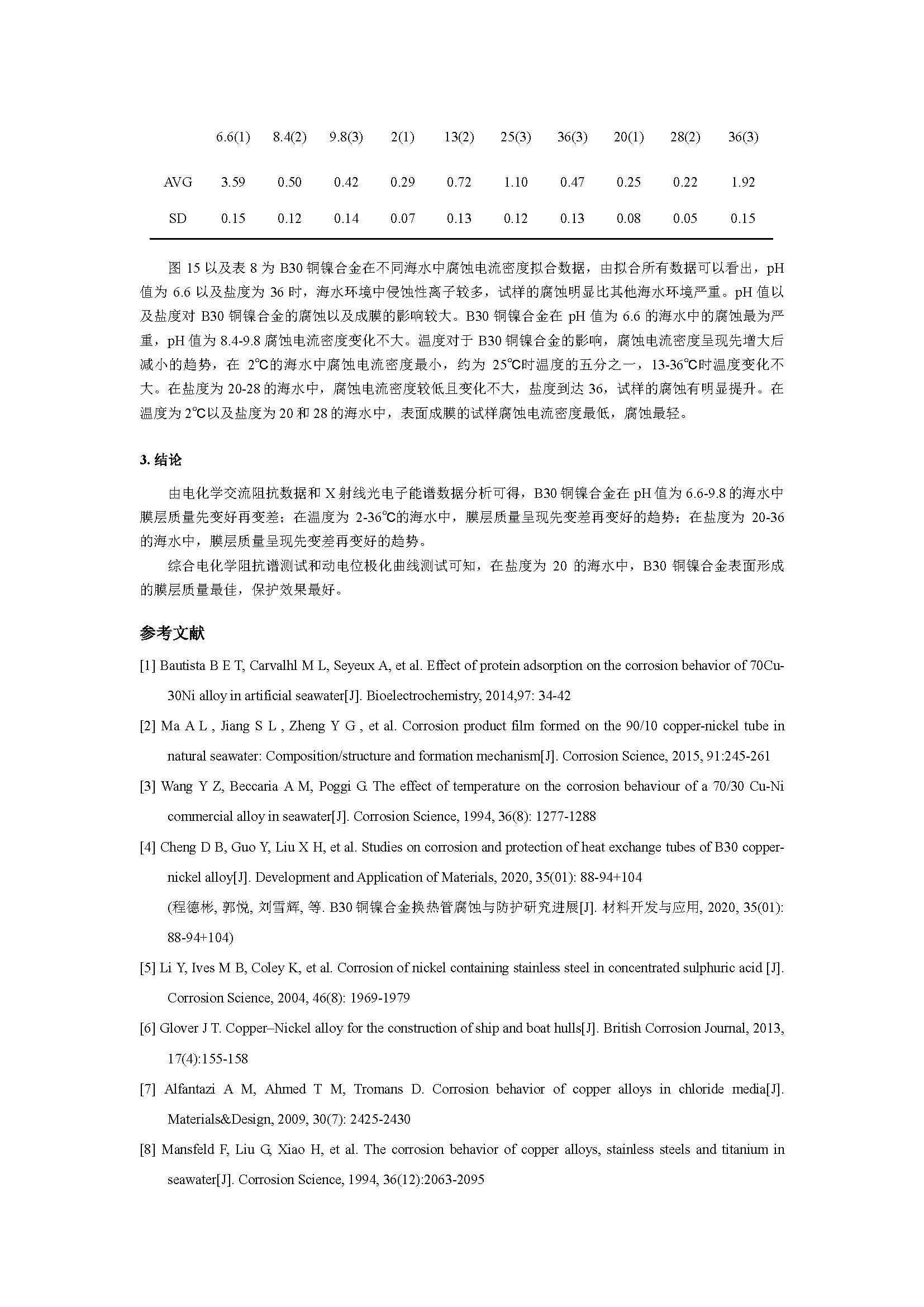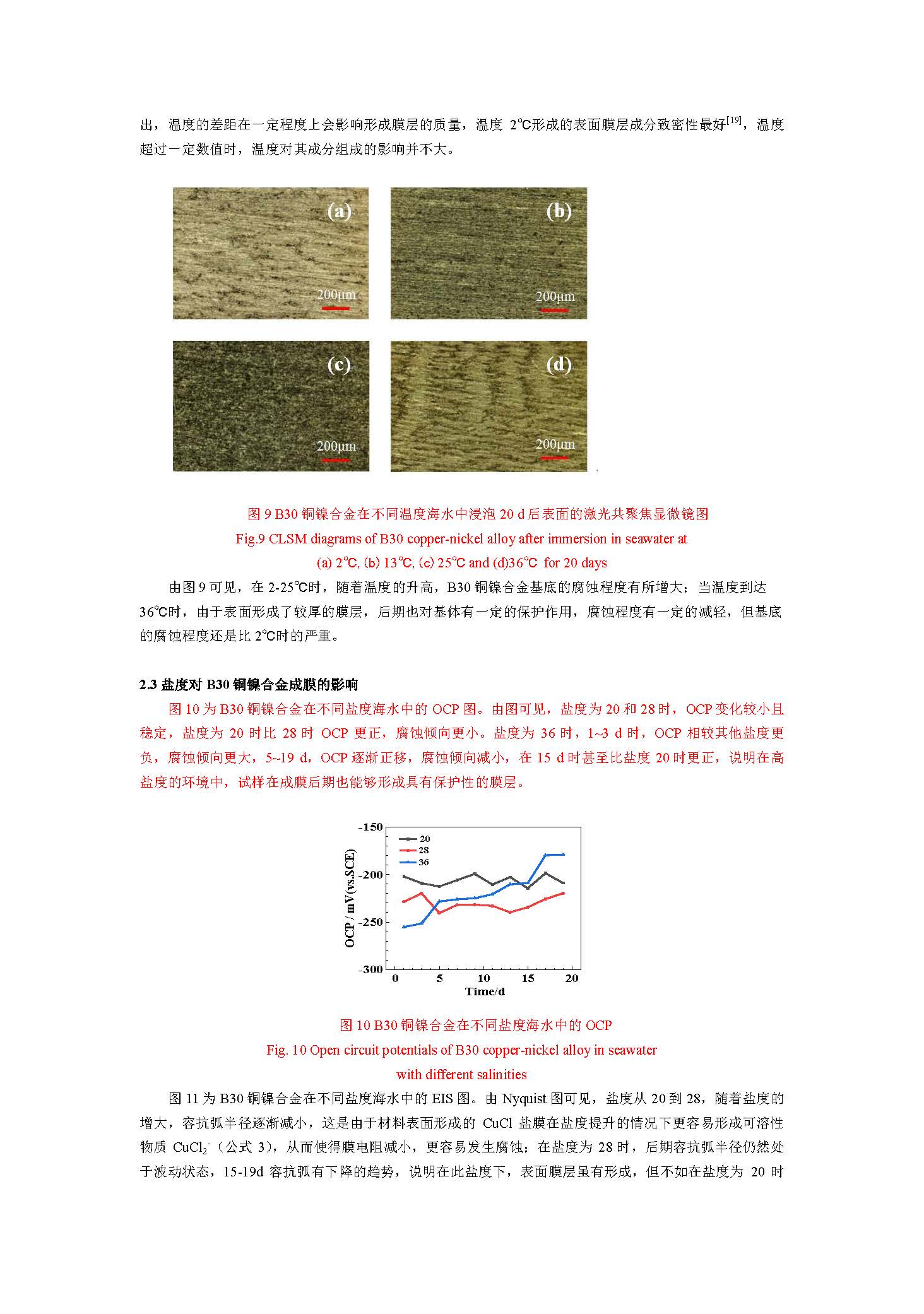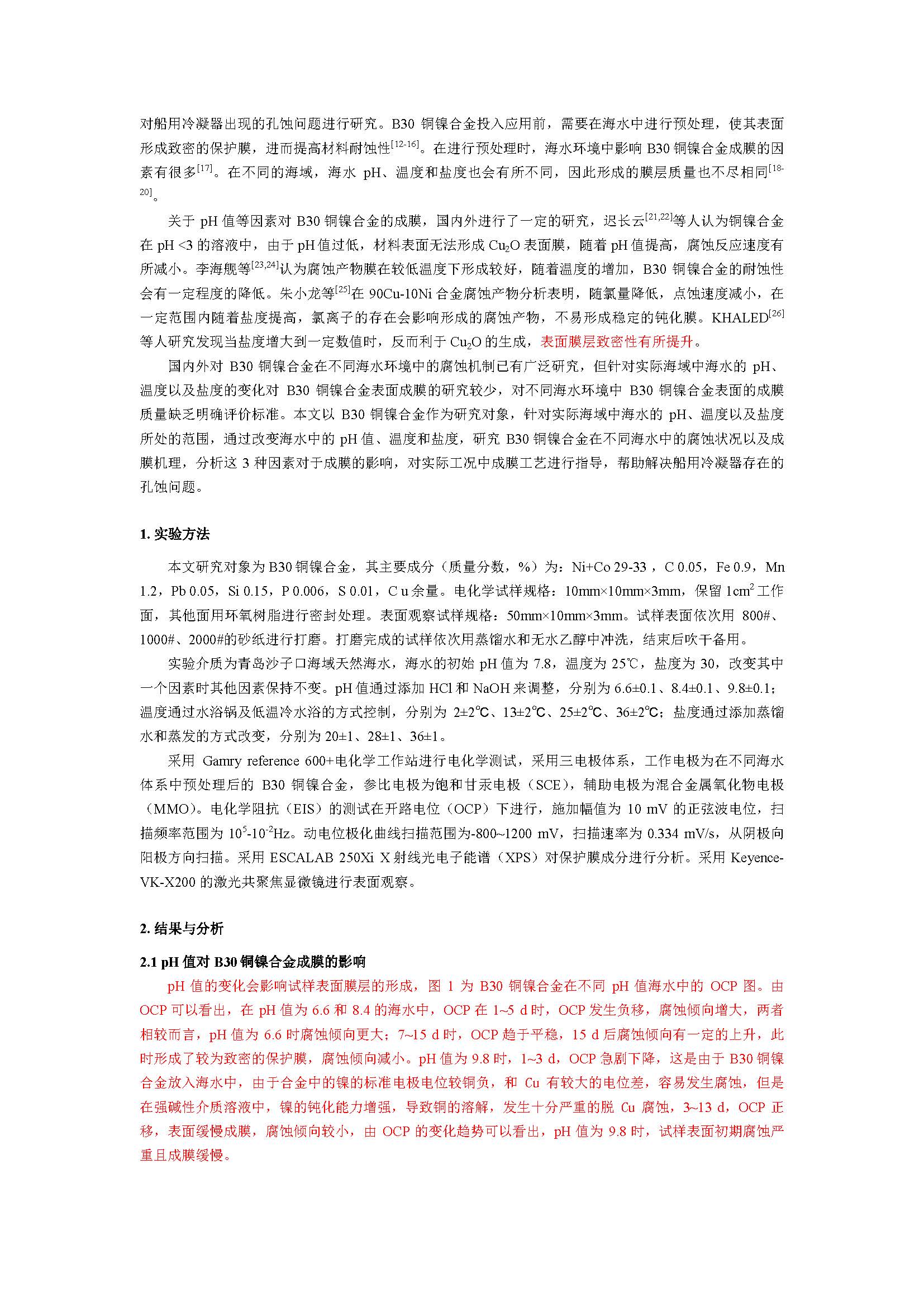 pH 值、温度和盐度对 B30 铜镍合金在海水中成膜的影响