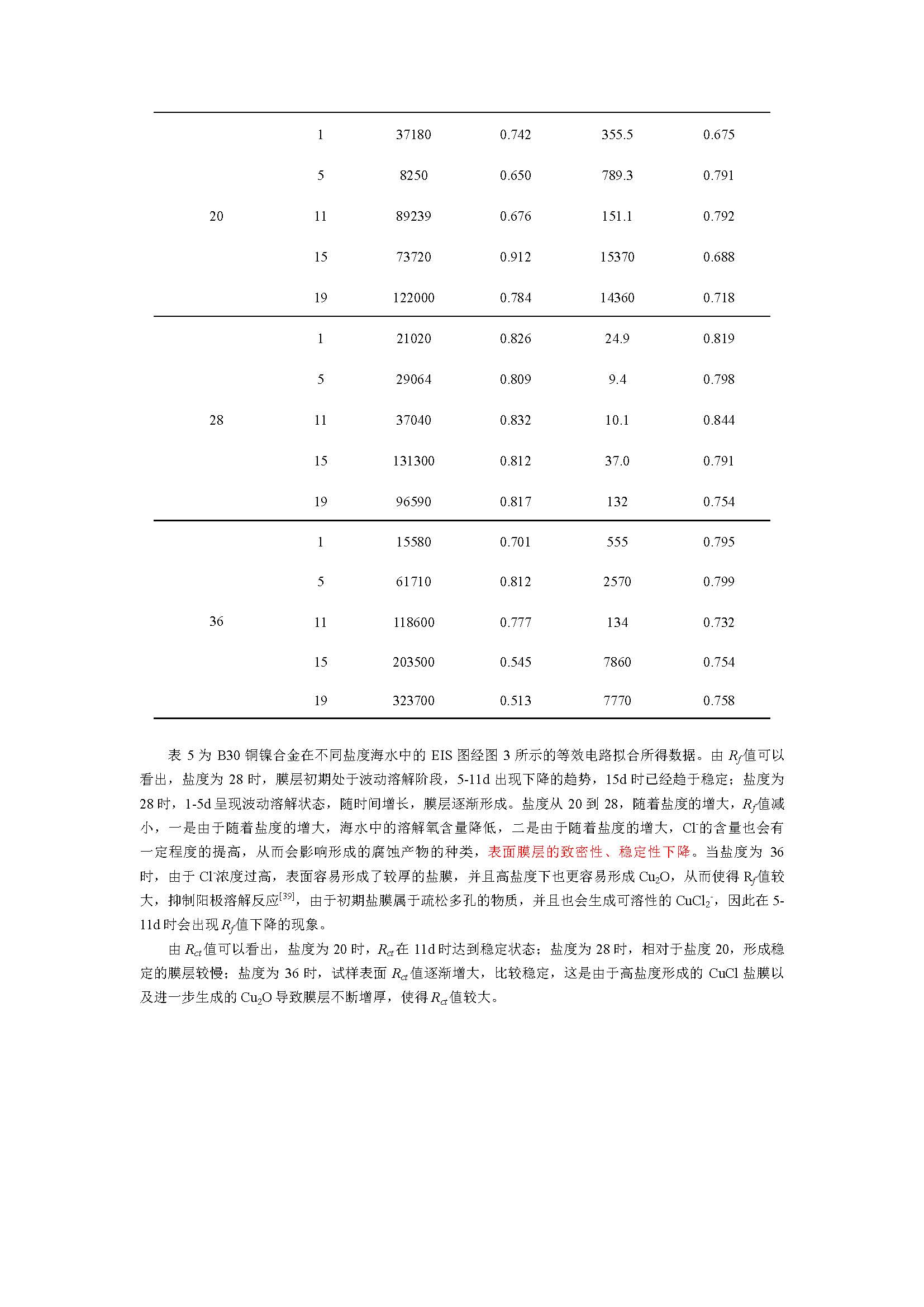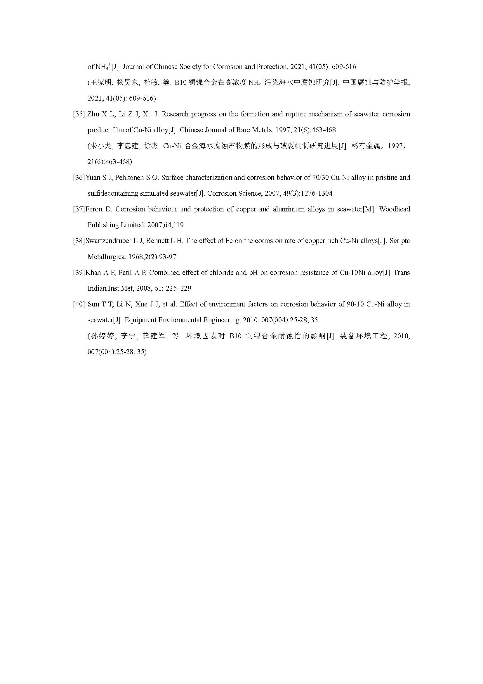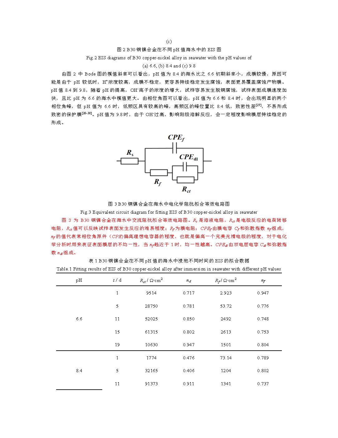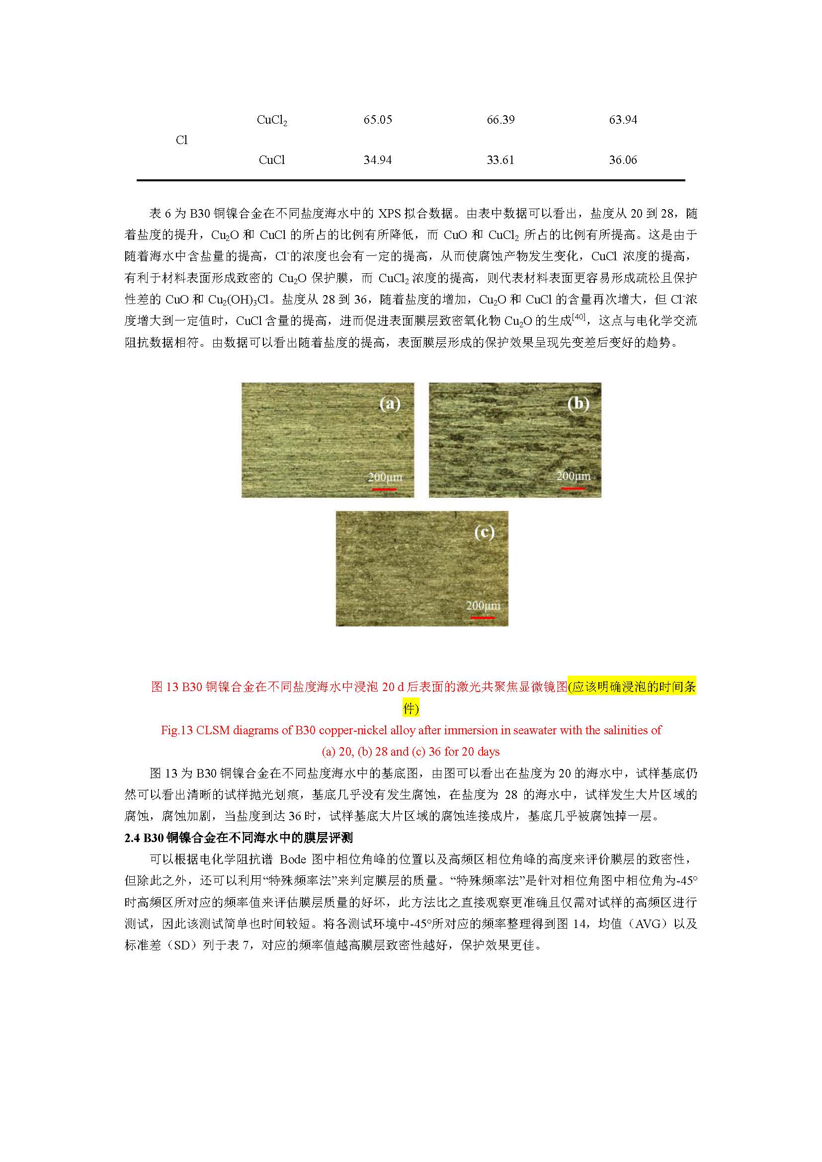 pH 值、温度和盐度对 B30 铜镍合金在海水中成膜的影响