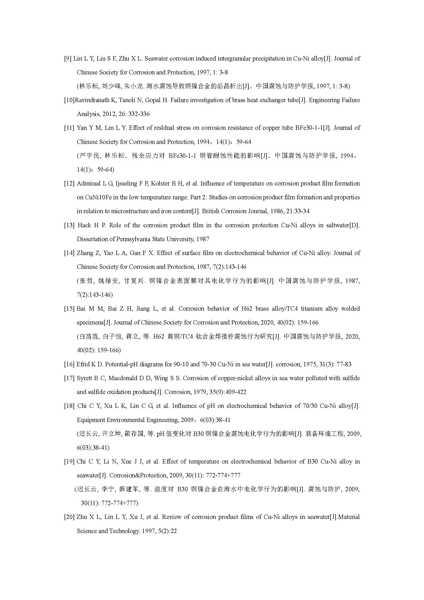 70Cu-30Ni合金管硫酸亚铁预成膜及冲刷腐蚀行为分析