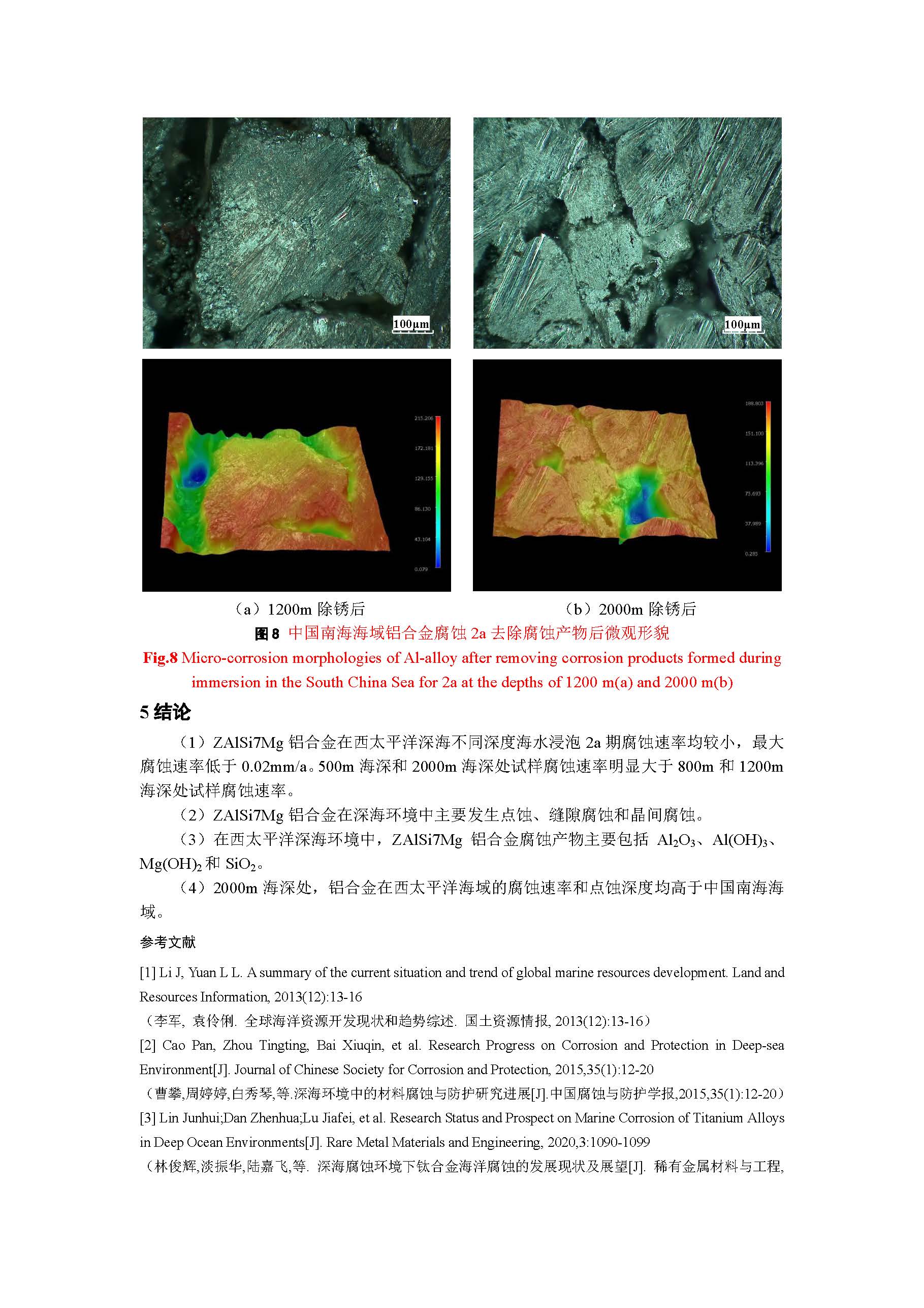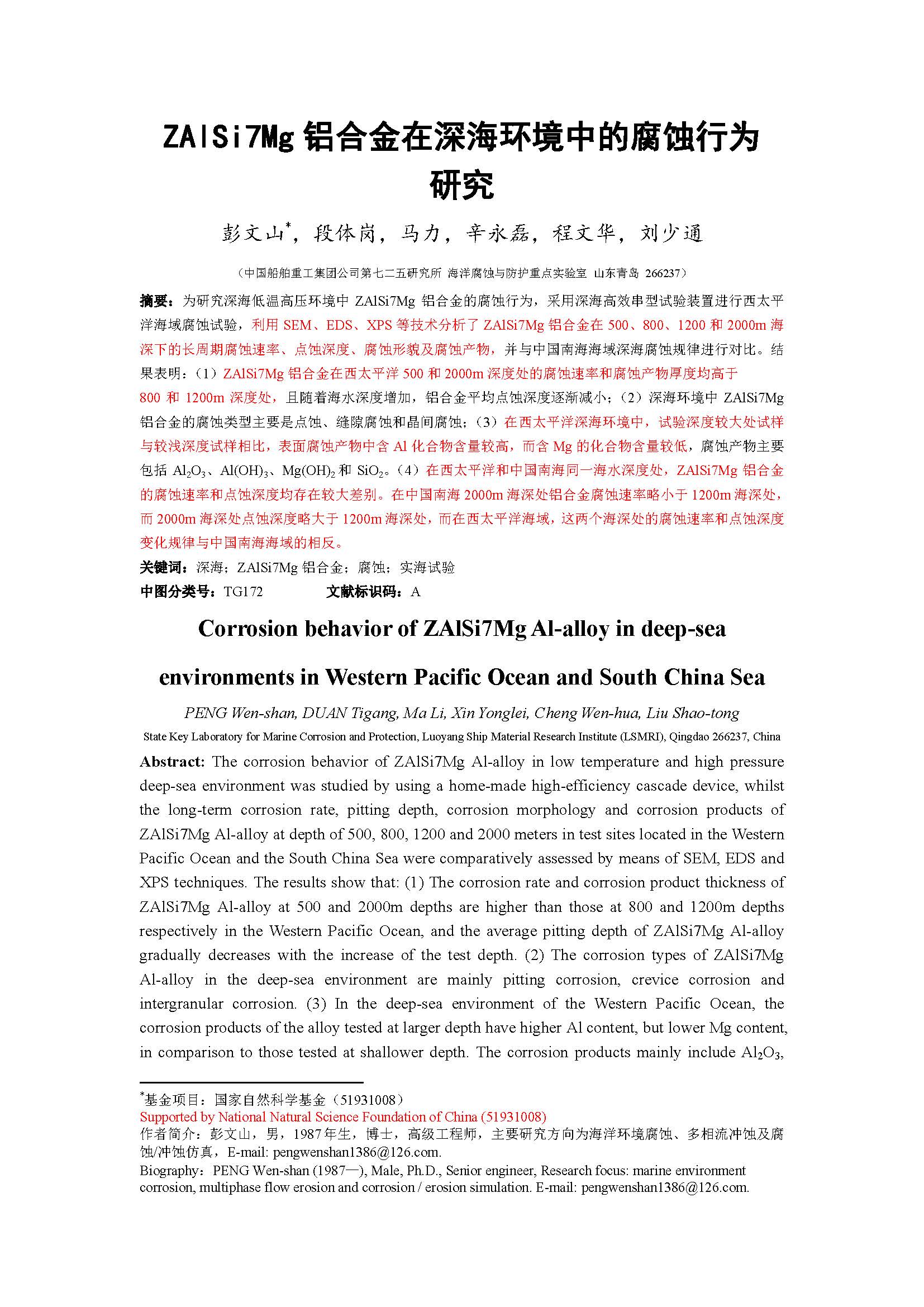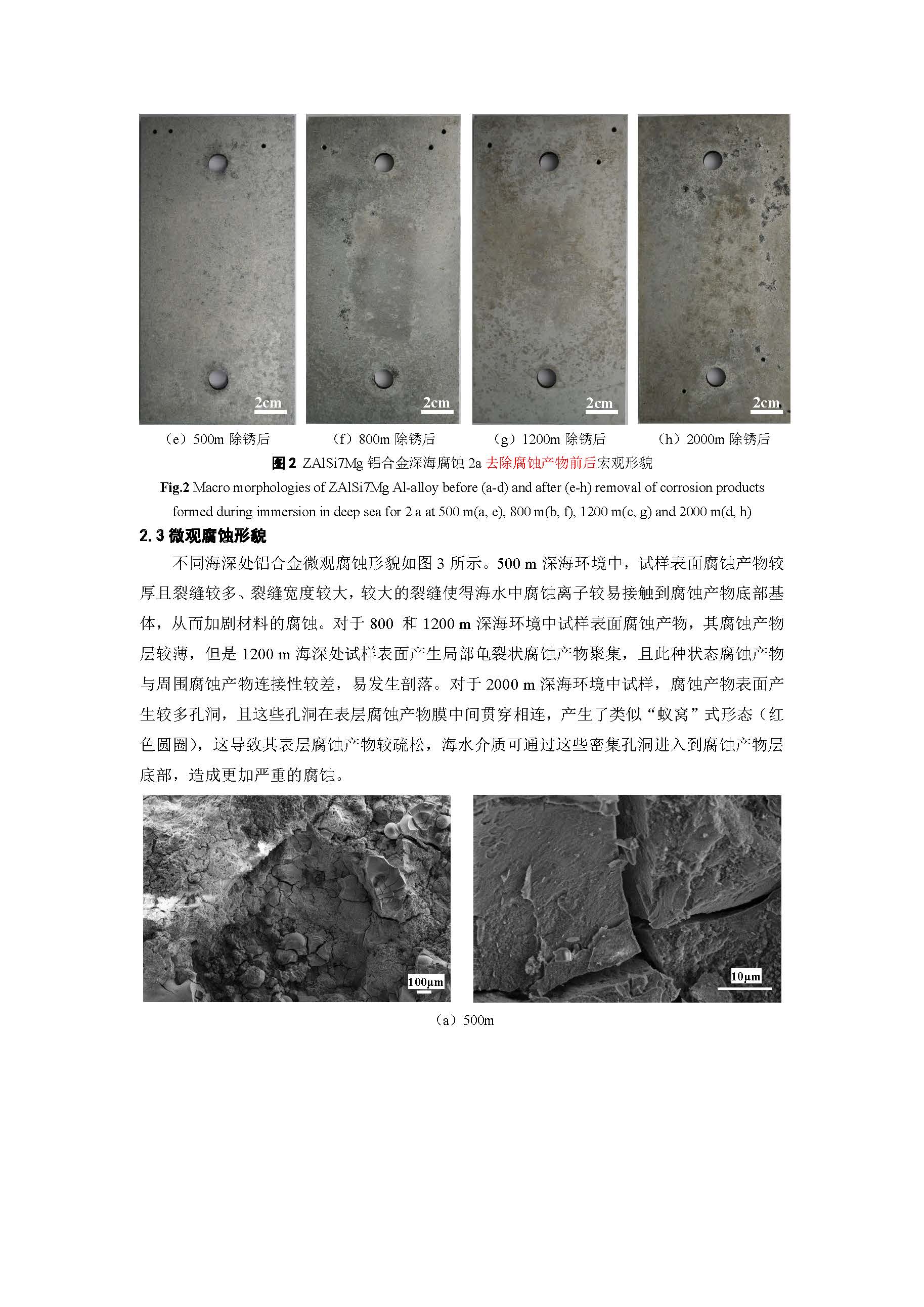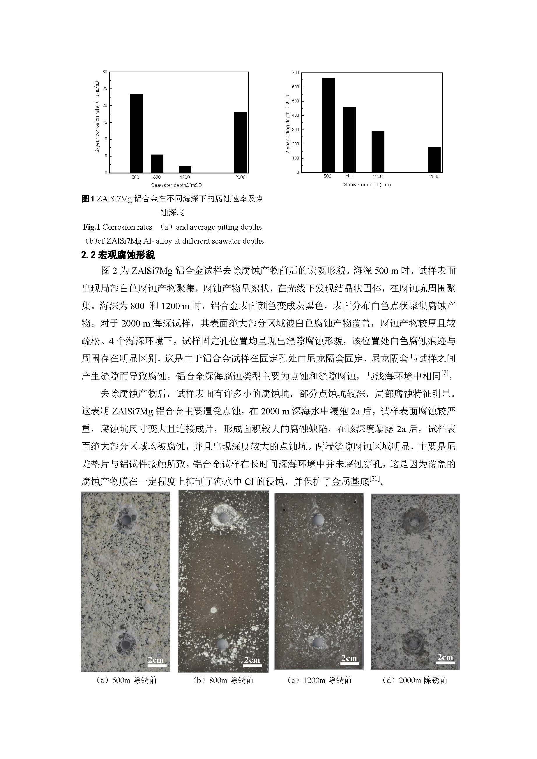 标签: 深海, ZAlSi7Mg铝合金, 腐蚀, 实海试验