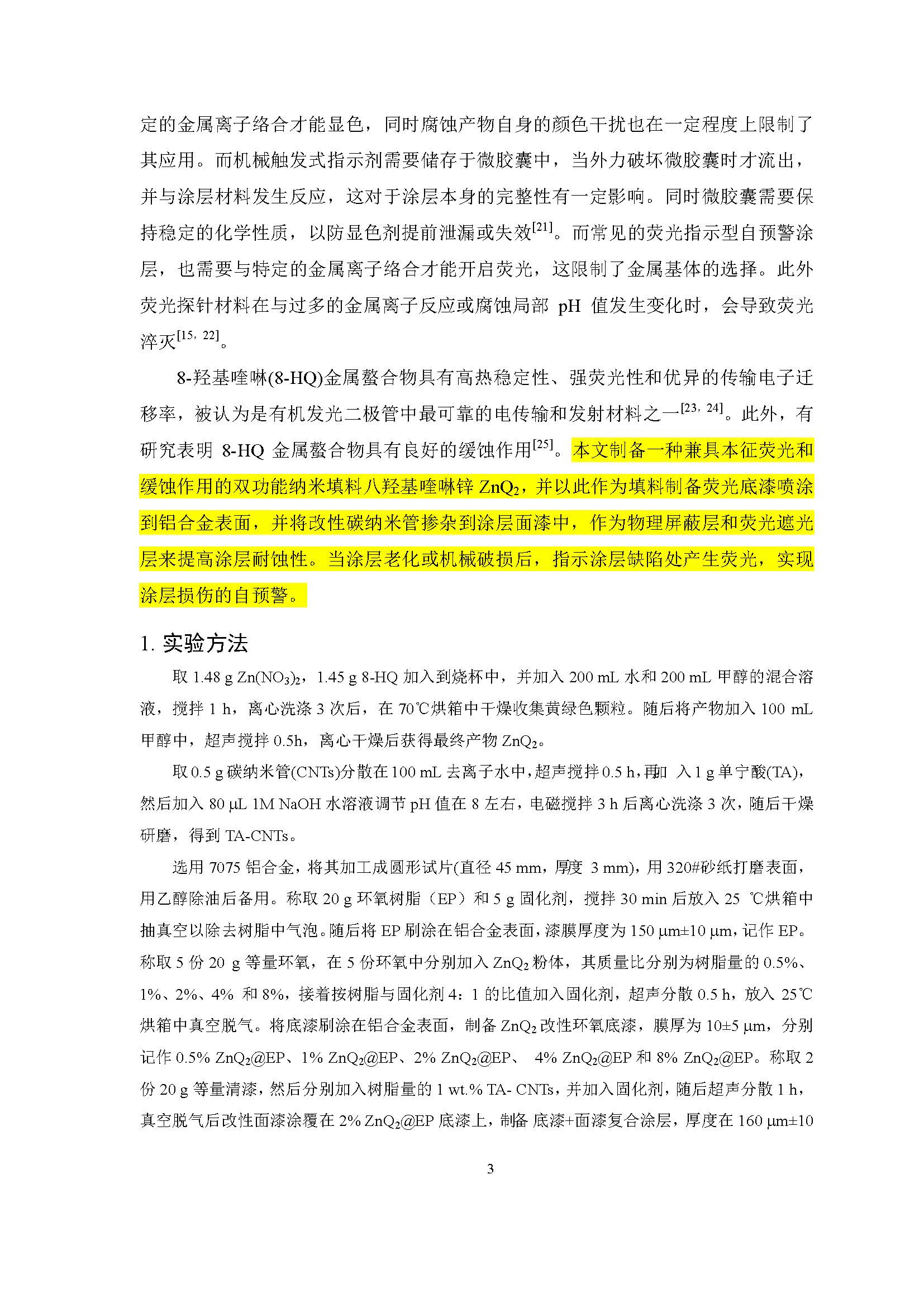 采用荧光纳米填料改性环氧涂层实现涂层缺陷可视化感知
