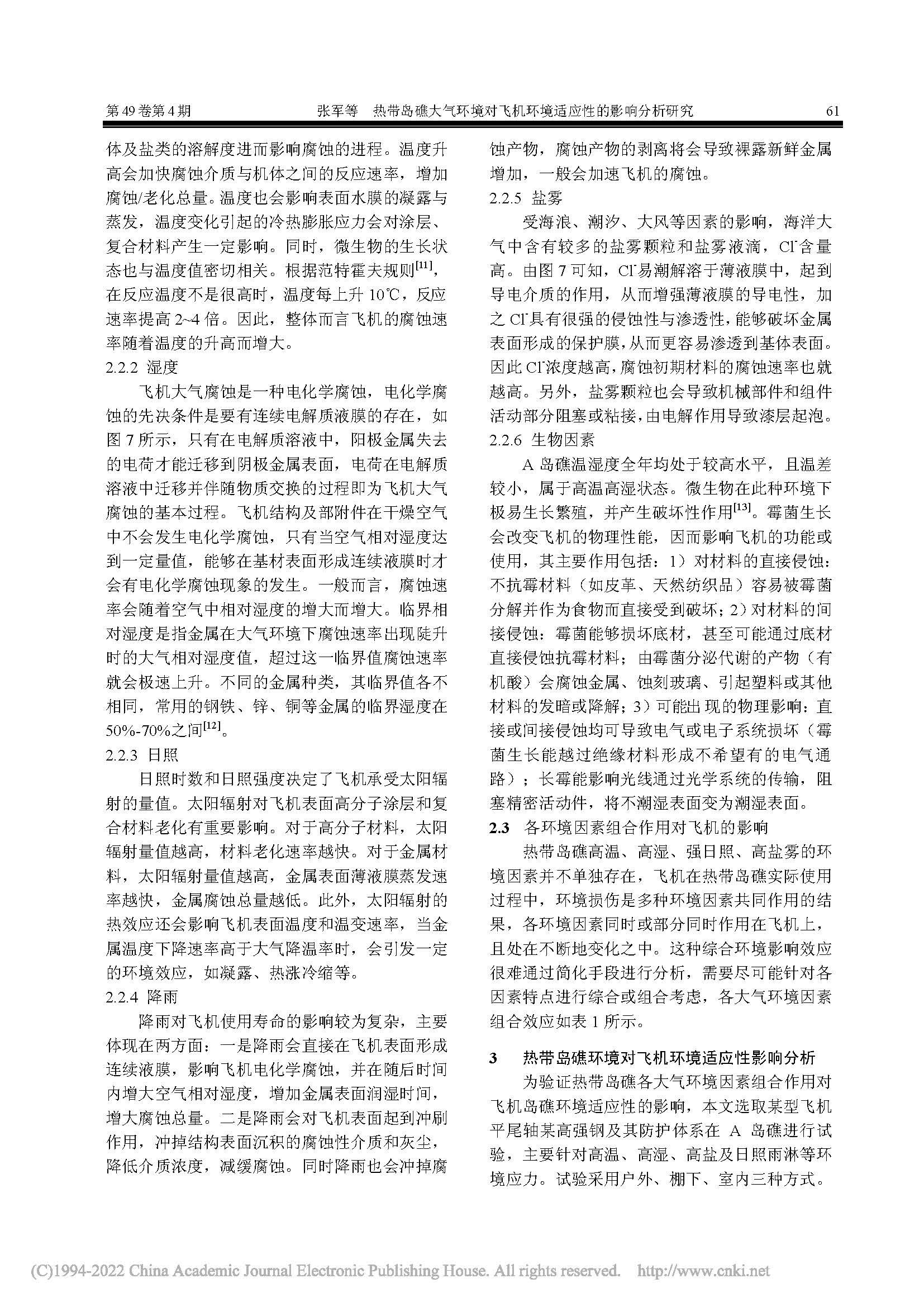 热带岛礁大气环境对飞机环境适应性的影响分析研究