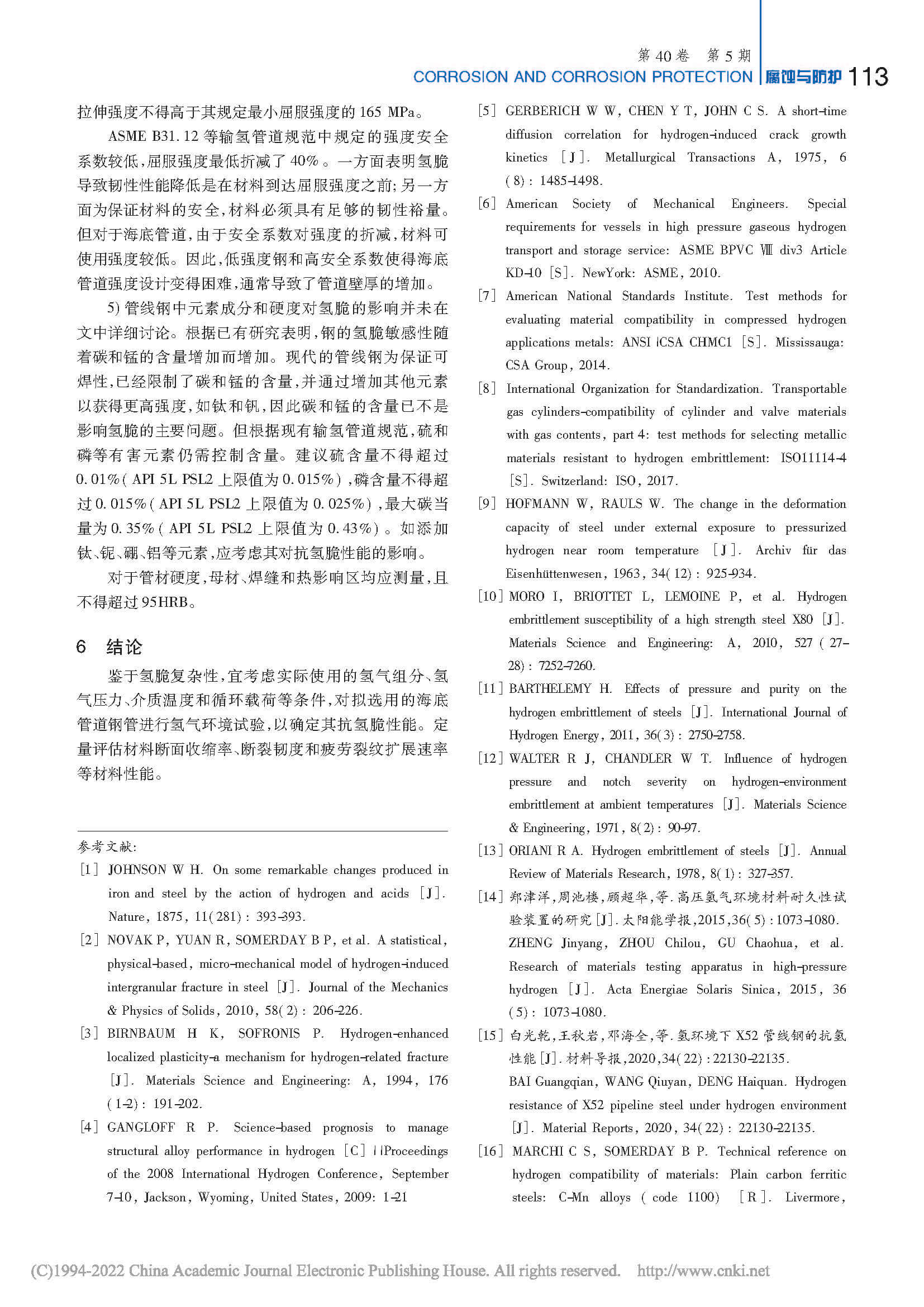 输氢海底管道材料选择研究