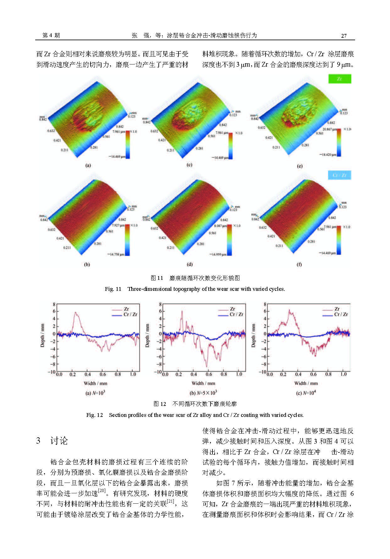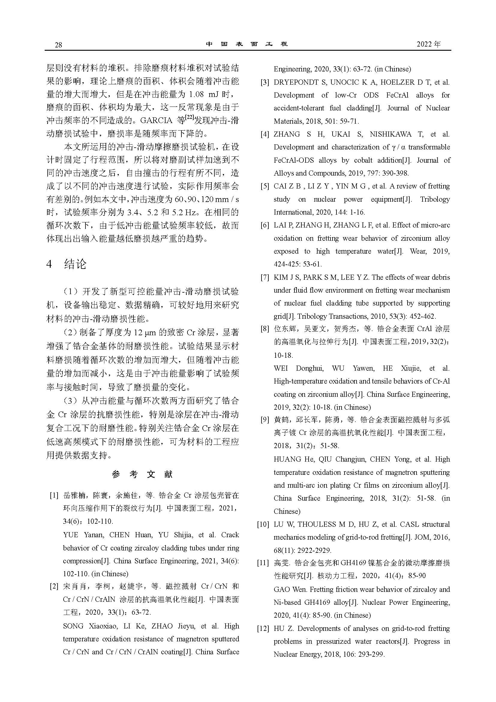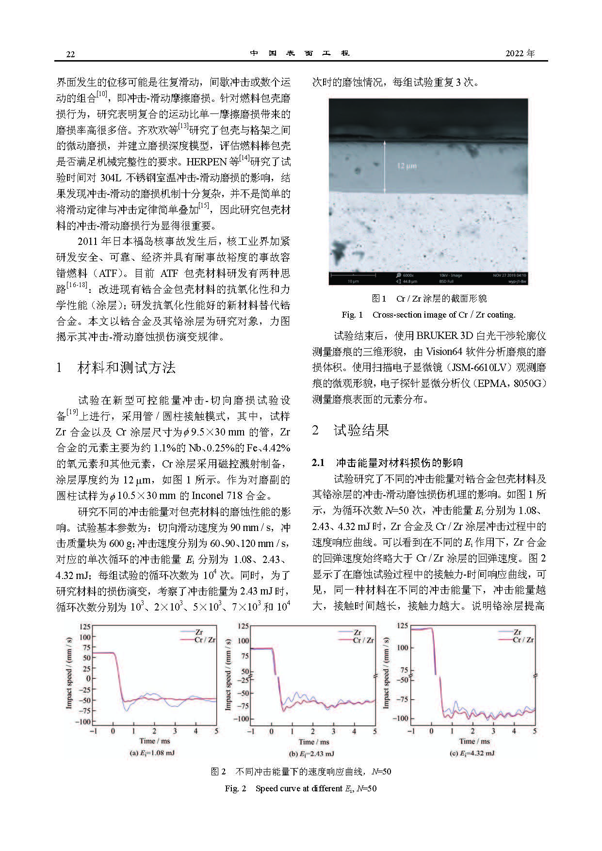 涂层锆合金冲击-滑动磨蚀损伤行为