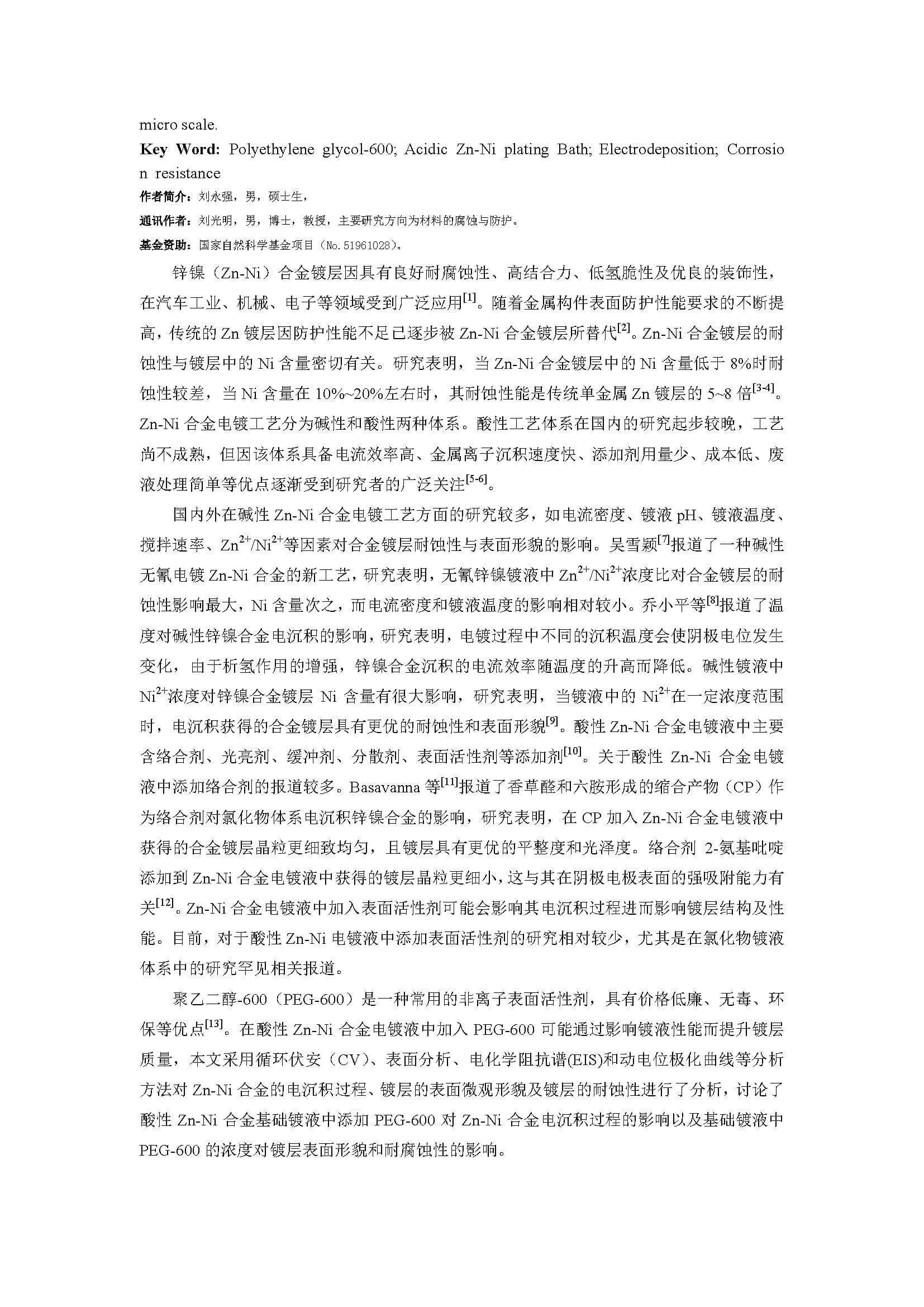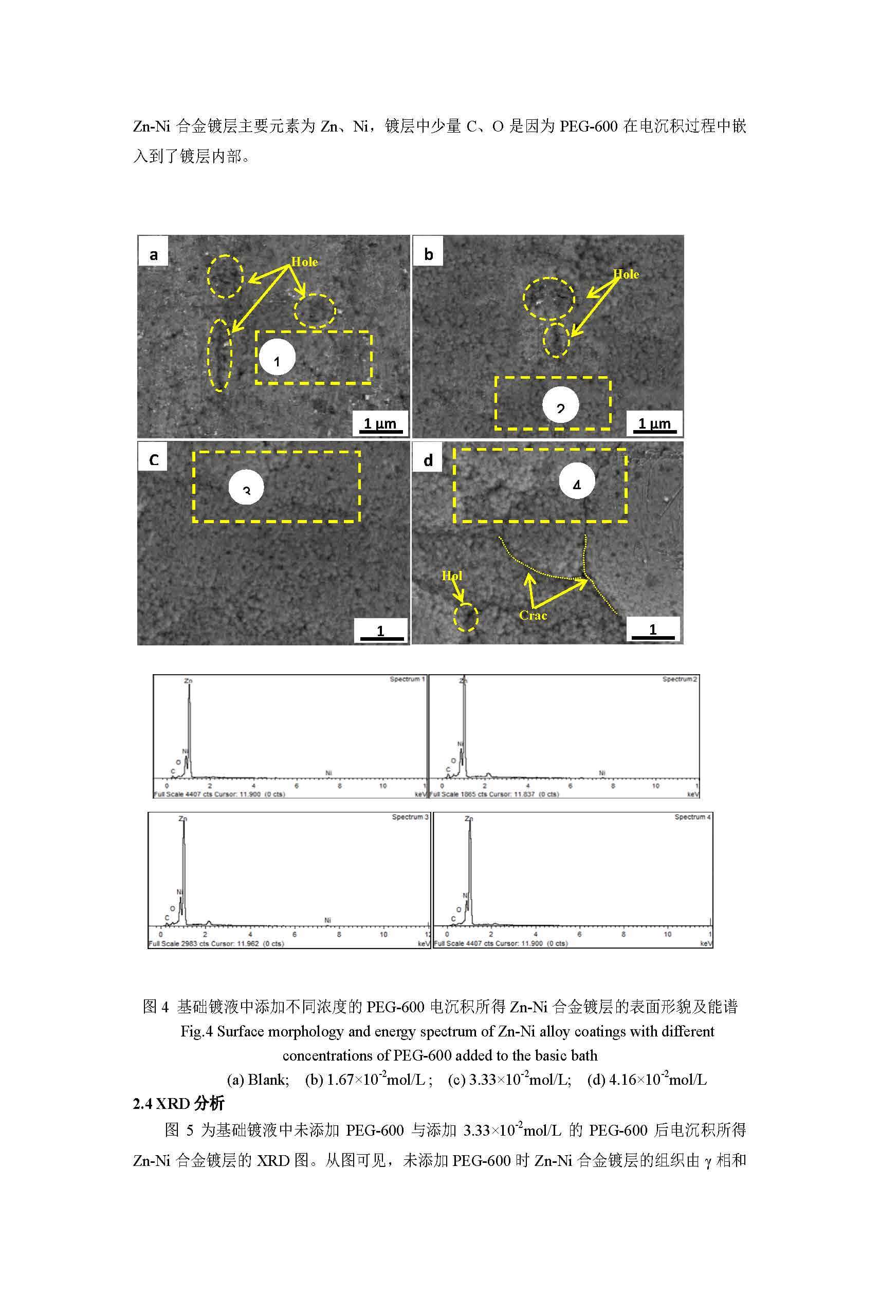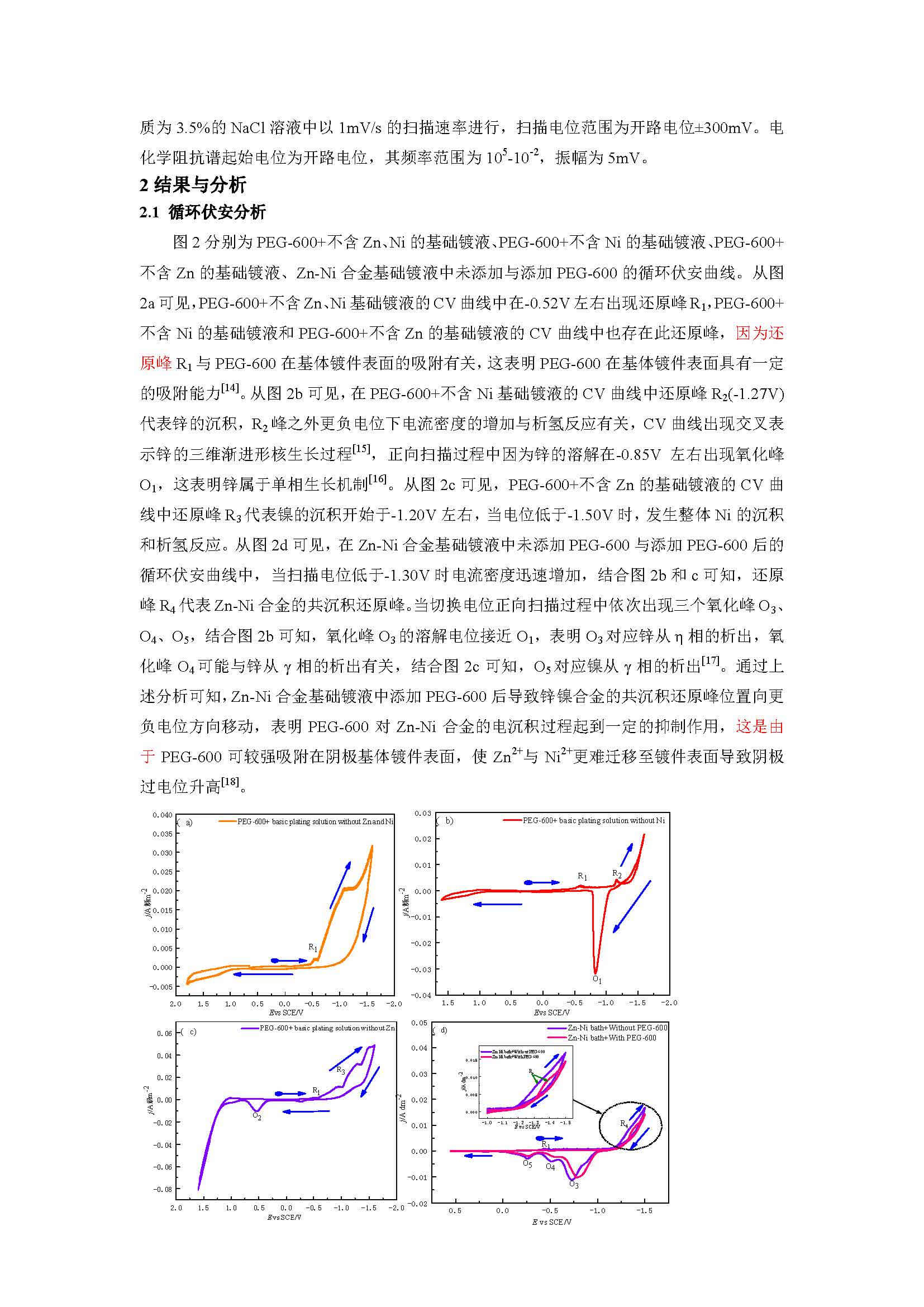 聚乙二醇-600对酸性Zn-Ni合金的电沉积行为及镀层耐蚀性影响的研究