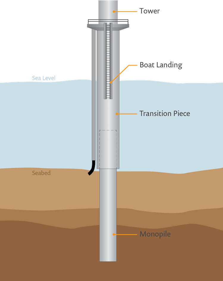 我们来看一个例子。海上阴极保护的一个常见任务是保护单桩,这些单桩是用于固定海底风力涡轮机等海上结构的钢结构底座。通常,单桩在结构上与过渡连接件连接,并总是位于水面以下,而过渡连接件会延伸到水面以上。