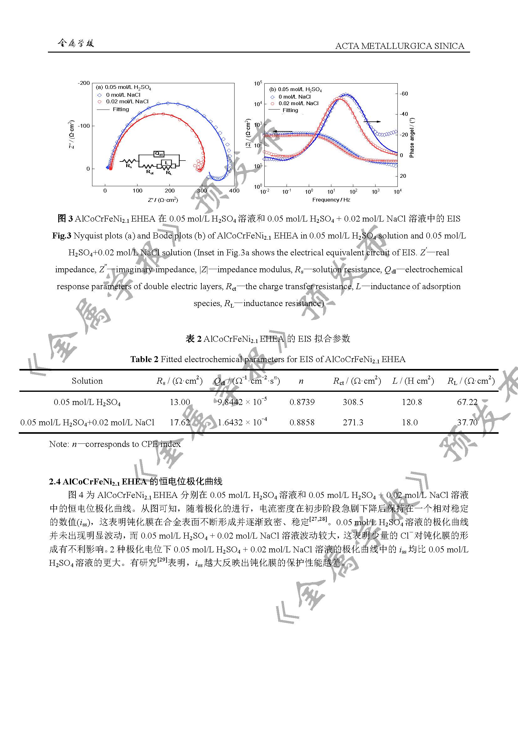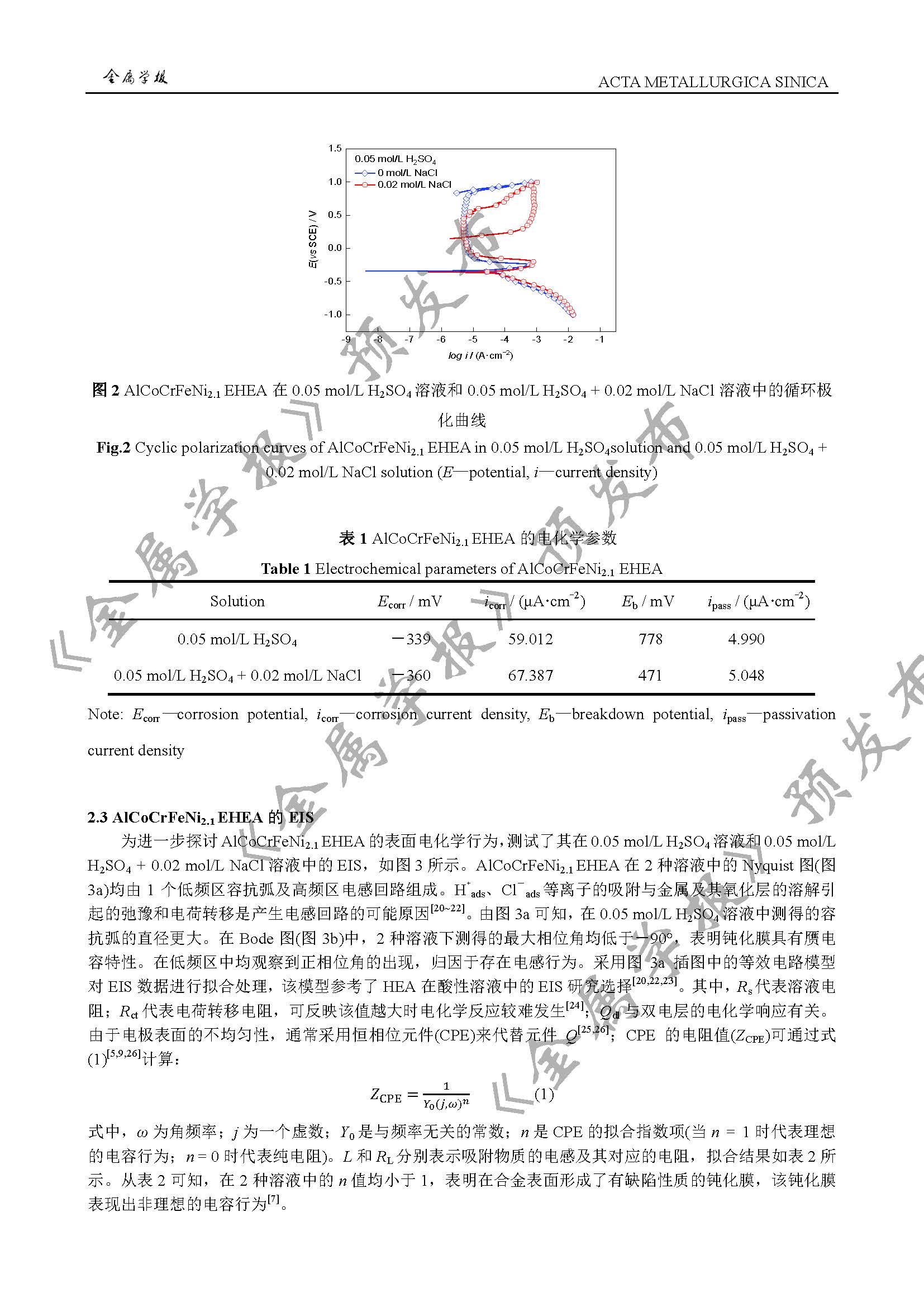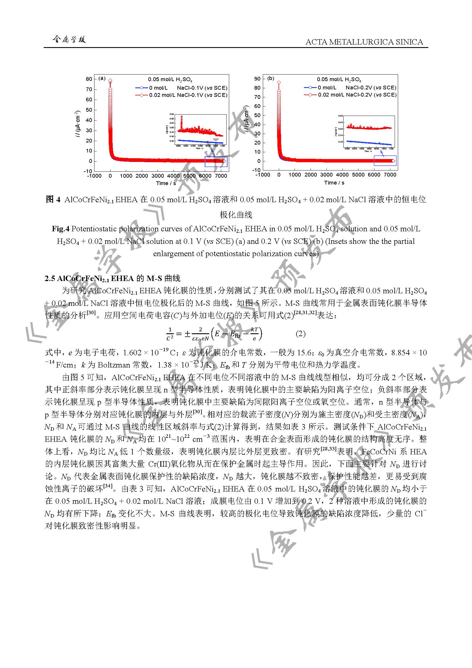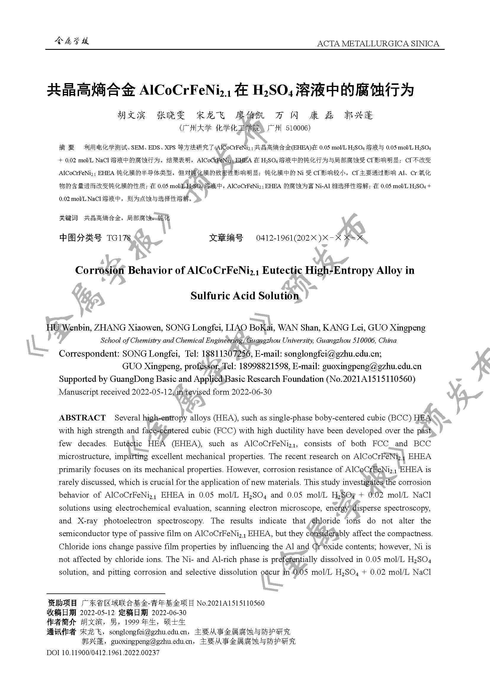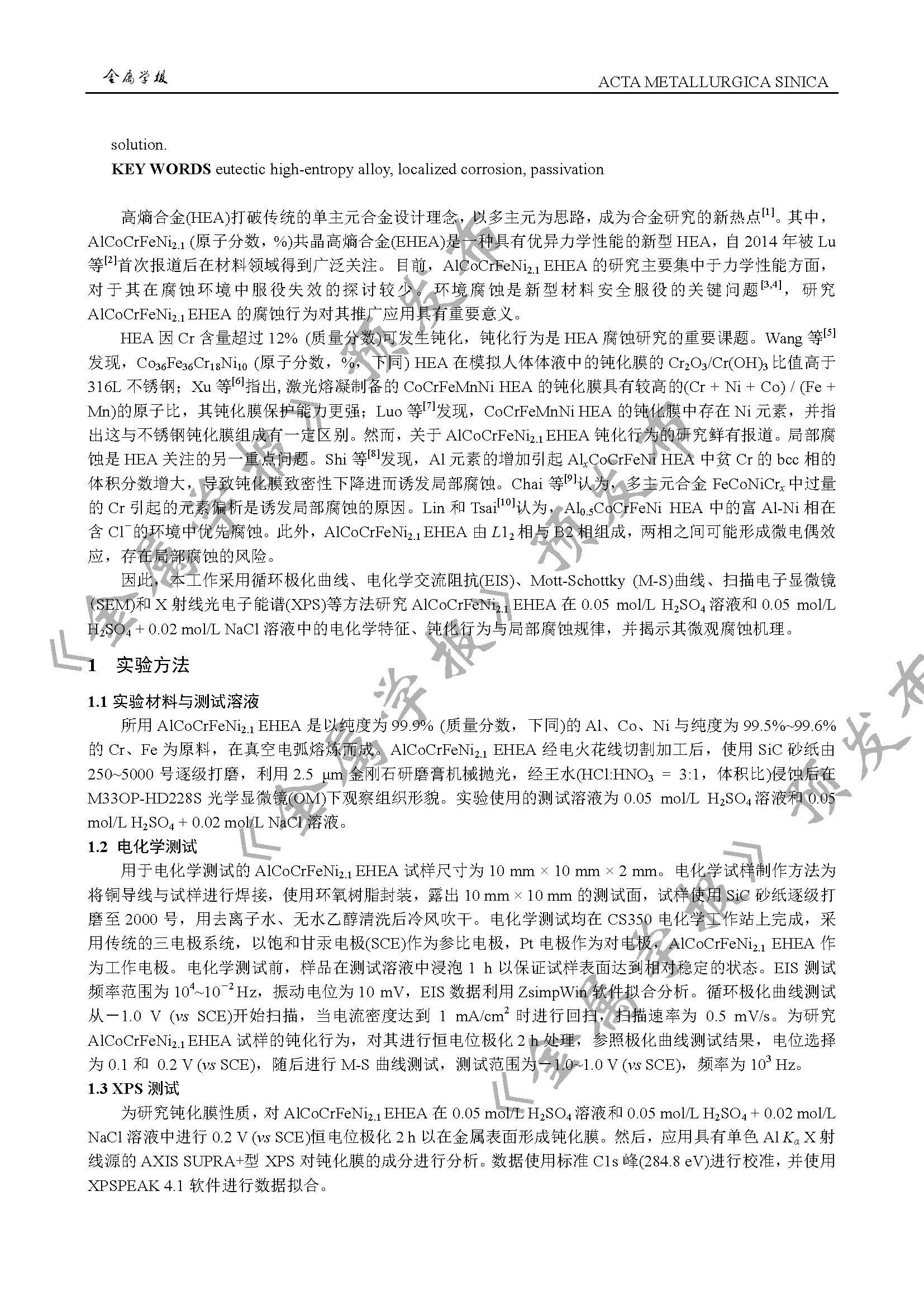 共晶高熵合金AlCoCrFeNi2.1在H2SO4溶液中的腐蚀行为