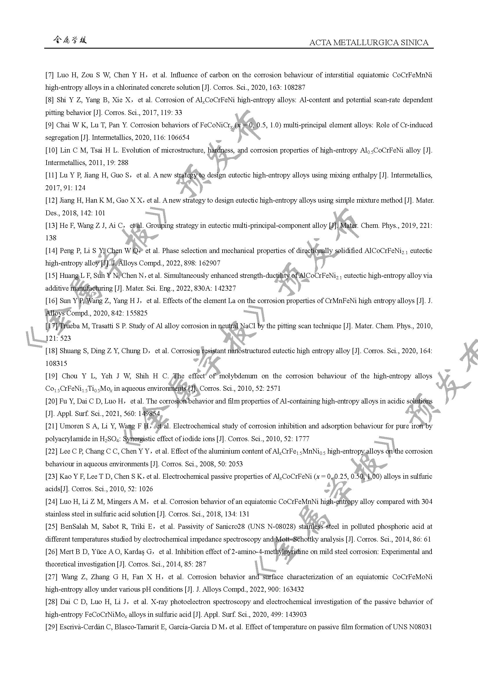 双一流大学《JMST》:具有优良耐蚀性和高强度的共晶高熵