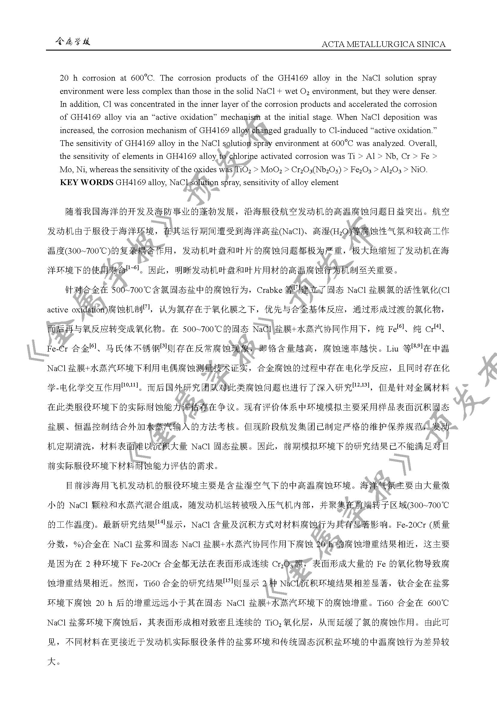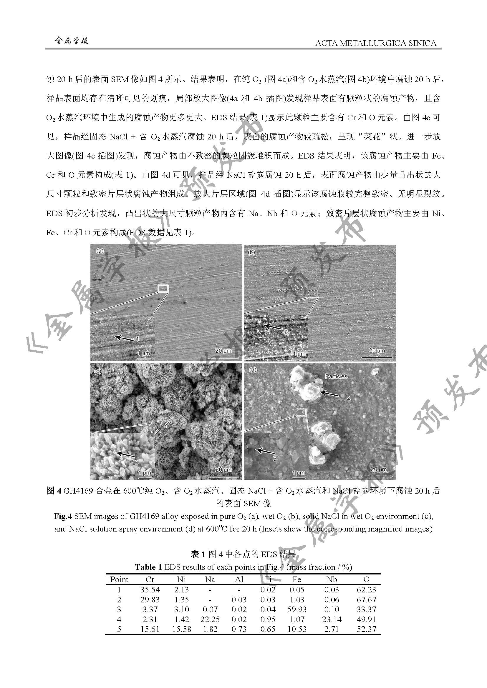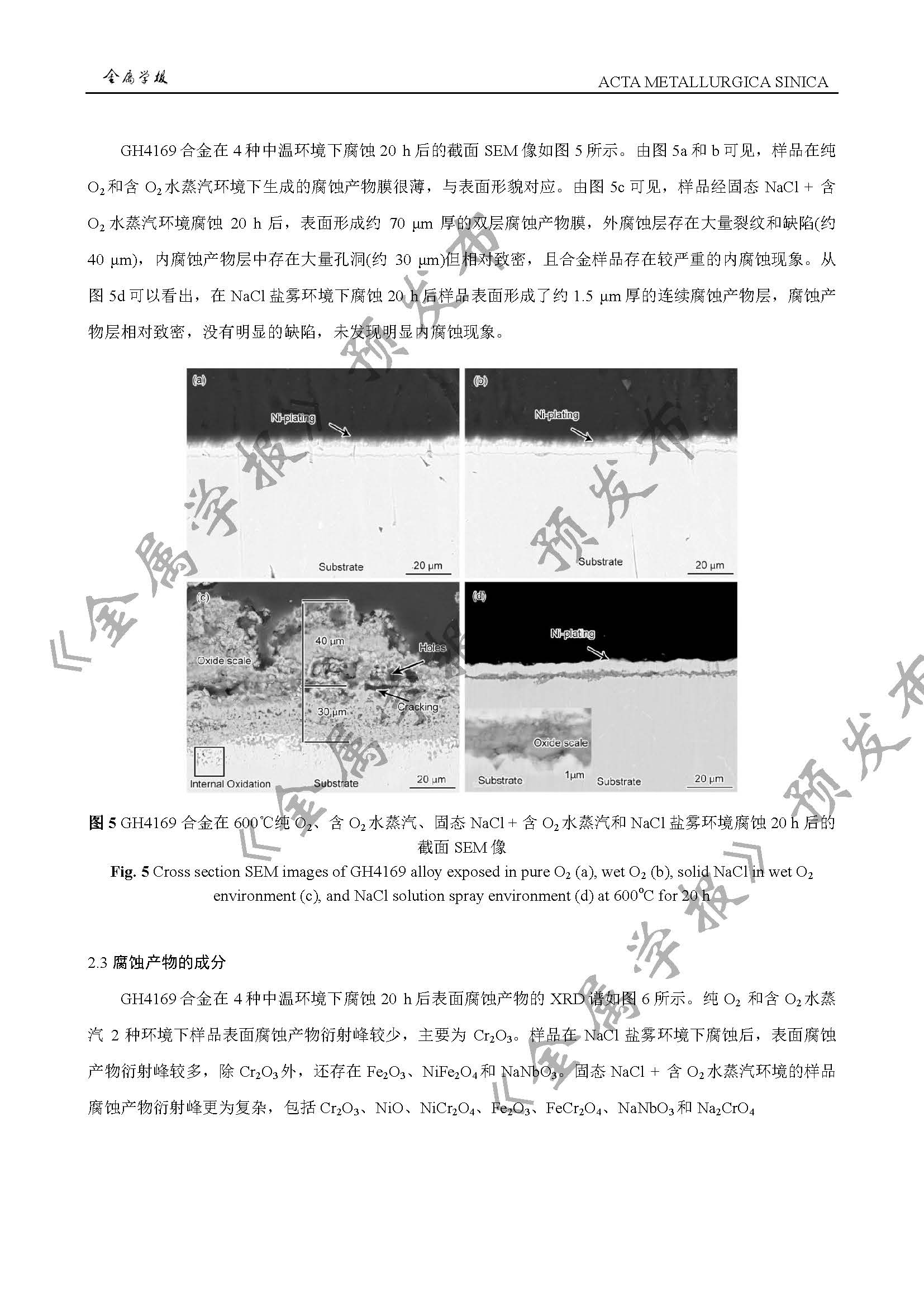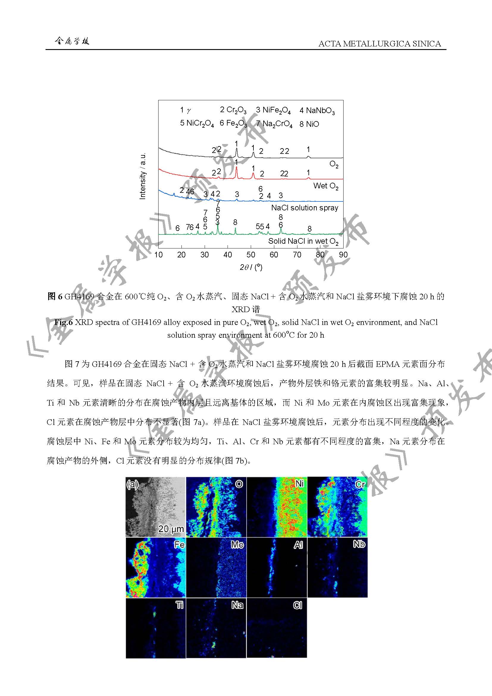 600℃ NaCl盐雾环境下GH4169合金的腐蚀行为