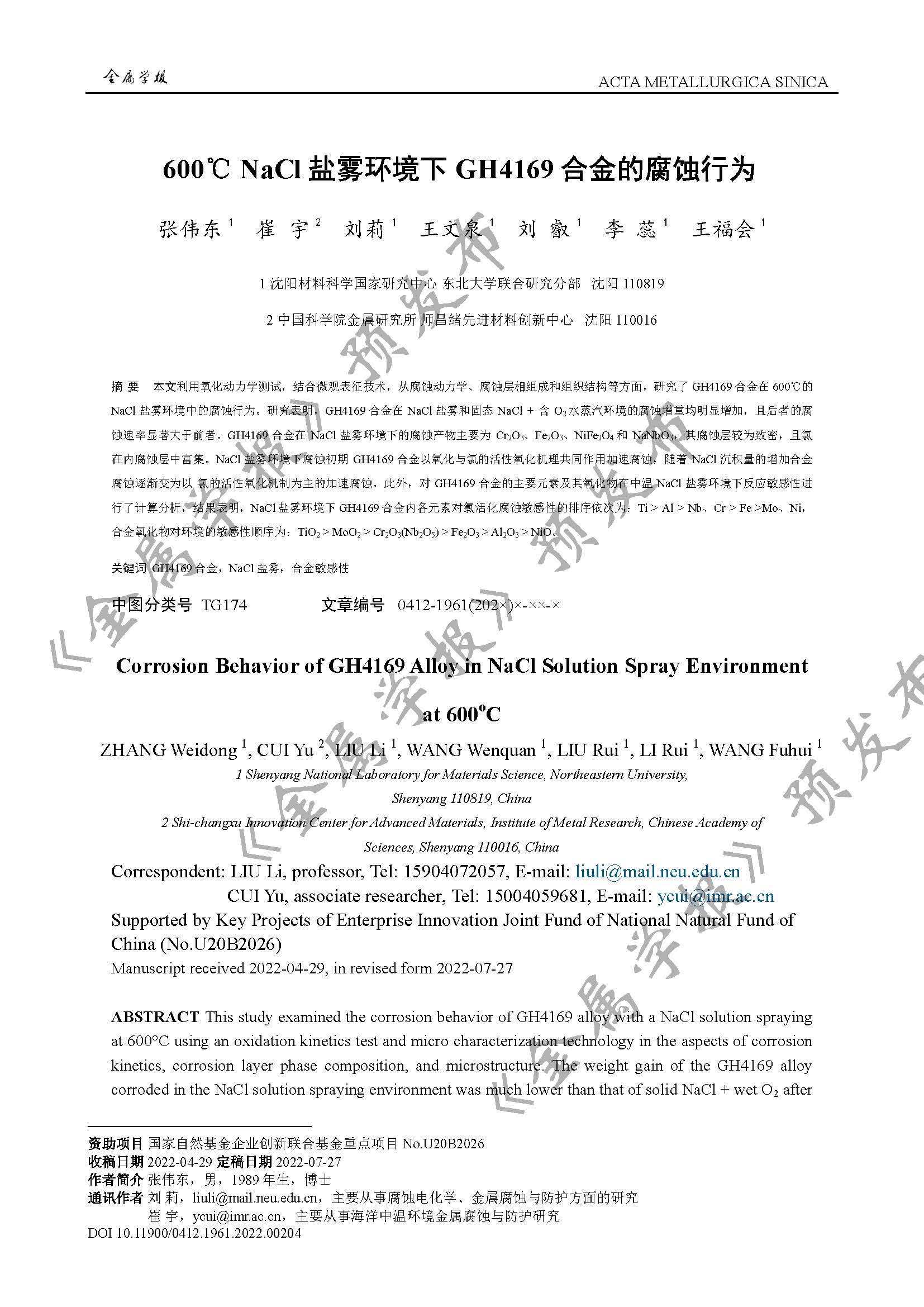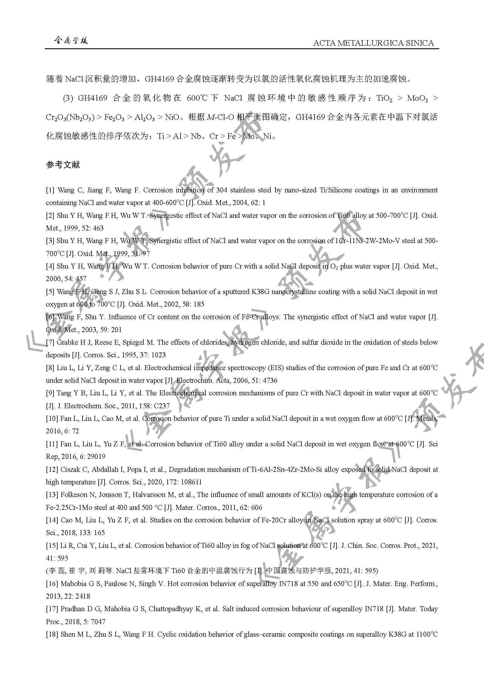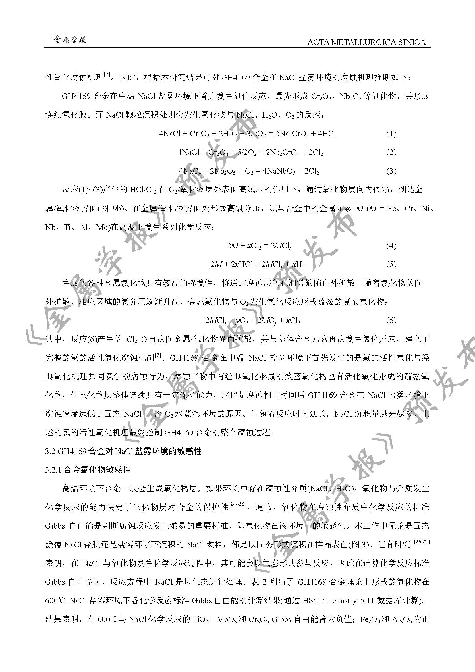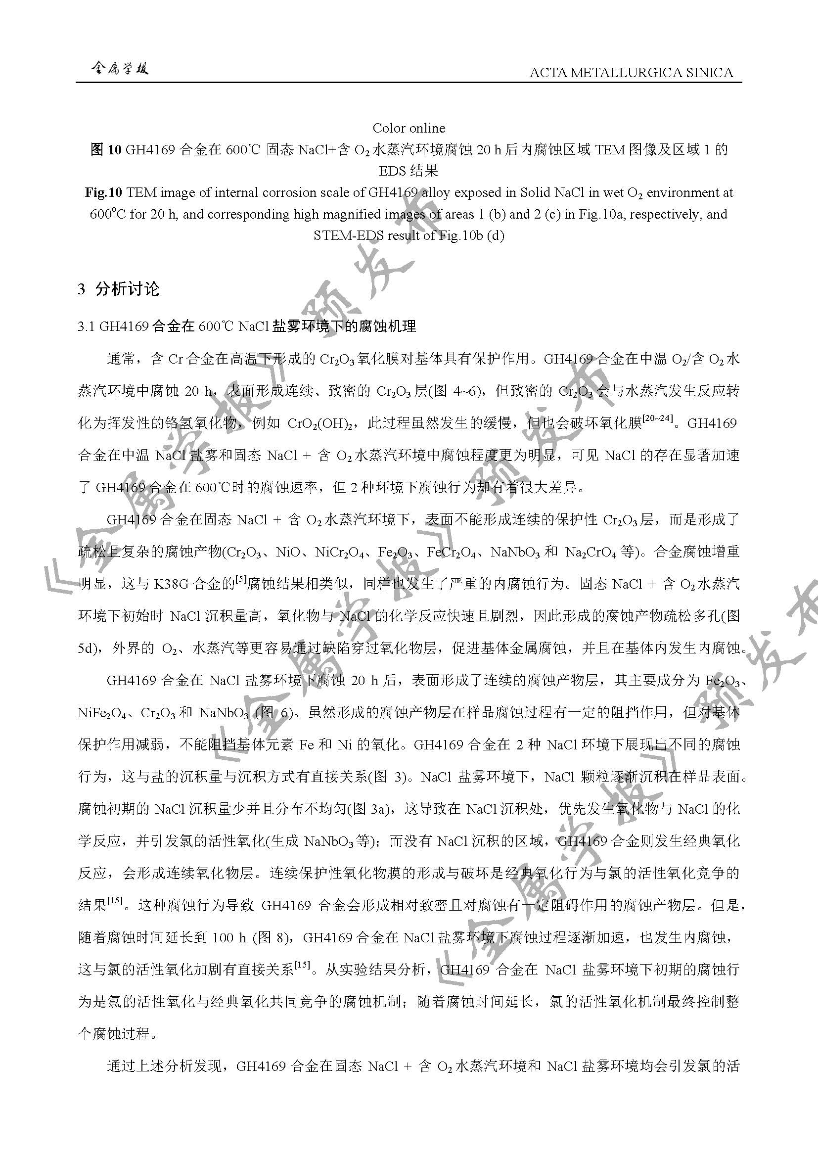 600℃ NaCl盐雾环境下GH4169合金的腐蚀行为