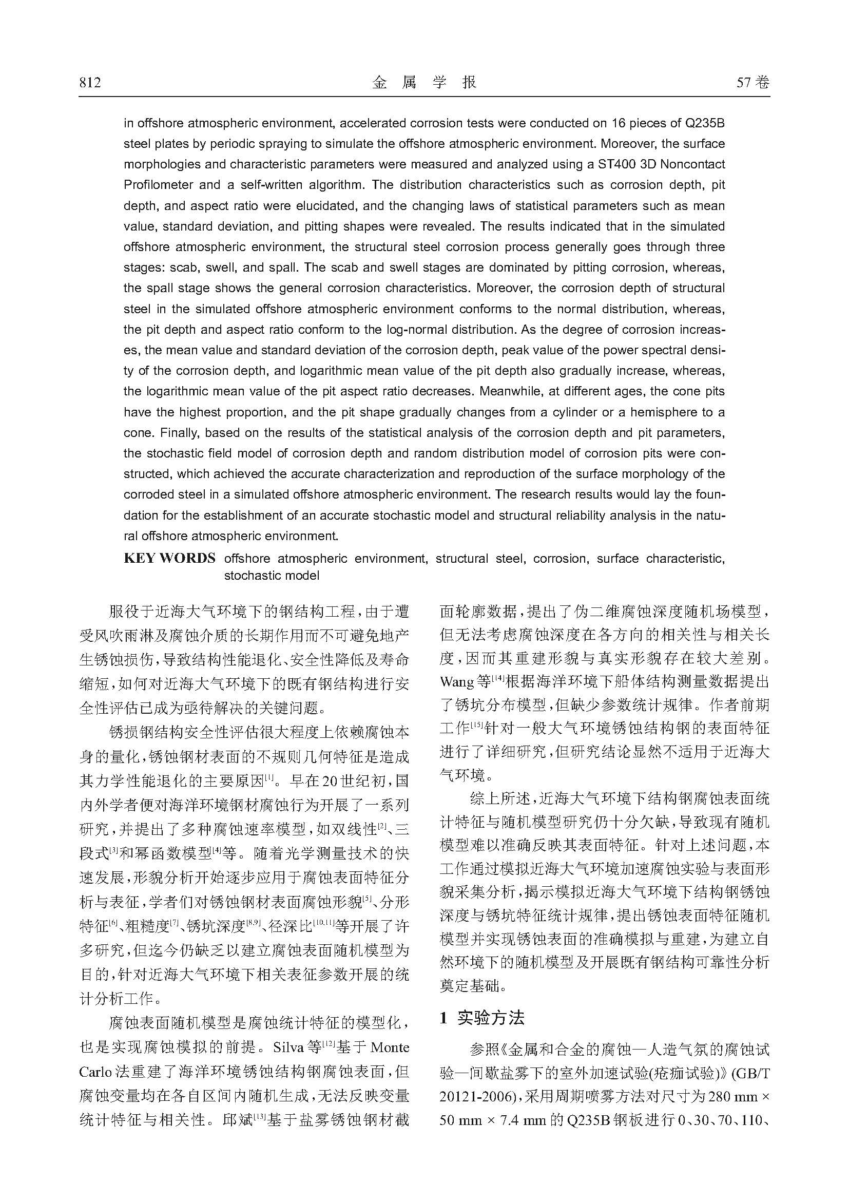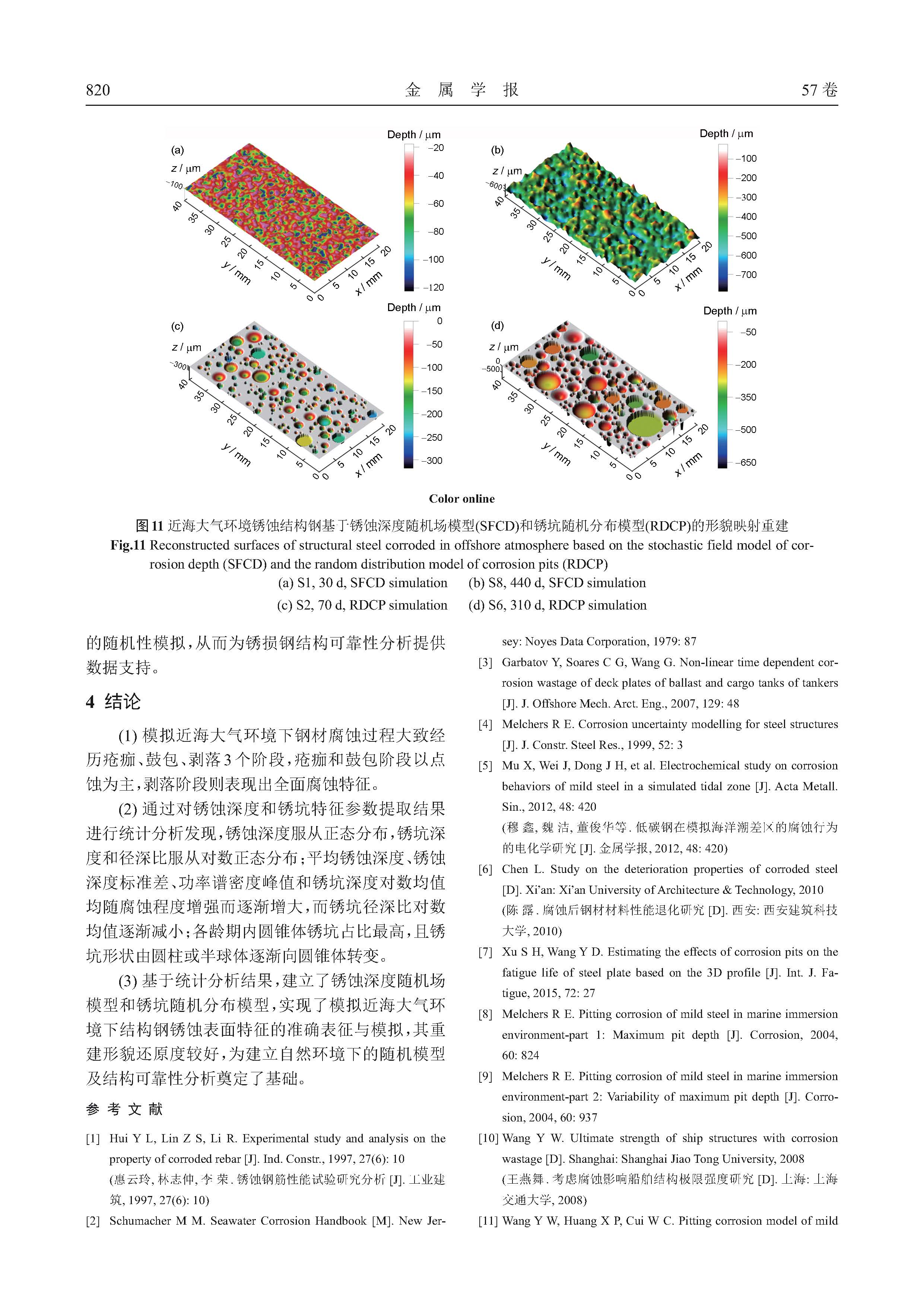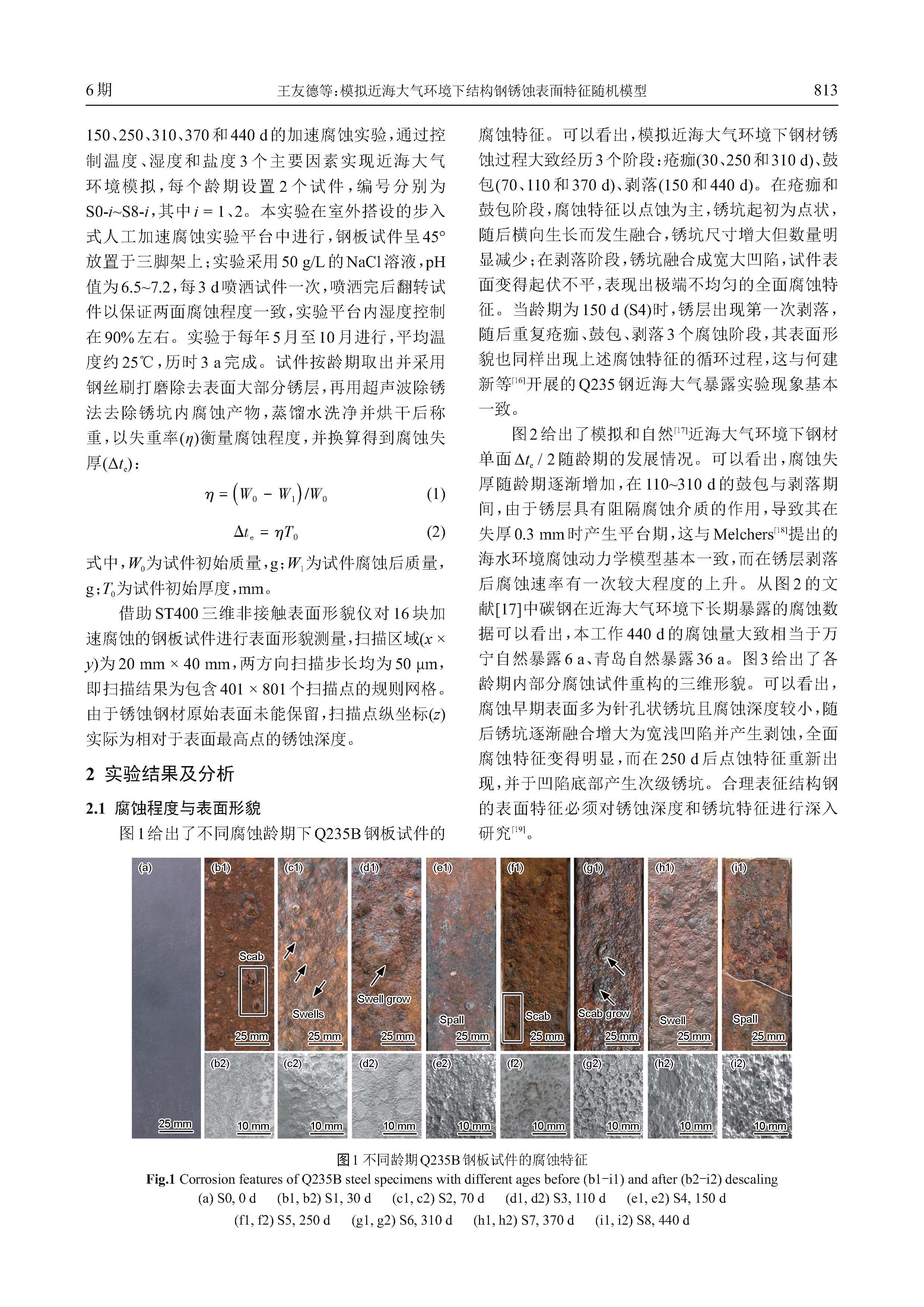 模拟近海大气环境下结构钢锈蚀表面特征随机模型
