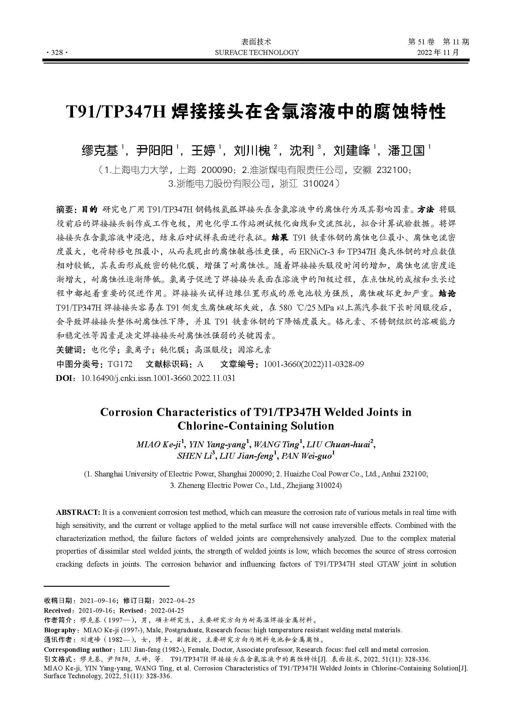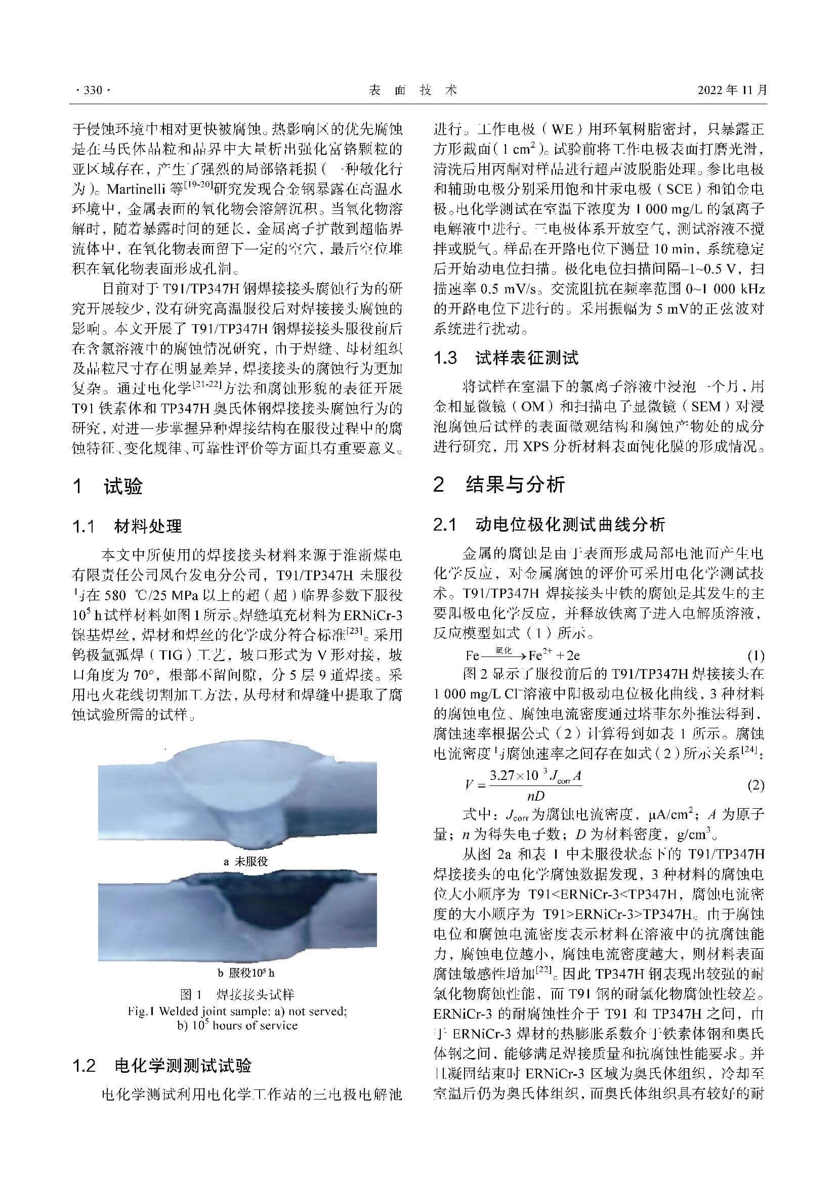 T91/TP347H焊接接头在含氯溶液中的腐蚀特性
