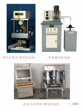 磨损试验仪器:滚子式磨损试验机、环块磨损试验机、旋转圆盘一销式磨损试验机、往复式摩擦-磨损试验机、四球式摩擦-磨损试验机、接触疲劳试验机、湿磨科磨试验机。
