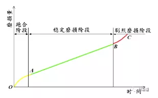稳定磨损阶段:斜率就是磨损速率,唯一稳定值;大多数机件在稳定磨损阶段(AB段)服役;