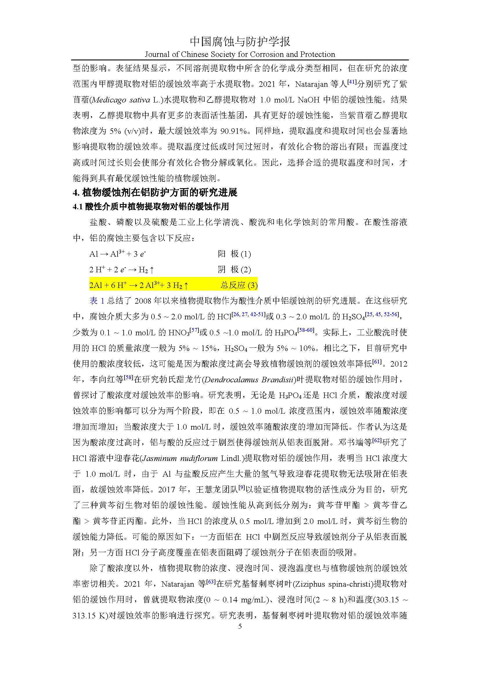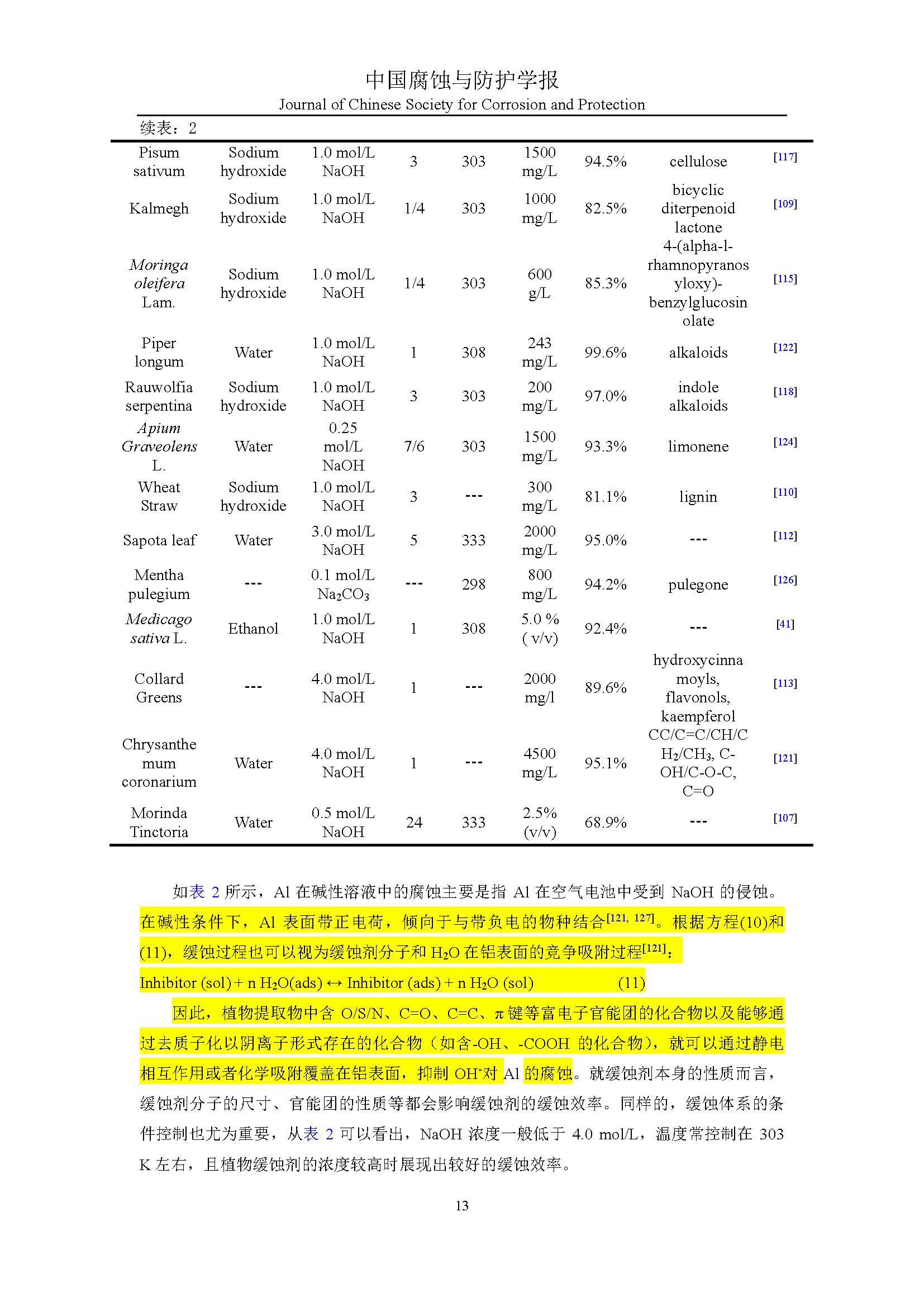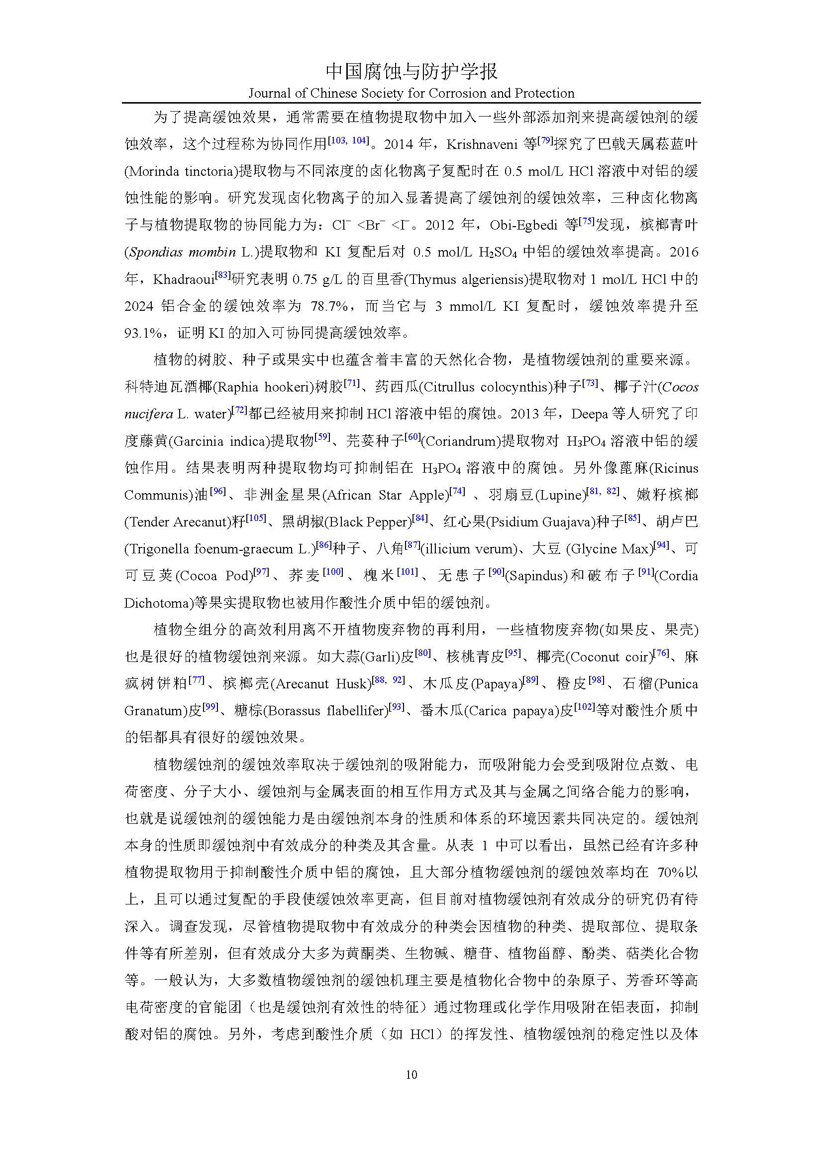 植物缓蚀剂对铝的研究进展与展望