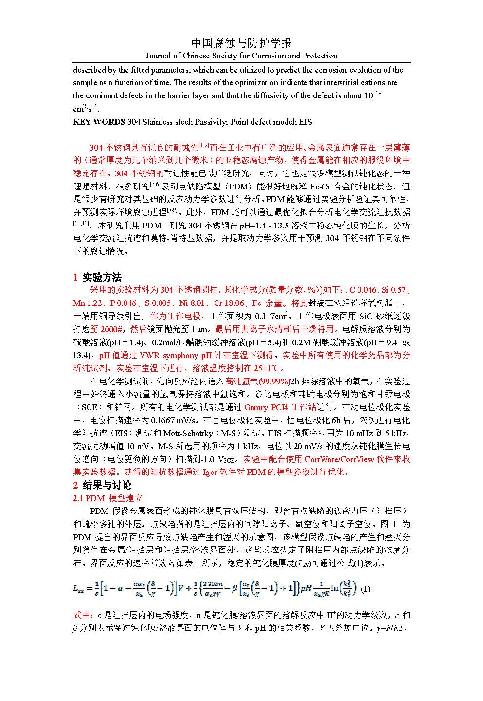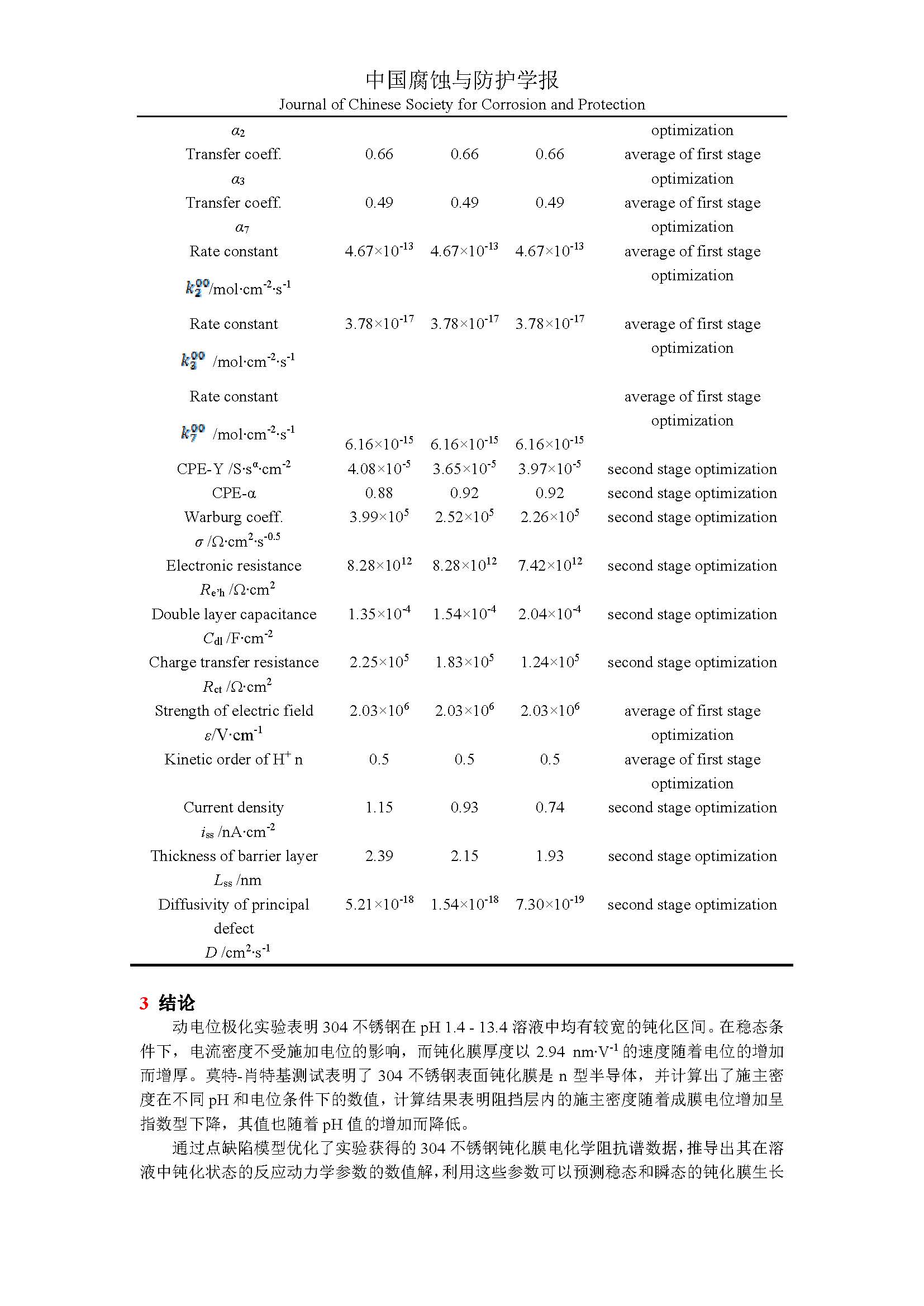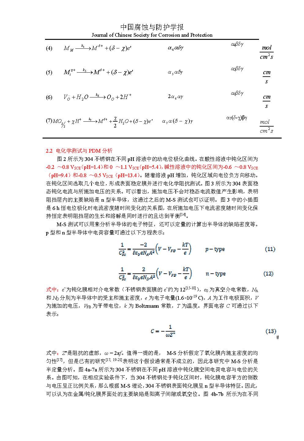 基于 PDM 的 304 不锈钢钝化膜生长动力学研究