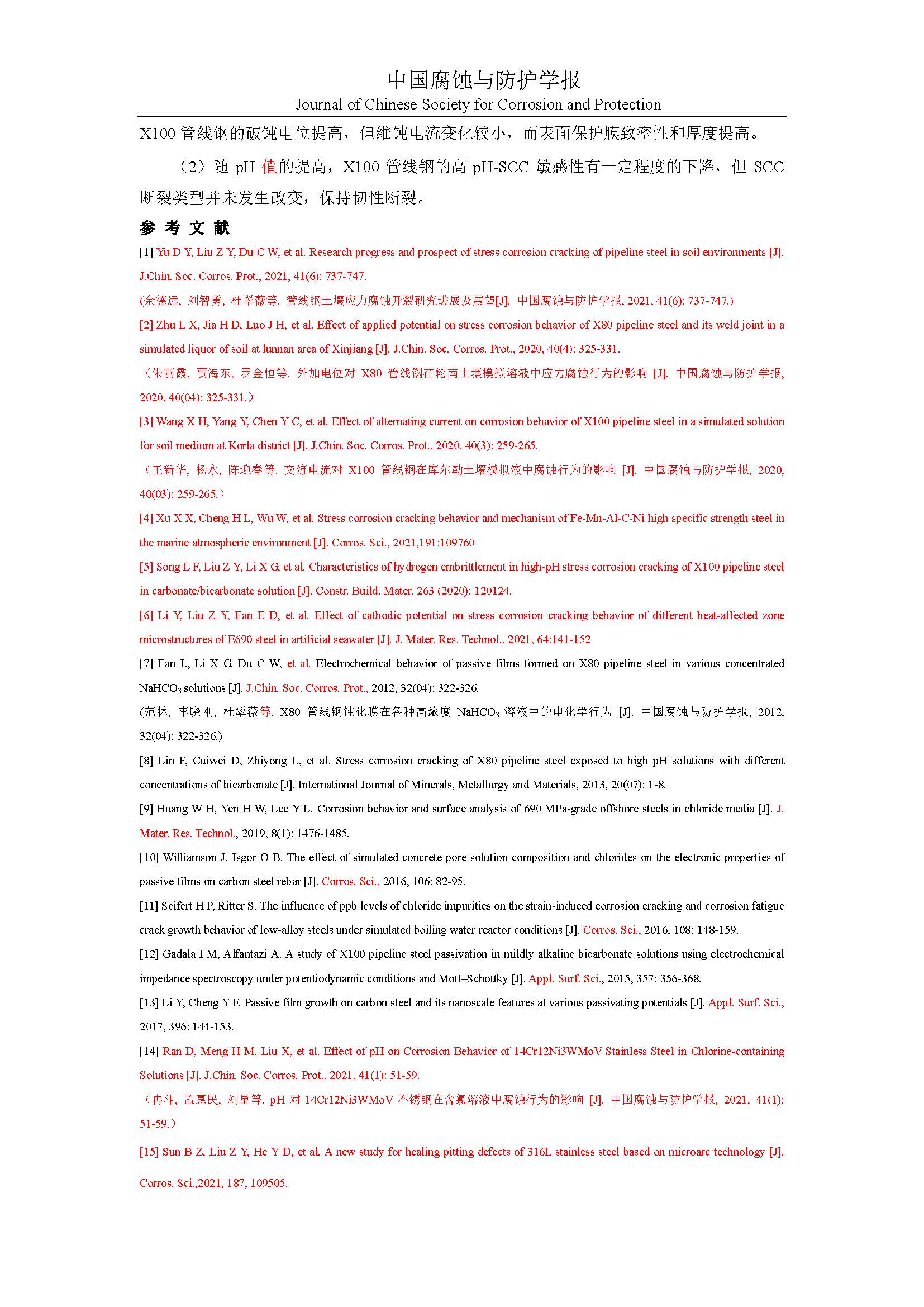 pH值对X100管线钢在CO32-/HCO3-溶液中的电化学与应力腐蚀行为的影响